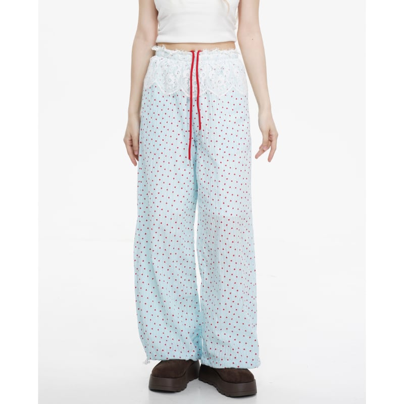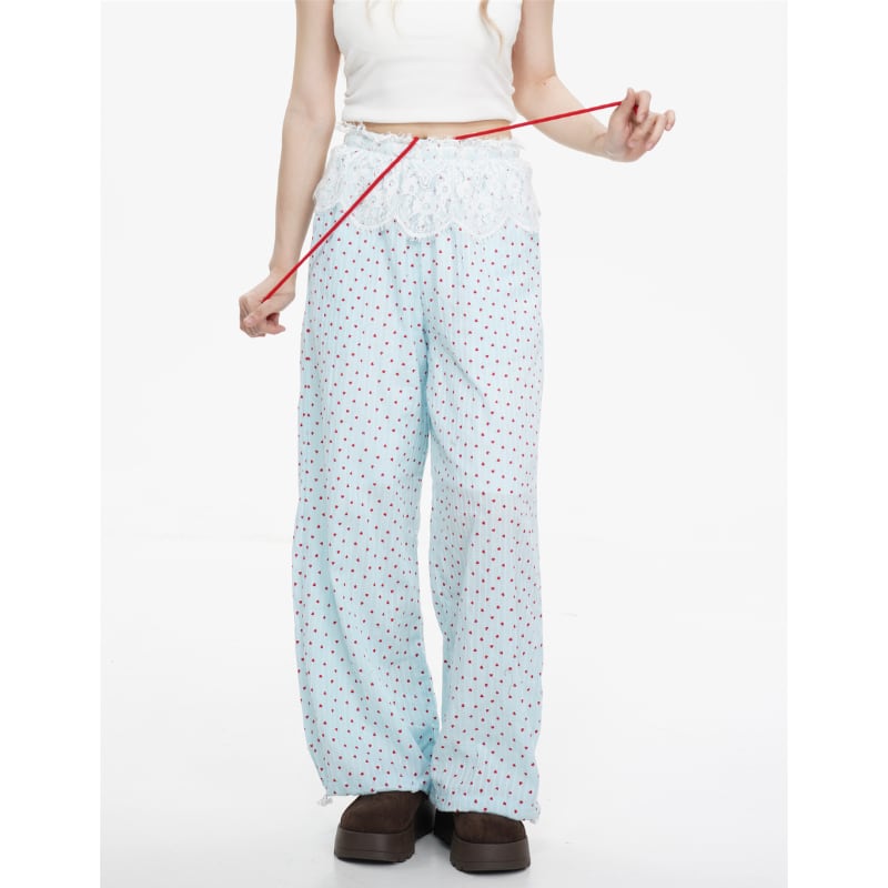 lace stitch heart print casual pants【2color】 e1381