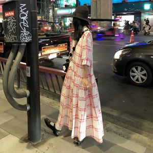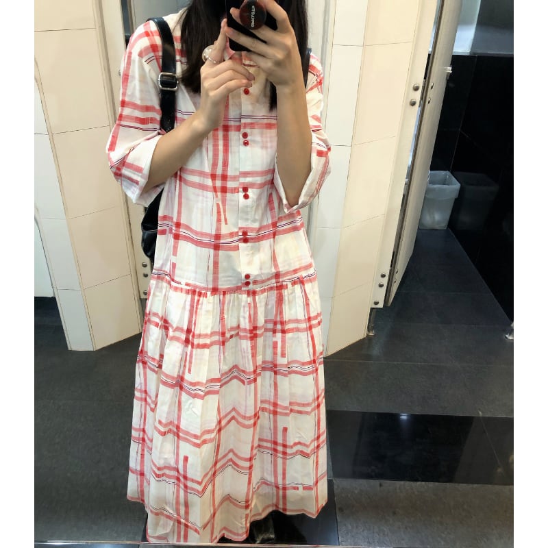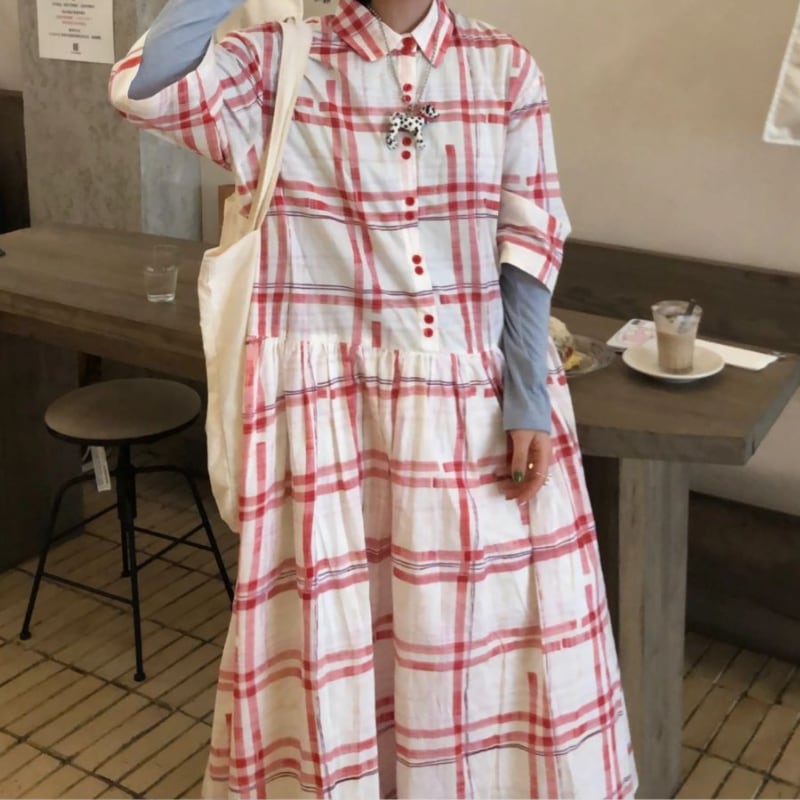 retro check middle sleeve shirt dress e1474