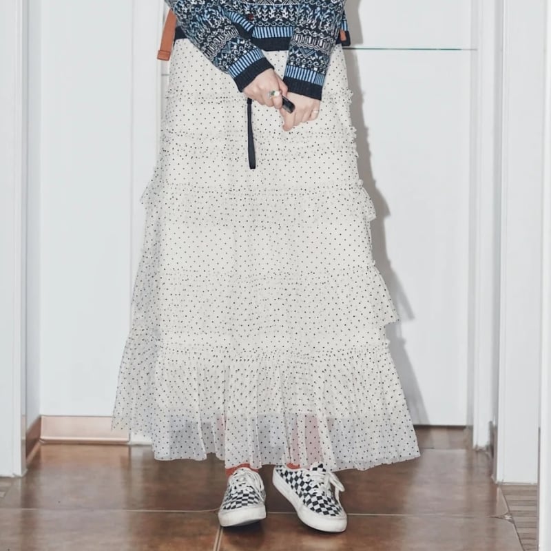dot mesh frill chiffon cake skirt e1516