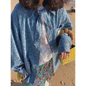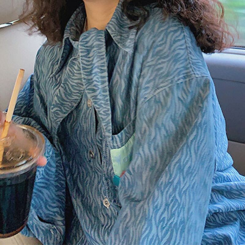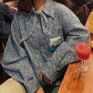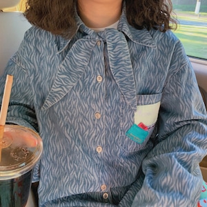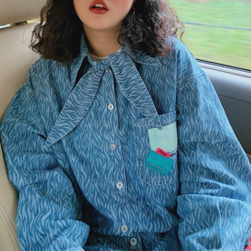 scarf tie zebra print design denim shirt e1626