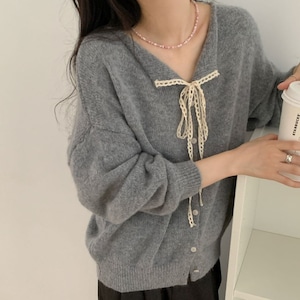 sweet lace ribbon color knit cardigan【8color】 e1689