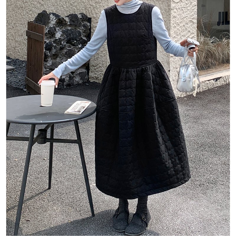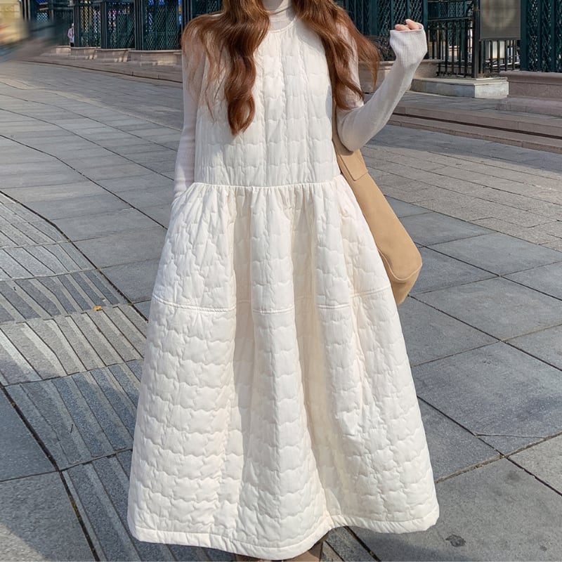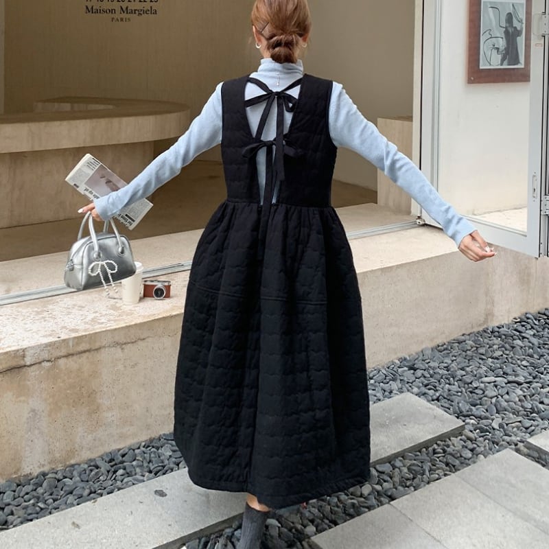 back twins ribbon quilted flare dress【2color】 e1695