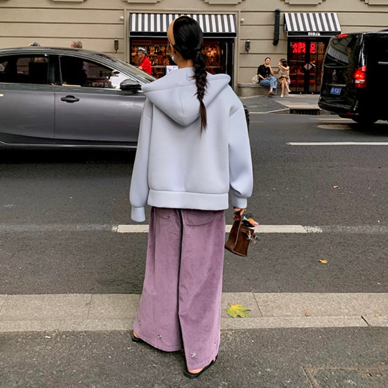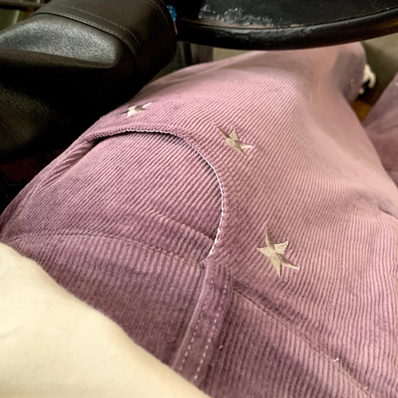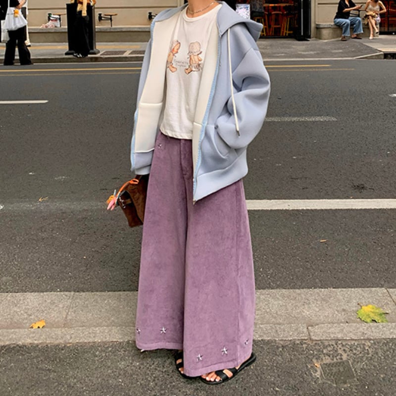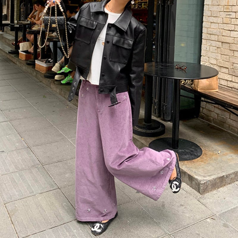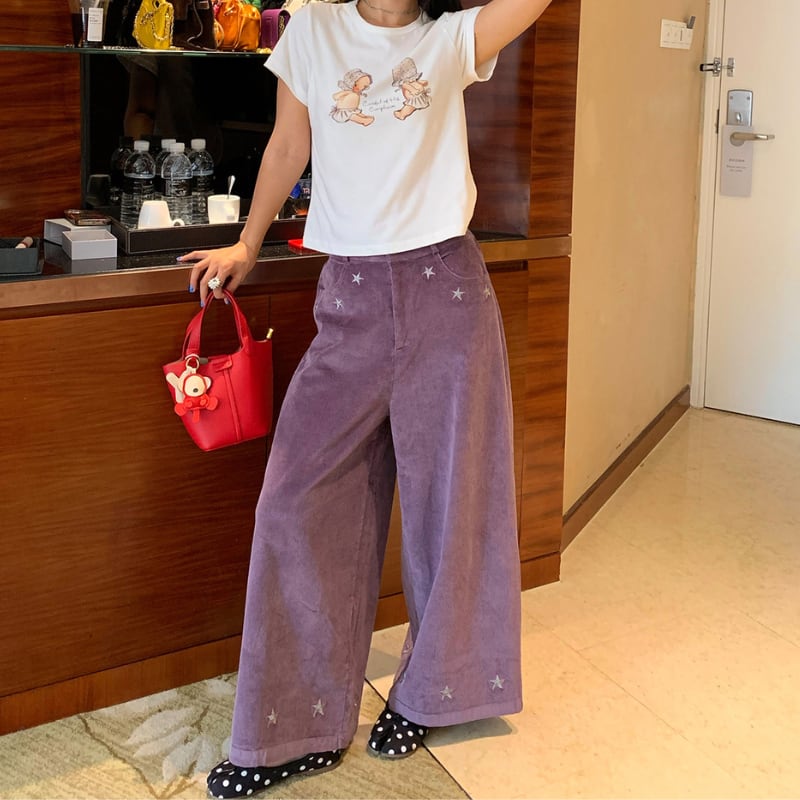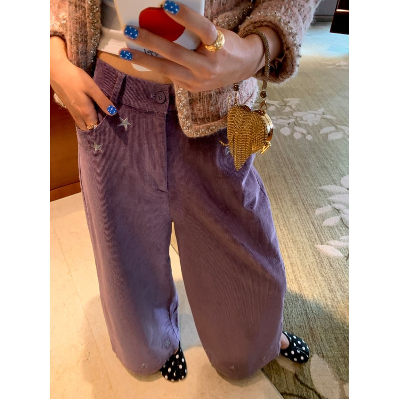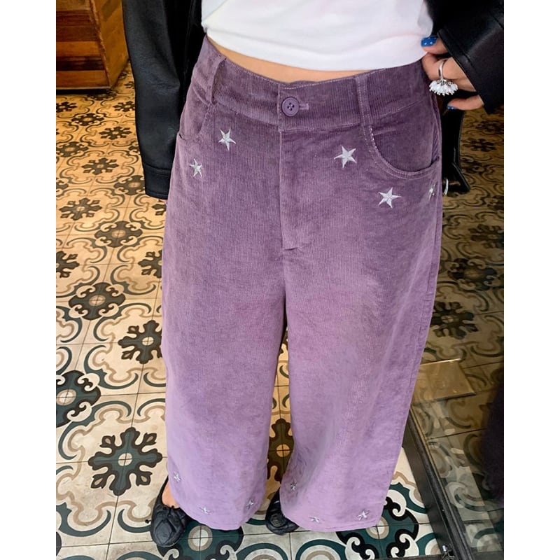 star embroidery design corduroy wide pants e1698