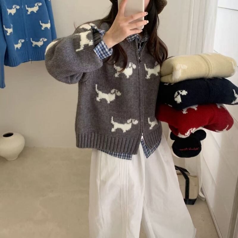 double zipper puppy knit cardigan【5color】 e1700