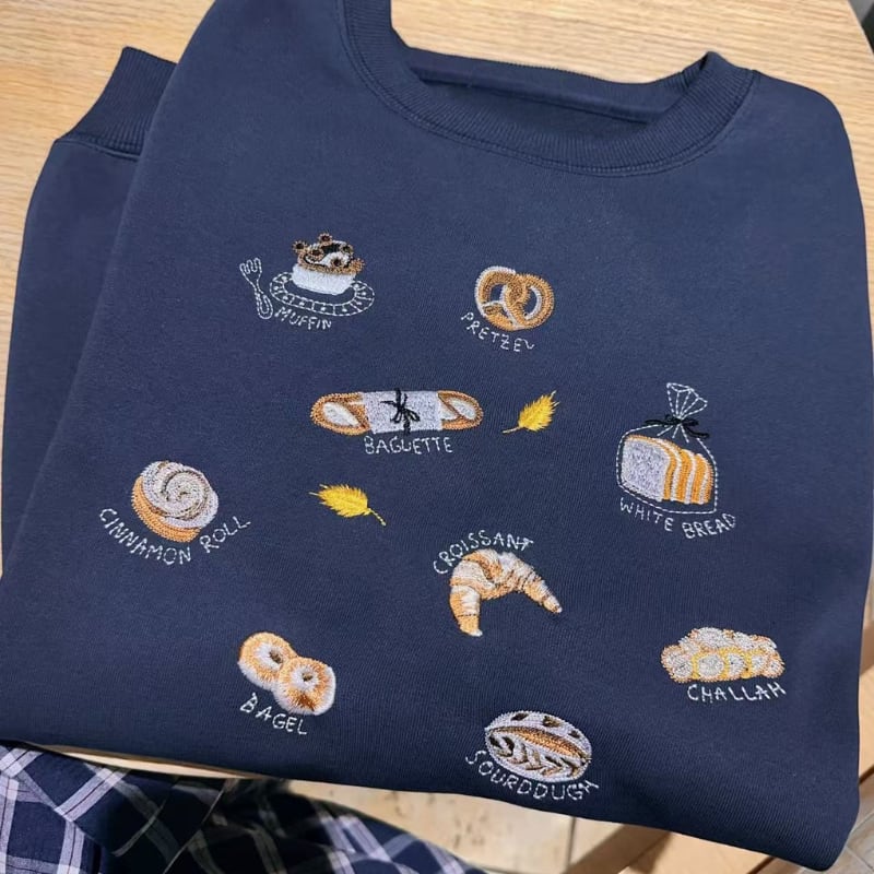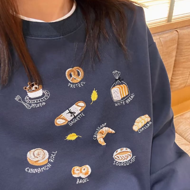 merry bread embroidery sweat pullover e1725