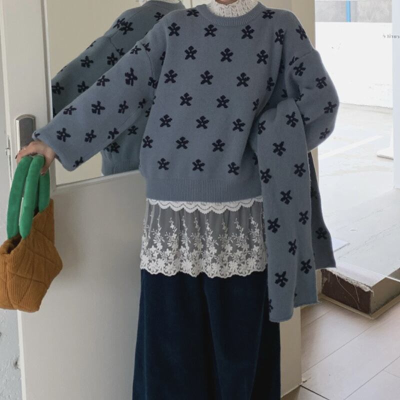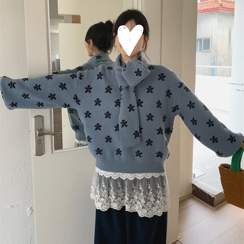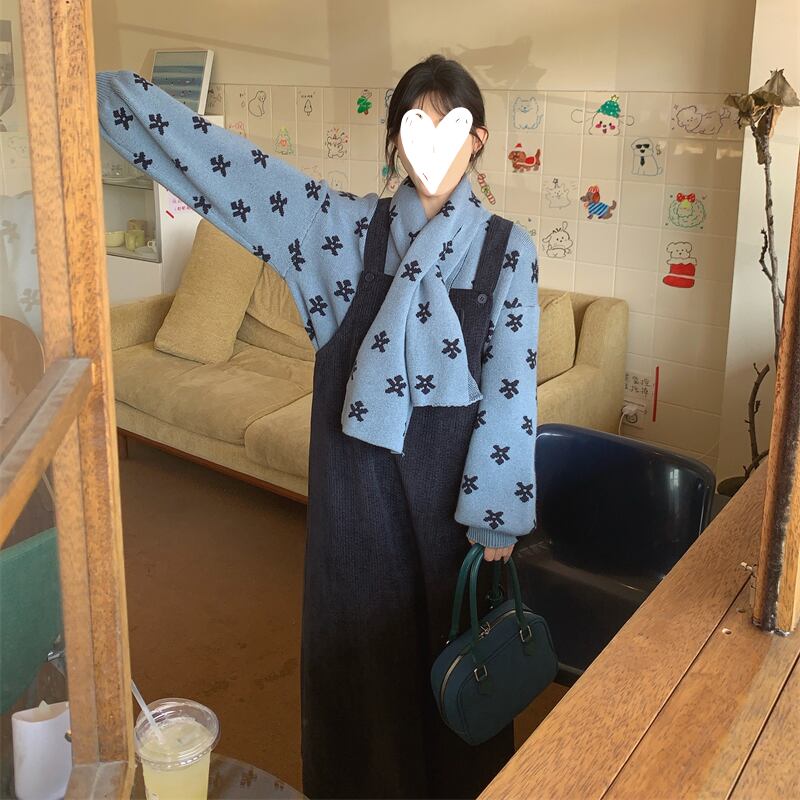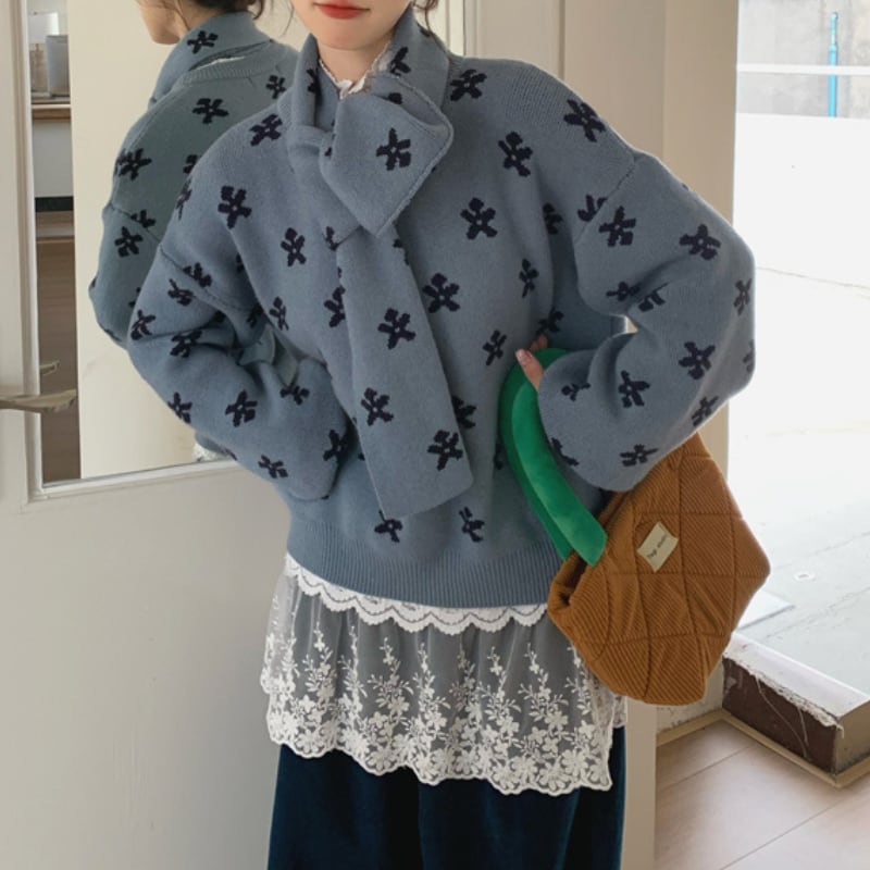 muffler set flower jacquard knit e1768