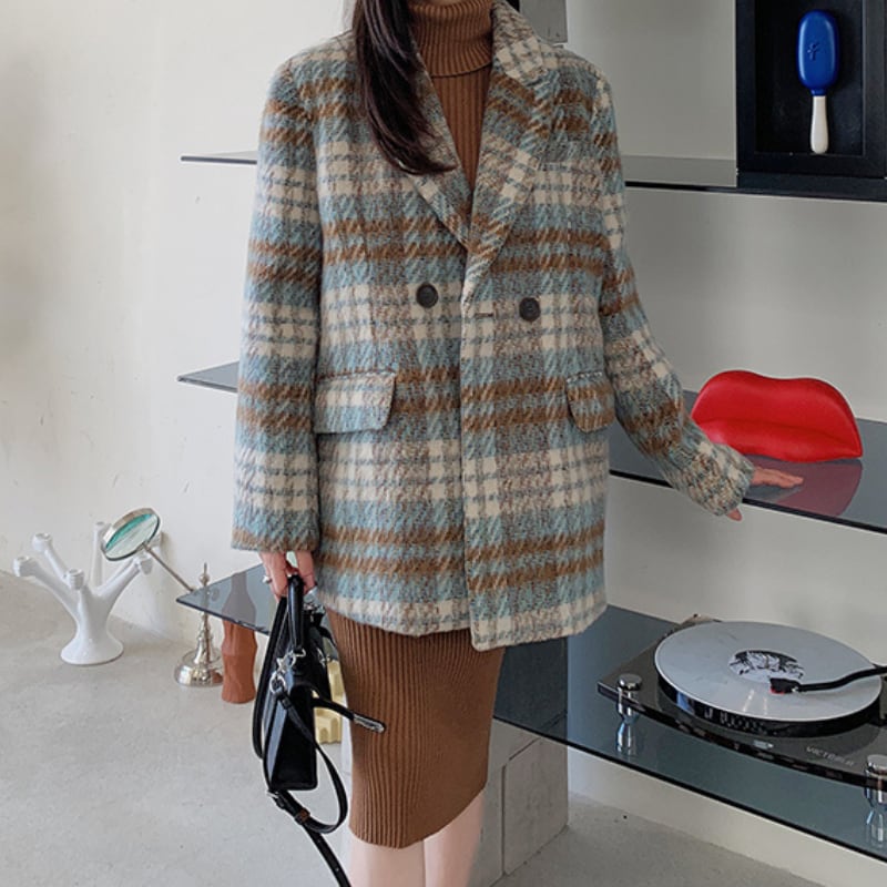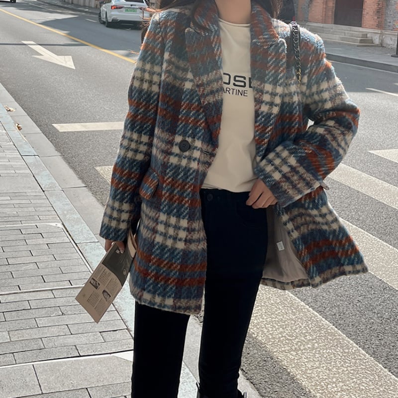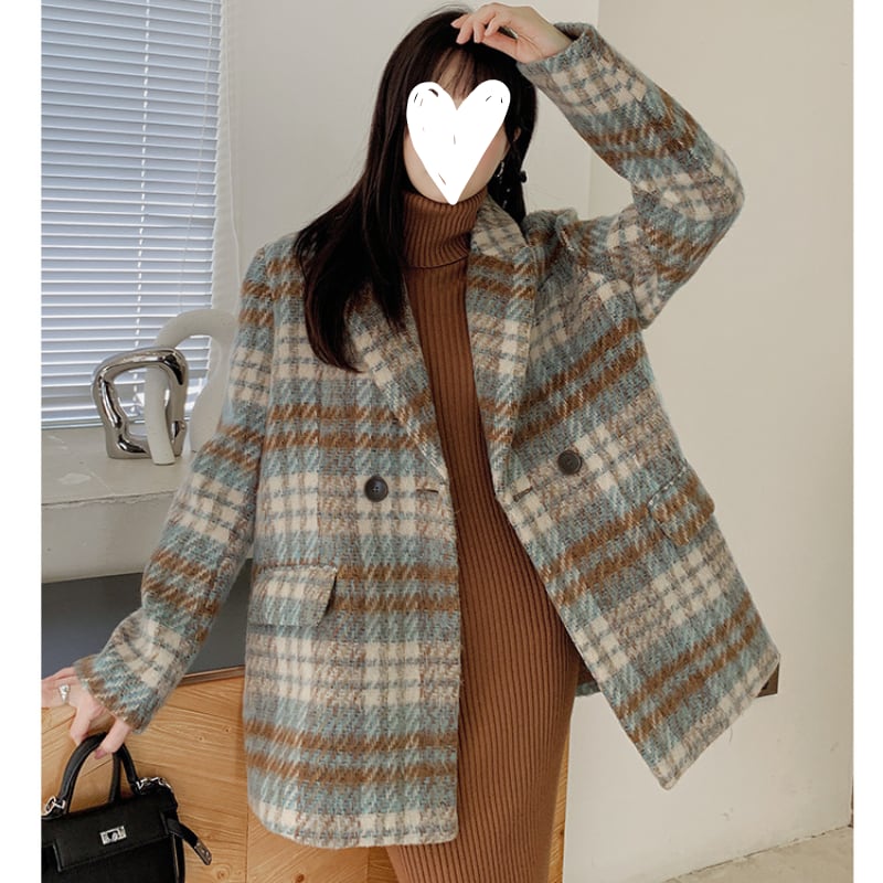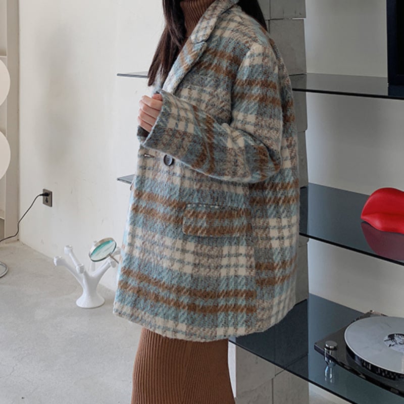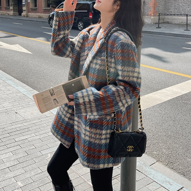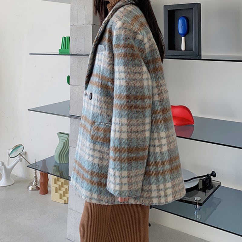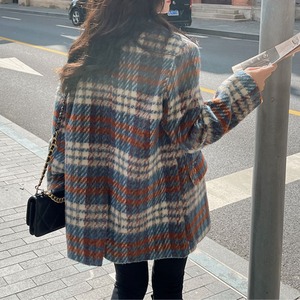 classic wool like check short coat【2color】 e1798