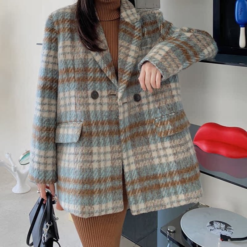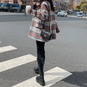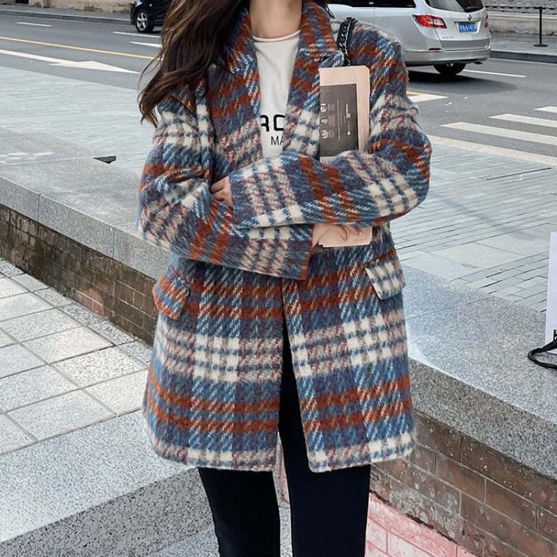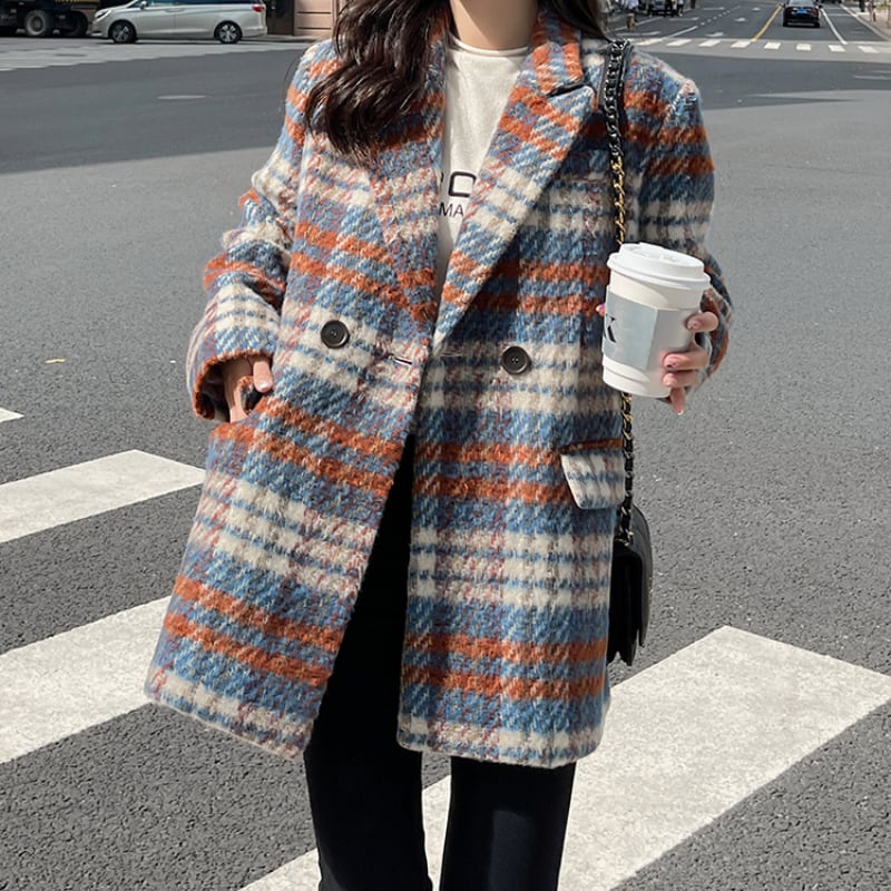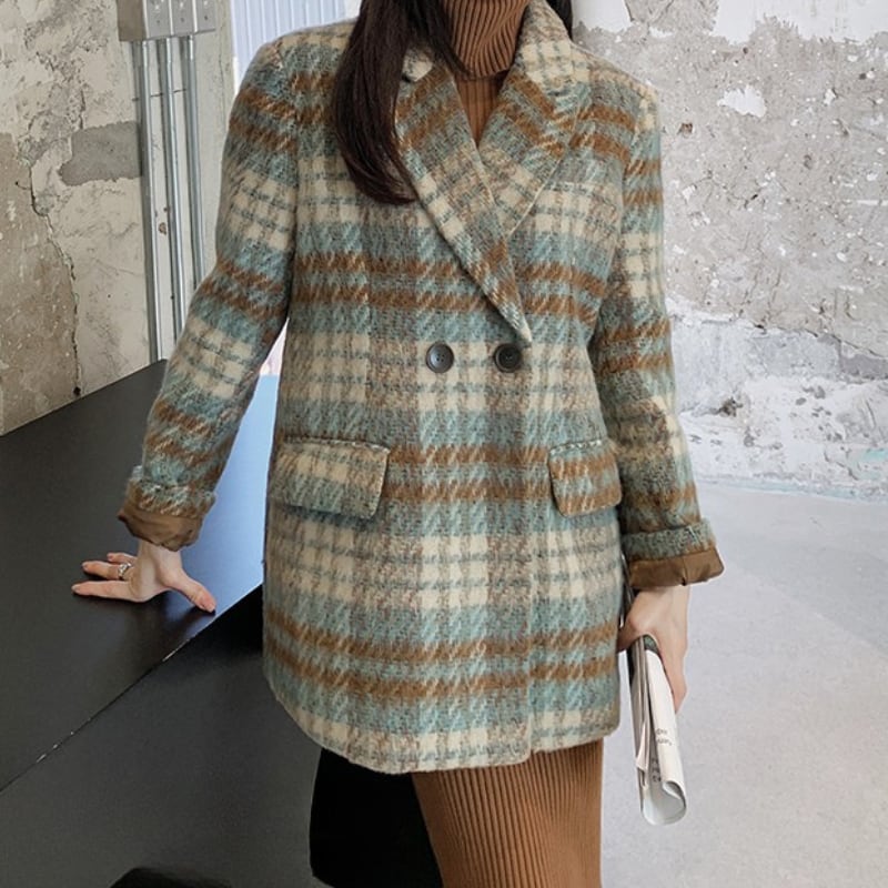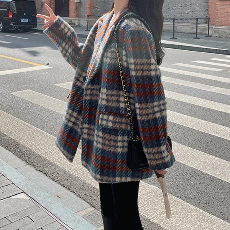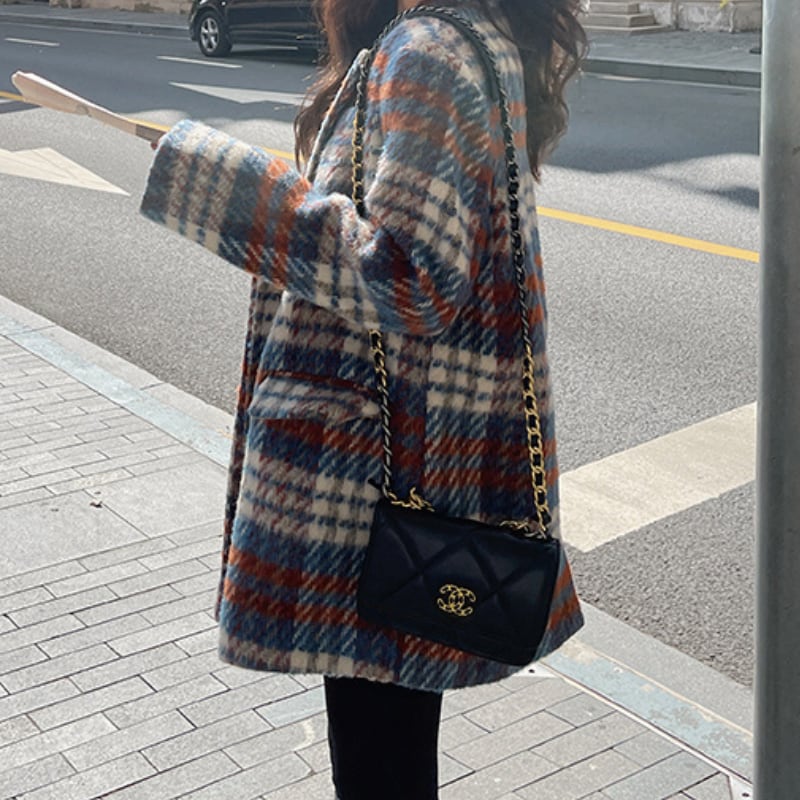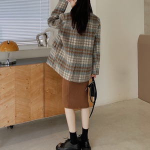 classic wool like check short coat【2color】 e1798
