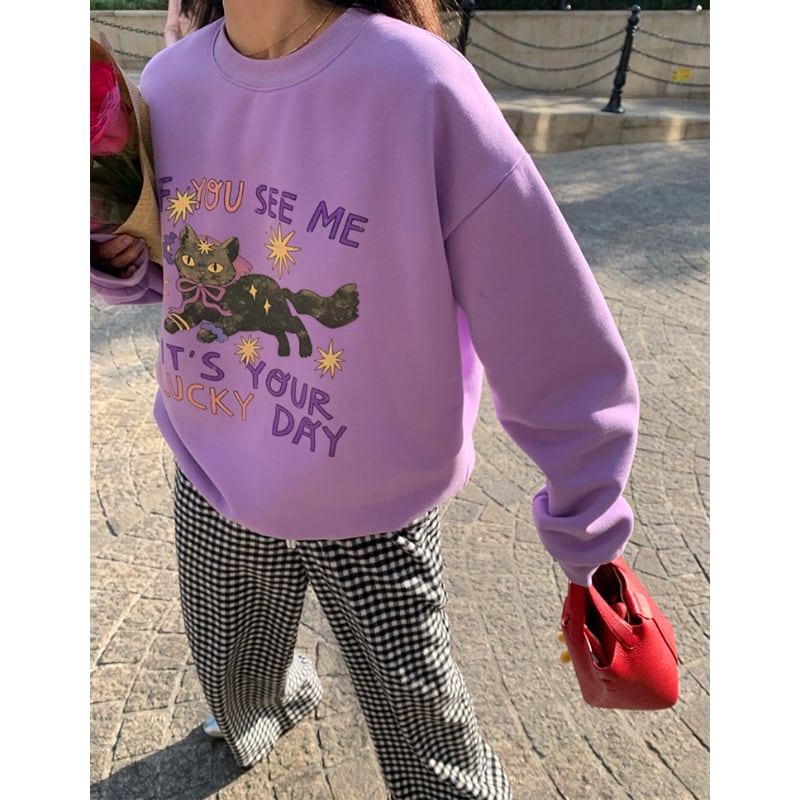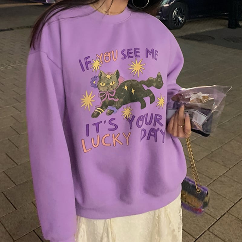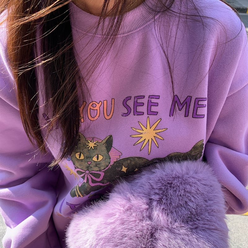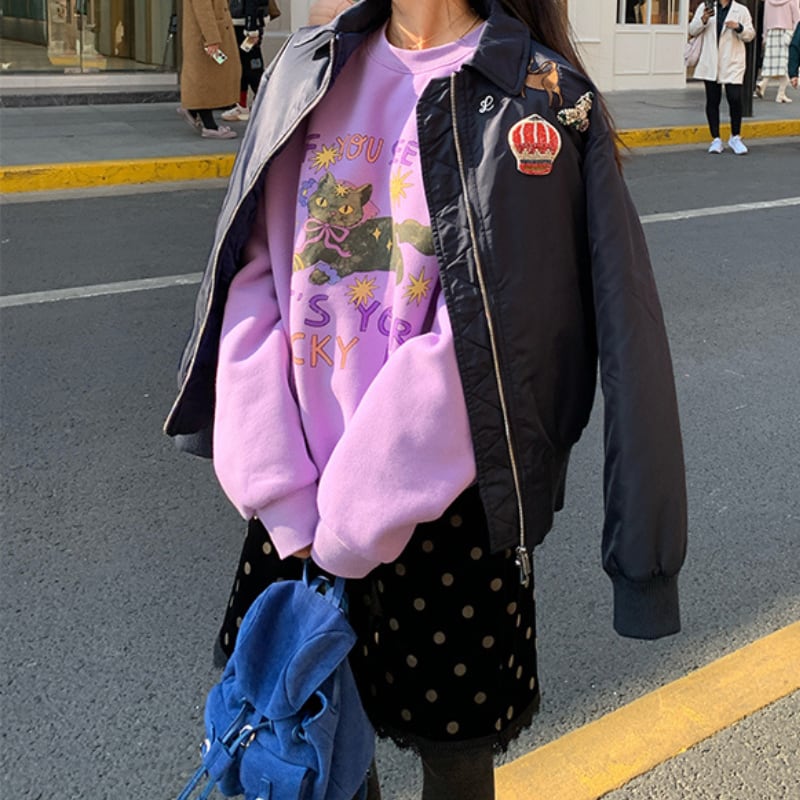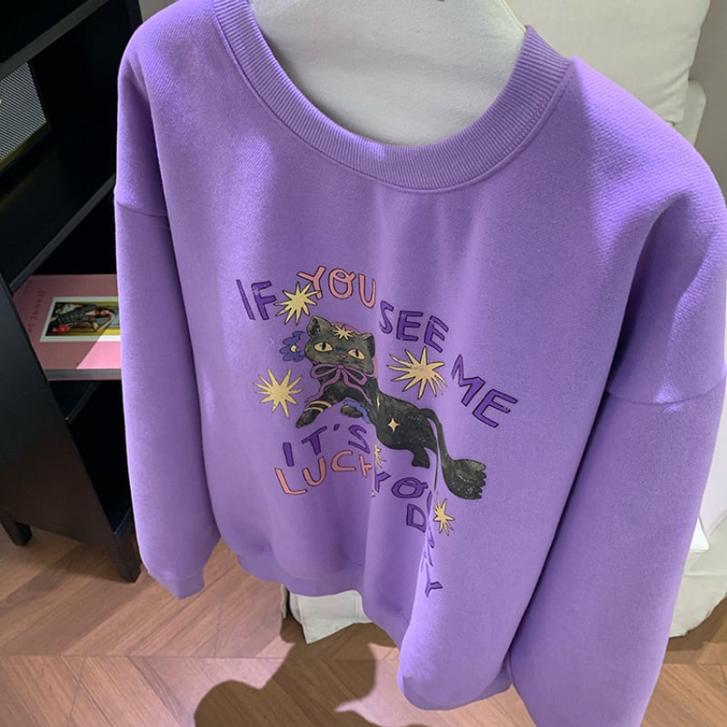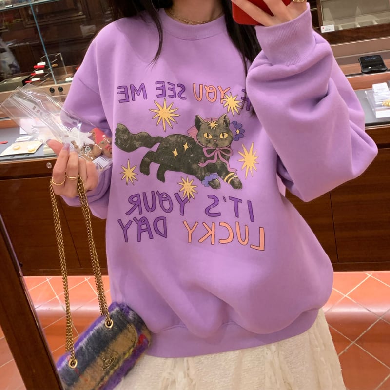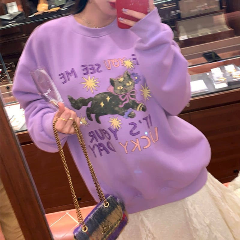 witch wizard black cat fleece sweat pullover e1807