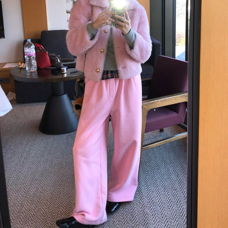 waist check happy peach sweat fleece pants e1823