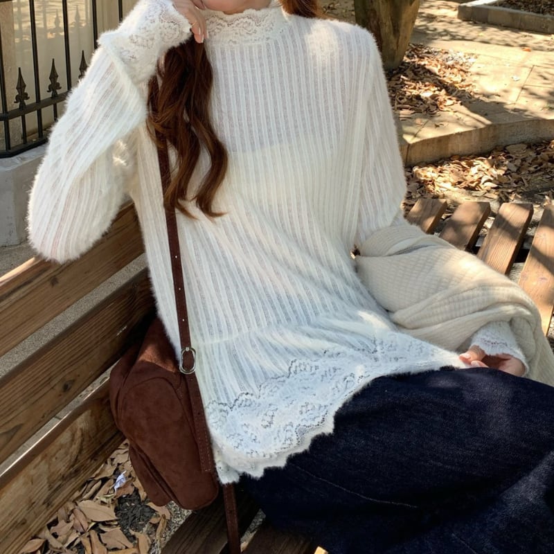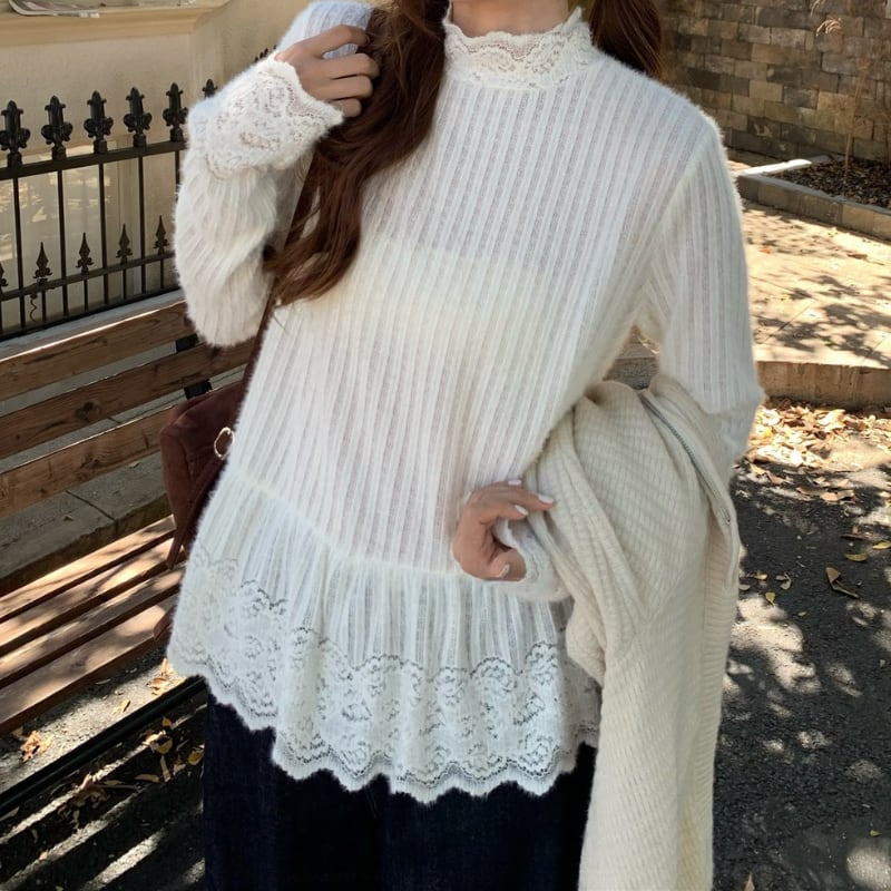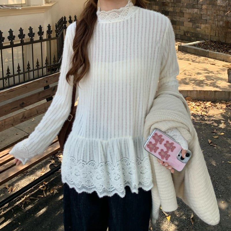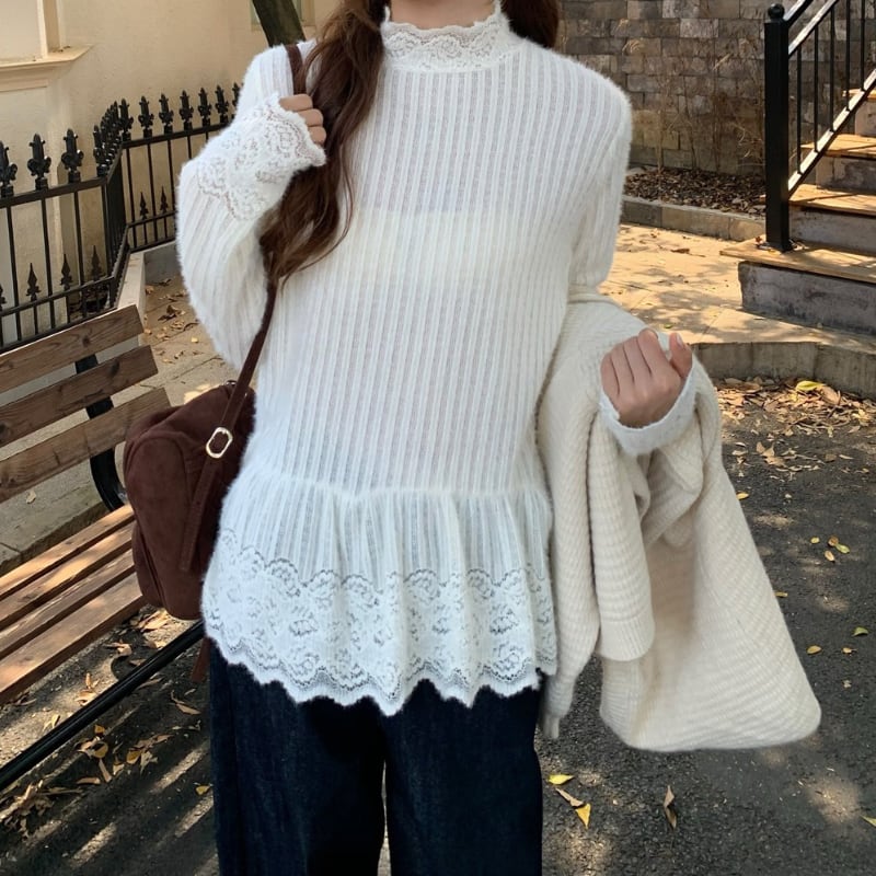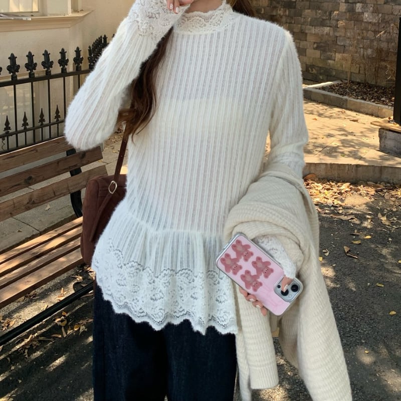 lace trim stripe layered peplum pullover e1831