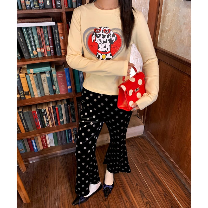 polka dot satin print fleece flare pants e1833