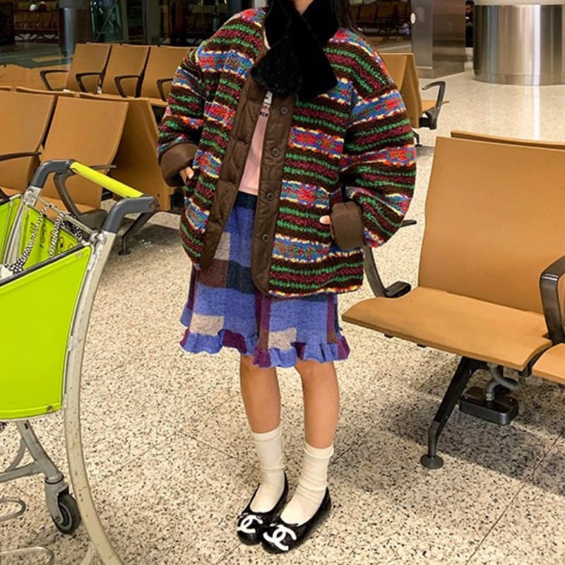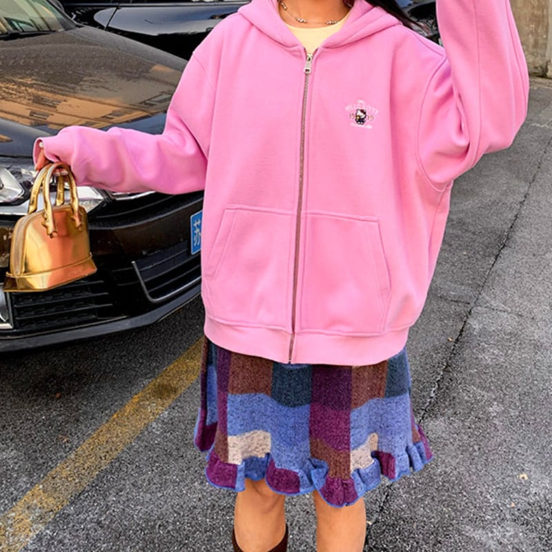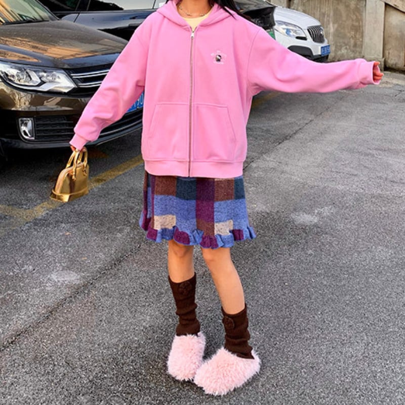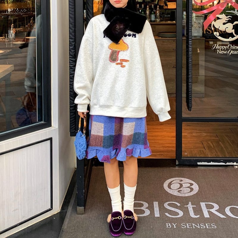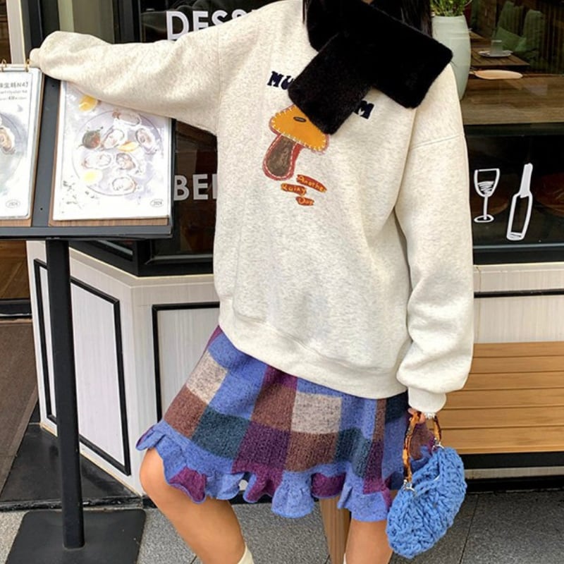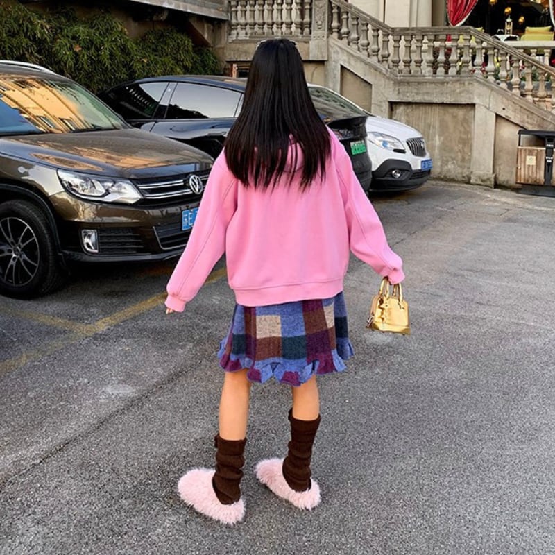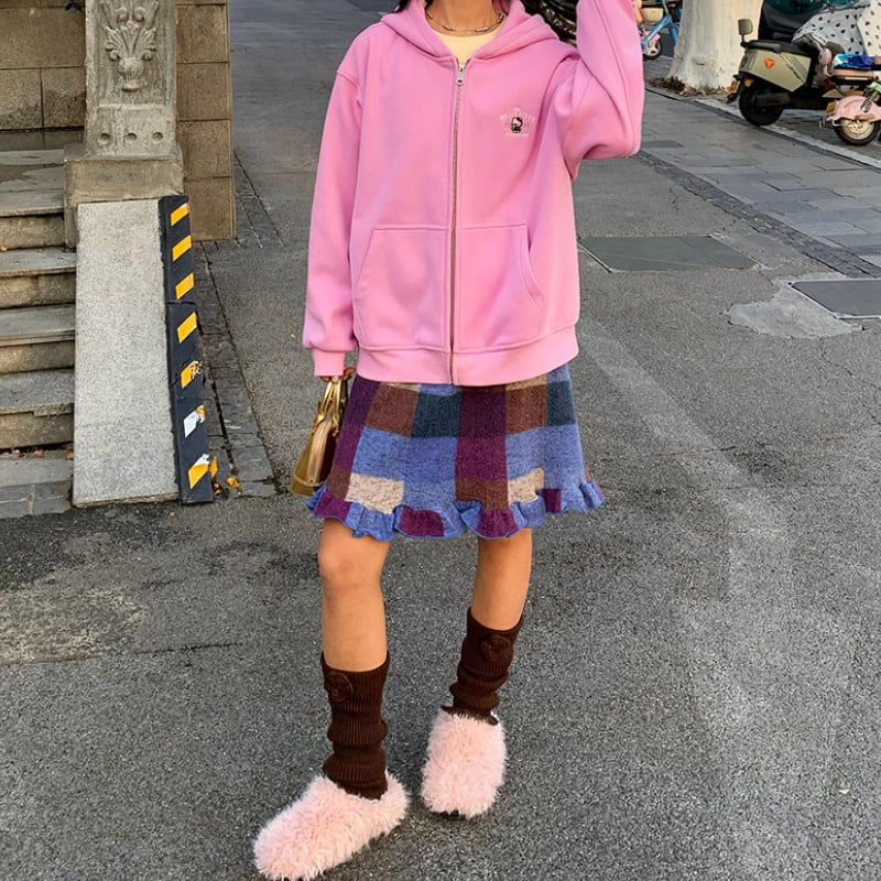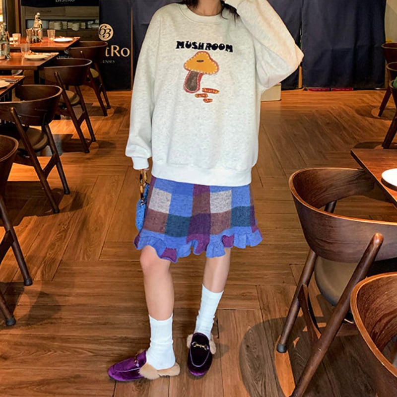 block check frill hem brushed knit skirt e1835