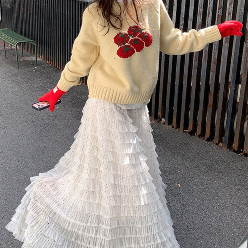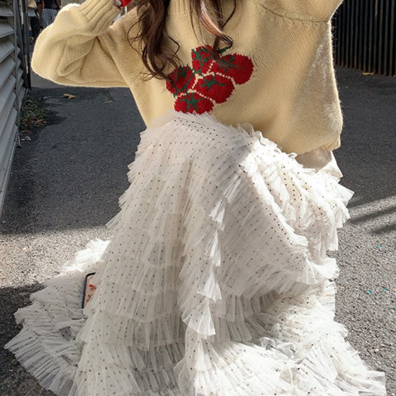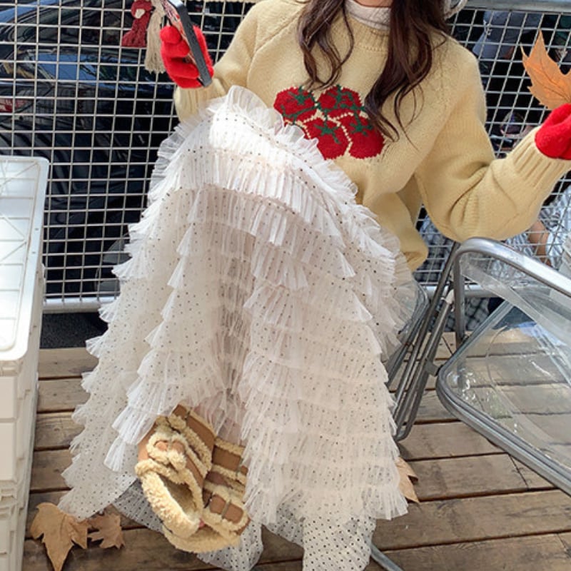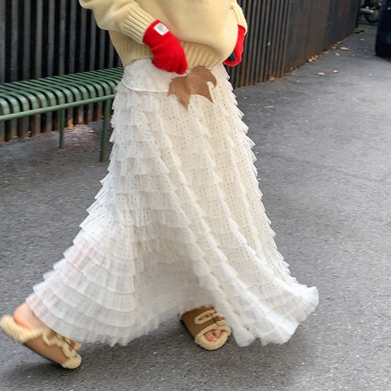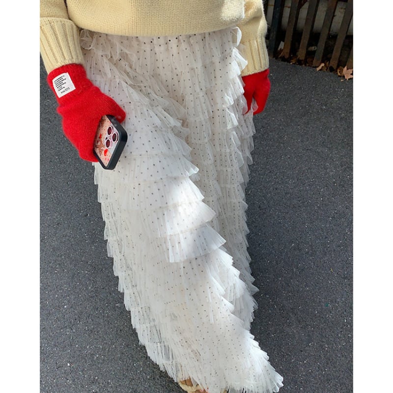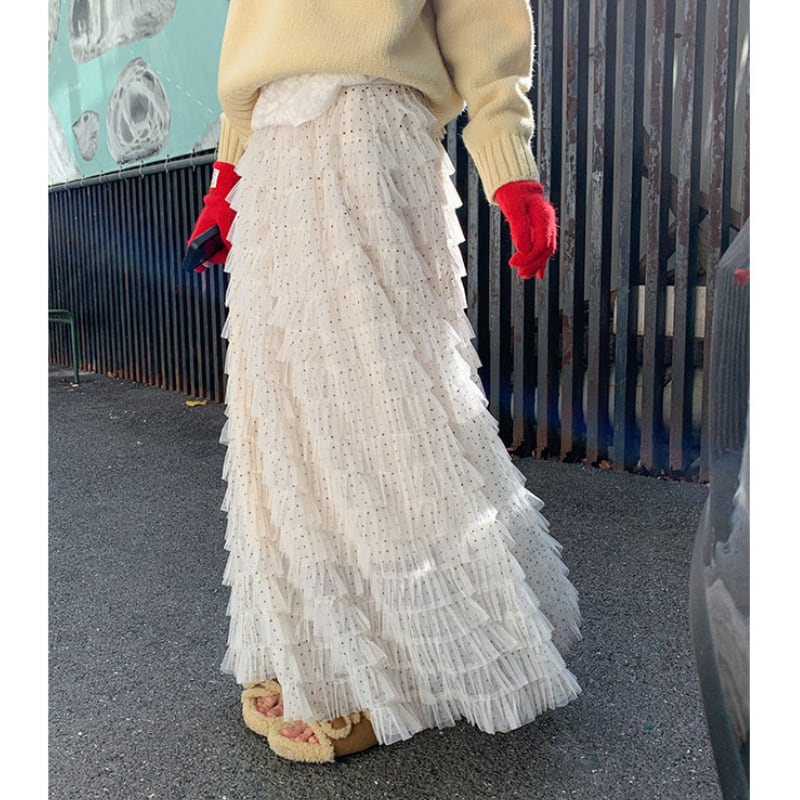 dot mesh frill tiered cake skirt e1842