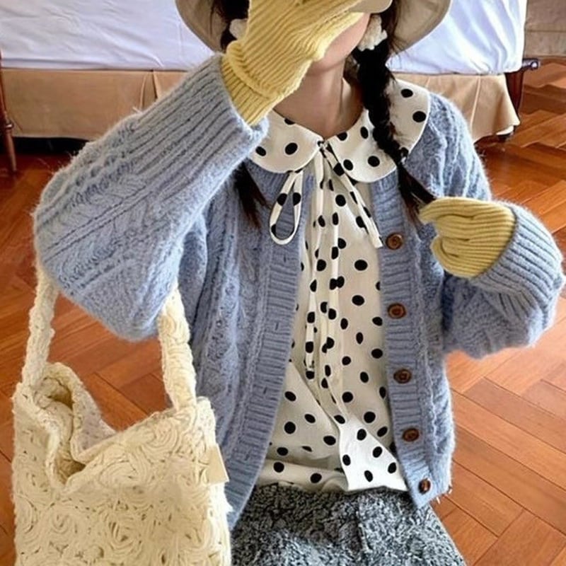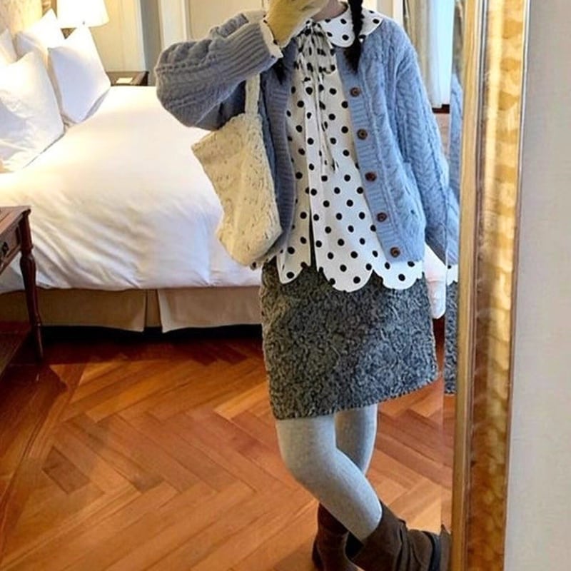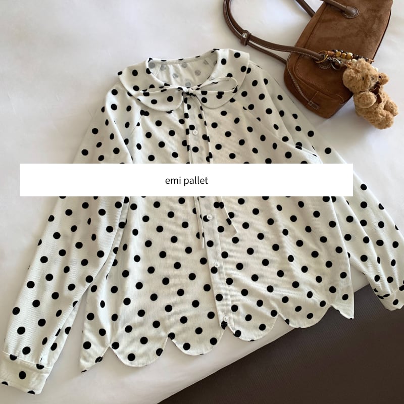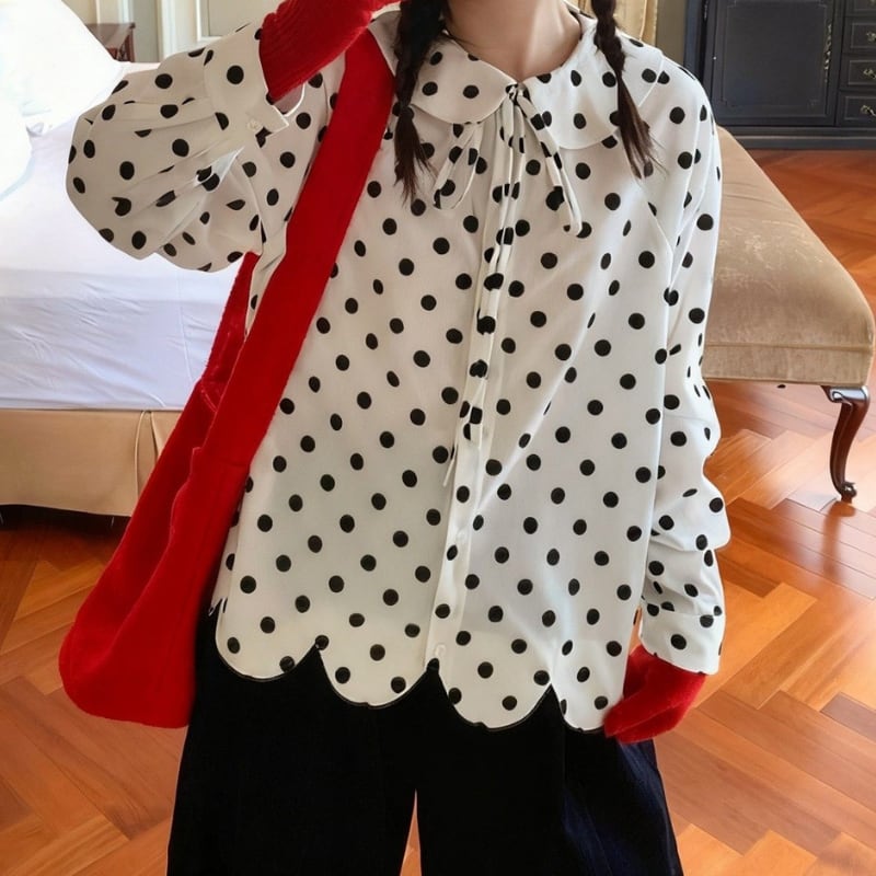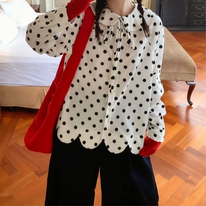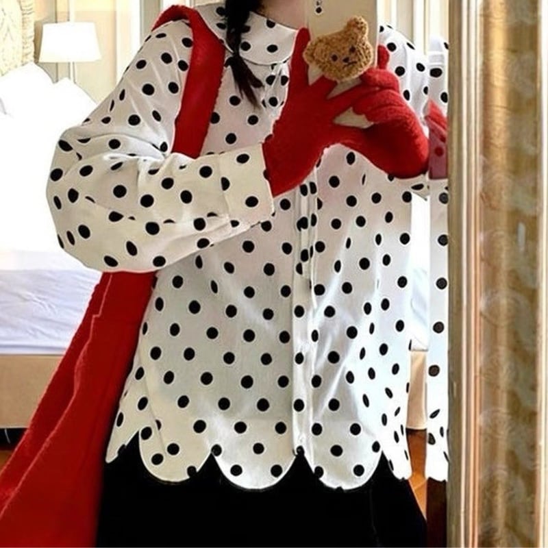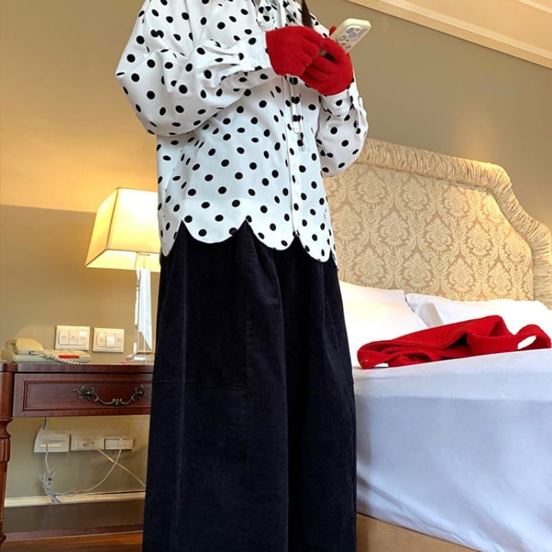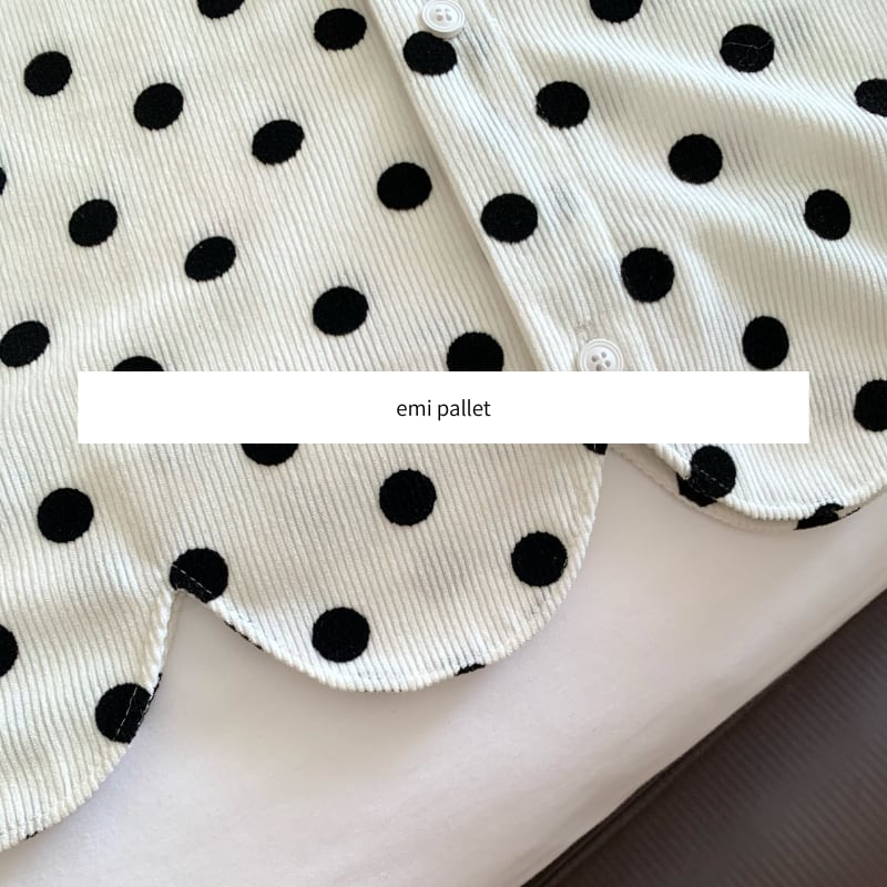 corduroy polka dot scallop hem design shirt e1845