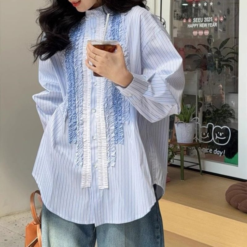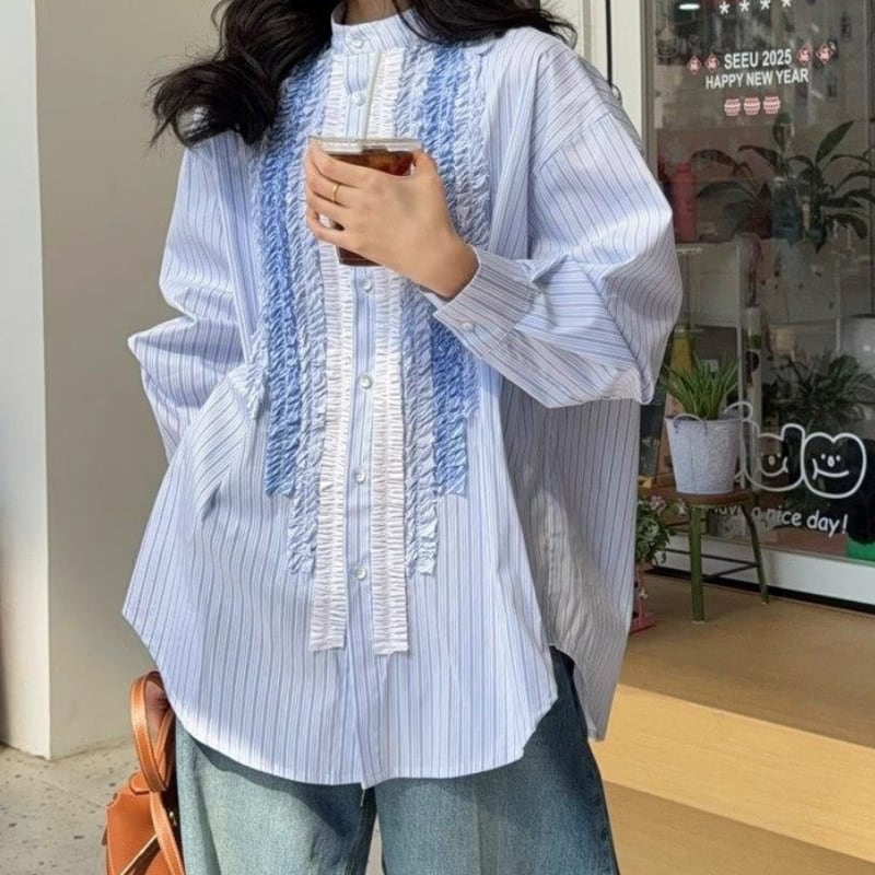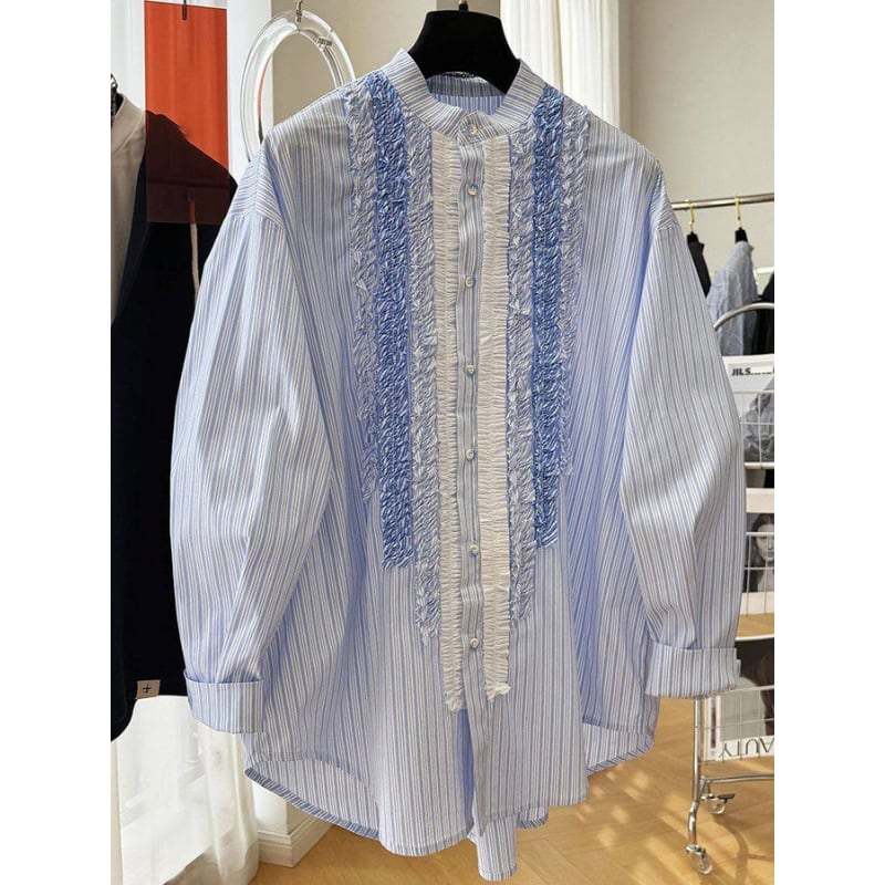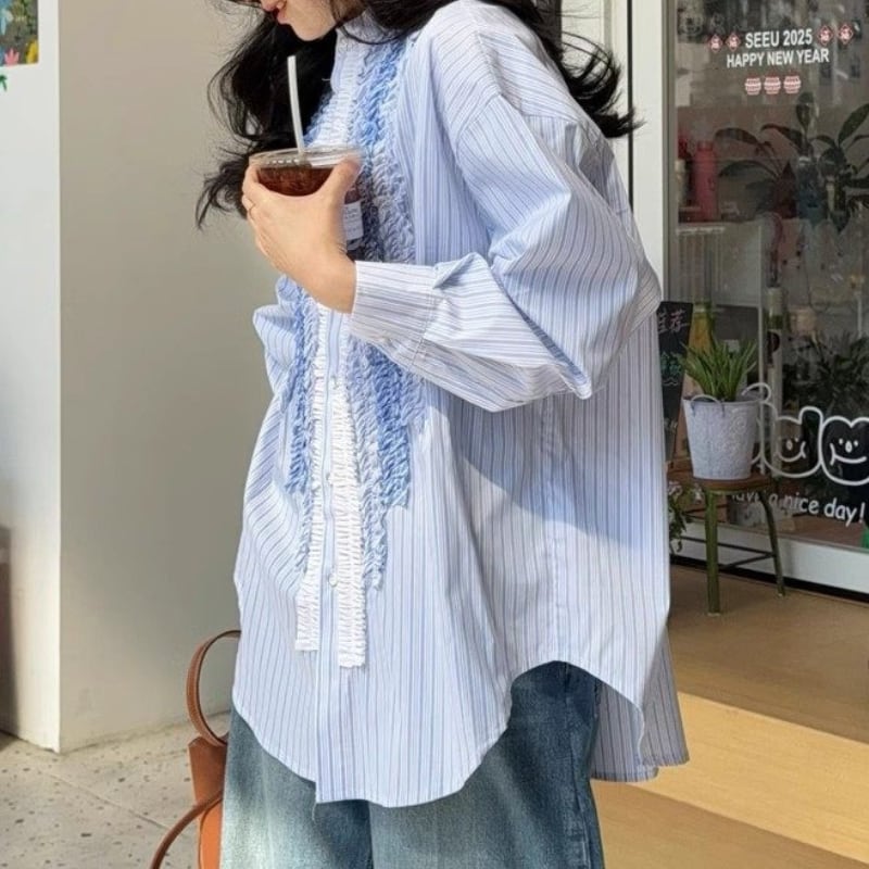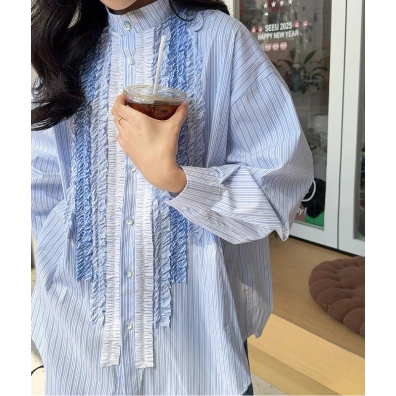 gradation frill decoration stripe design shirt e1850