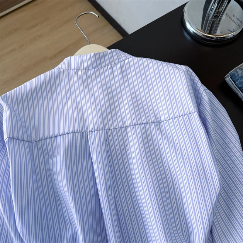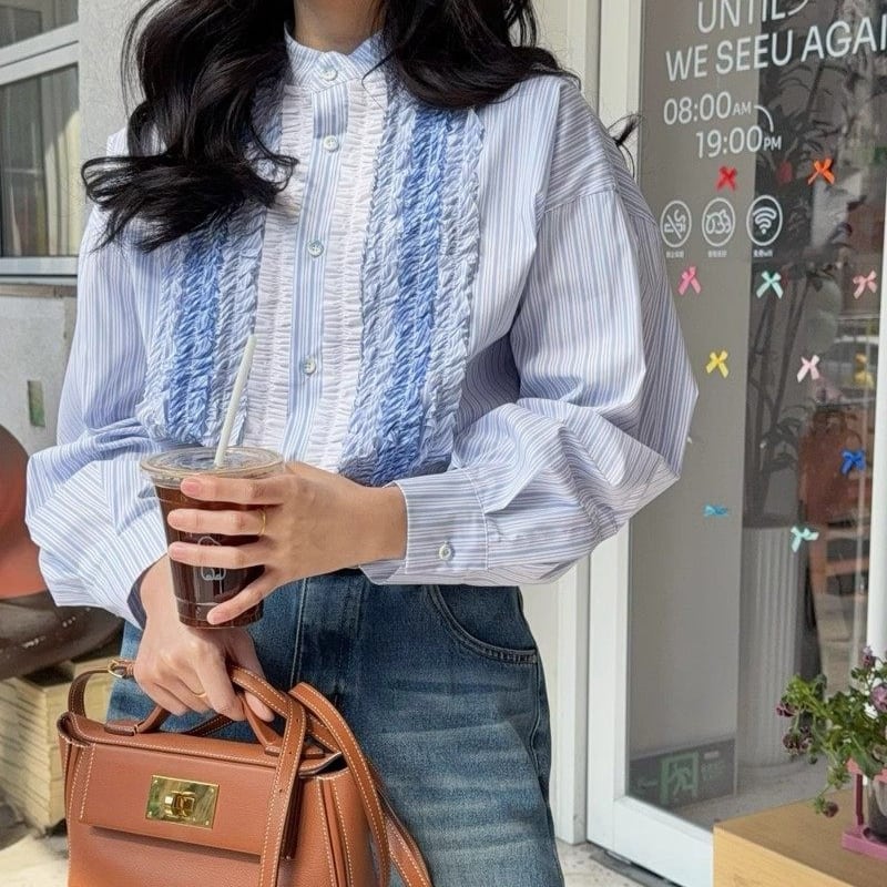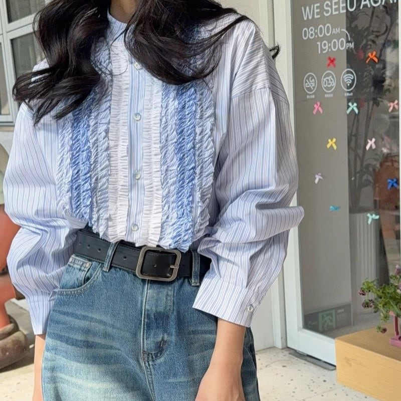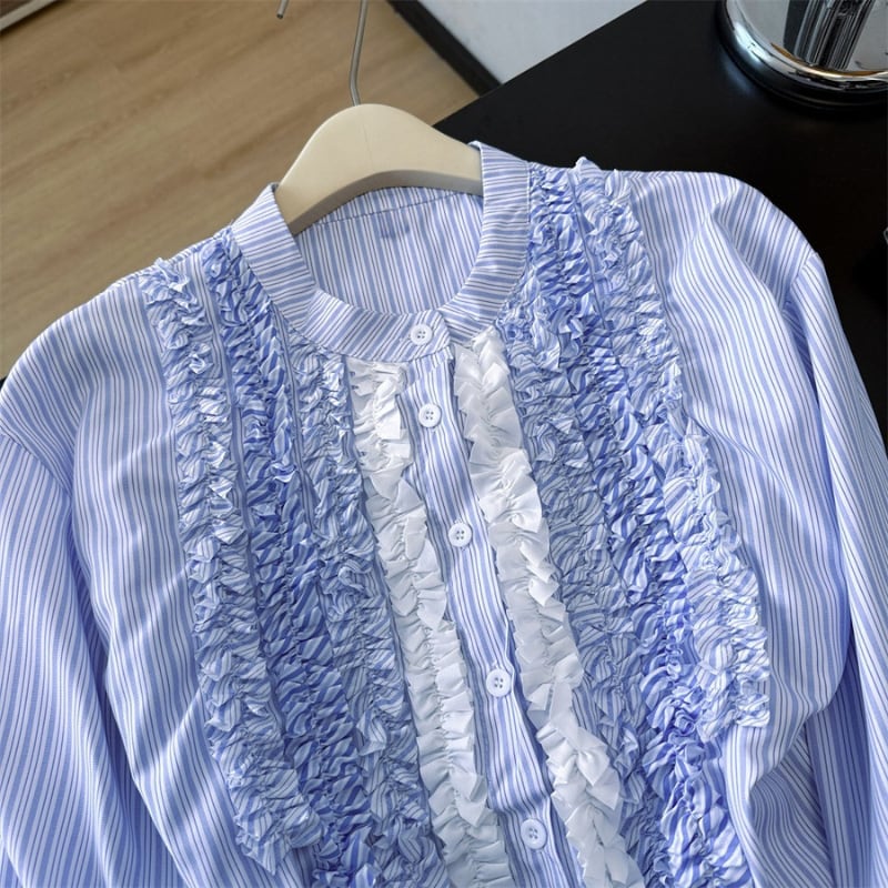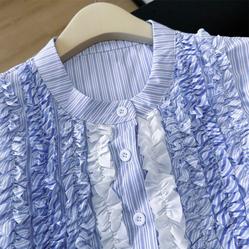 gradation frill decoration stripe design shirt e1850