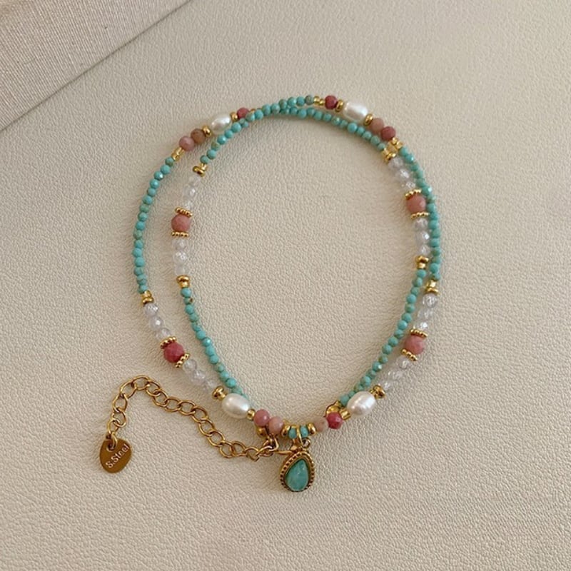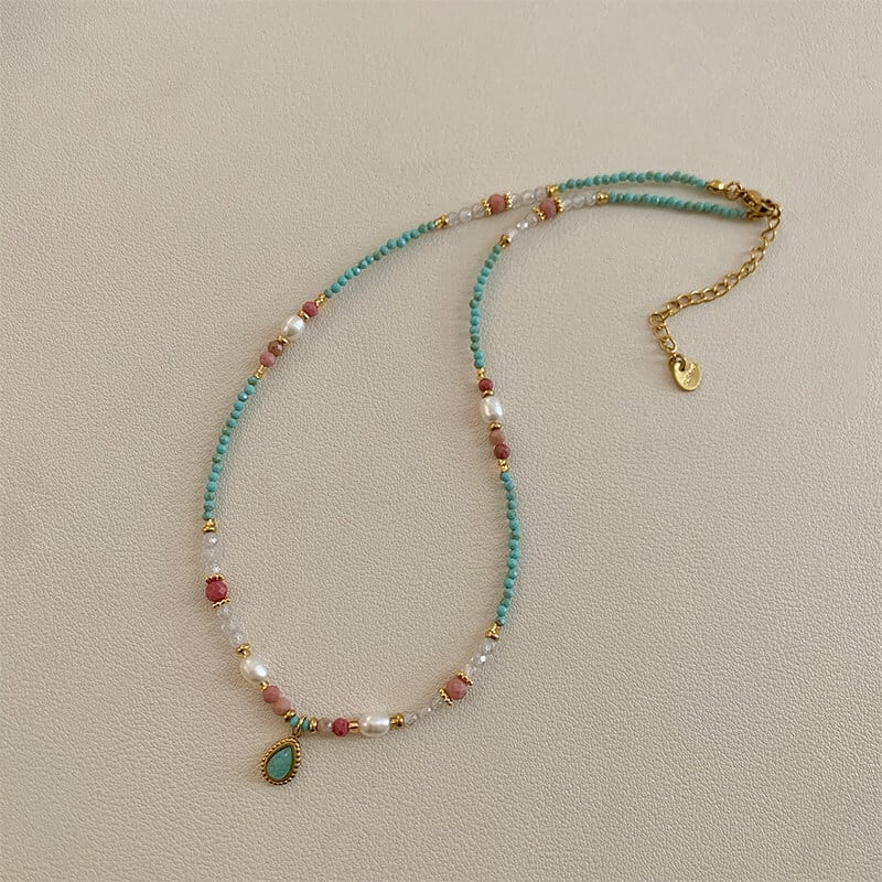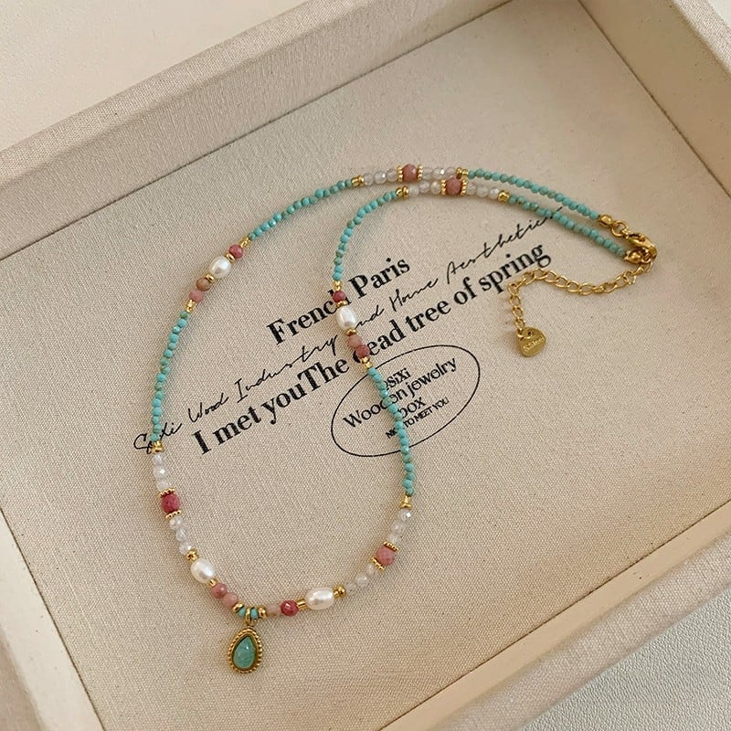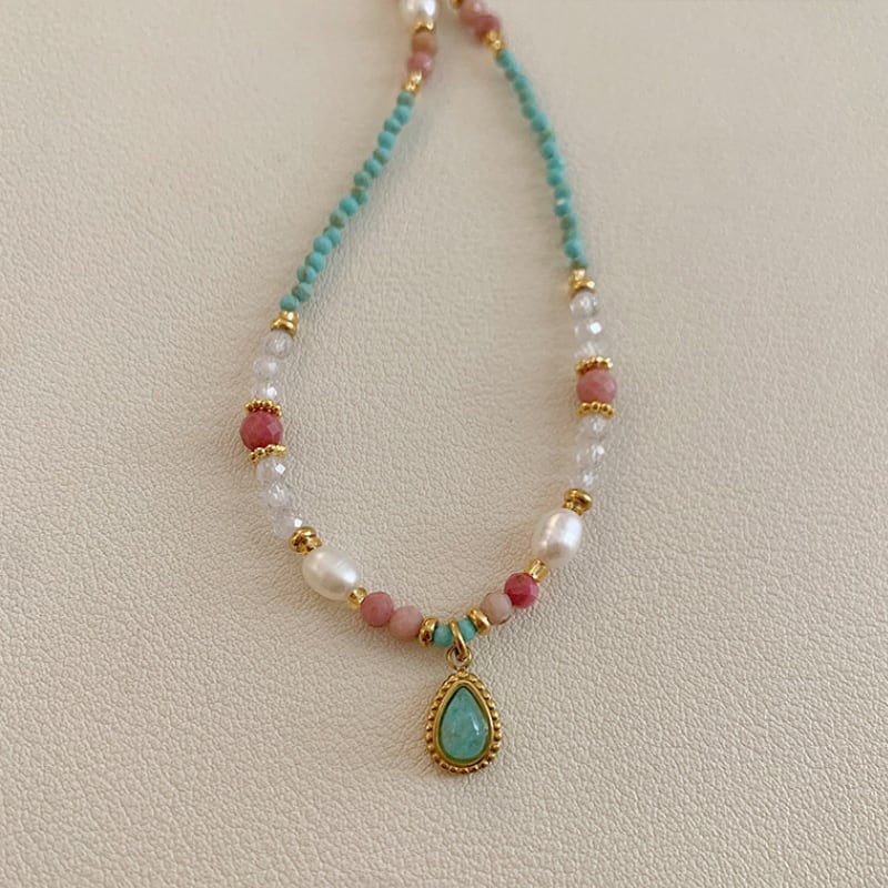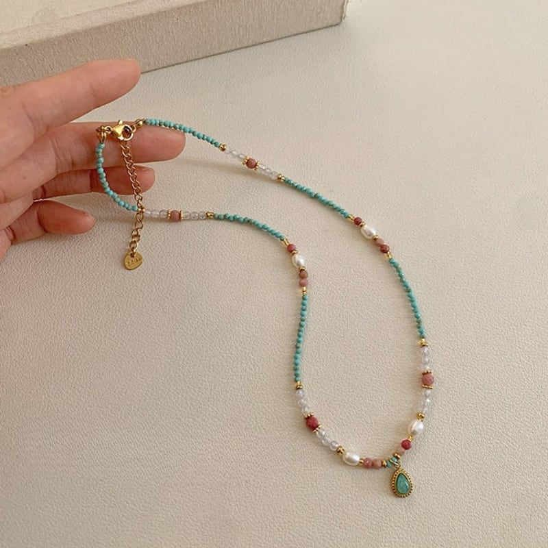 turquoise pearl beads design necklace e1854