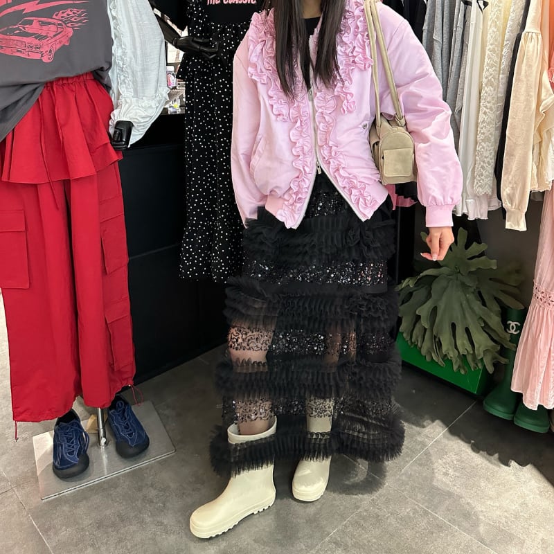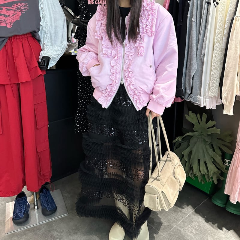 sweet frill rain glossy design blouson e1855