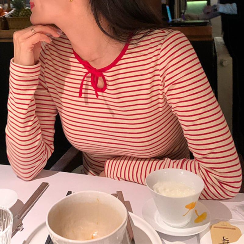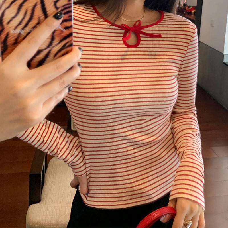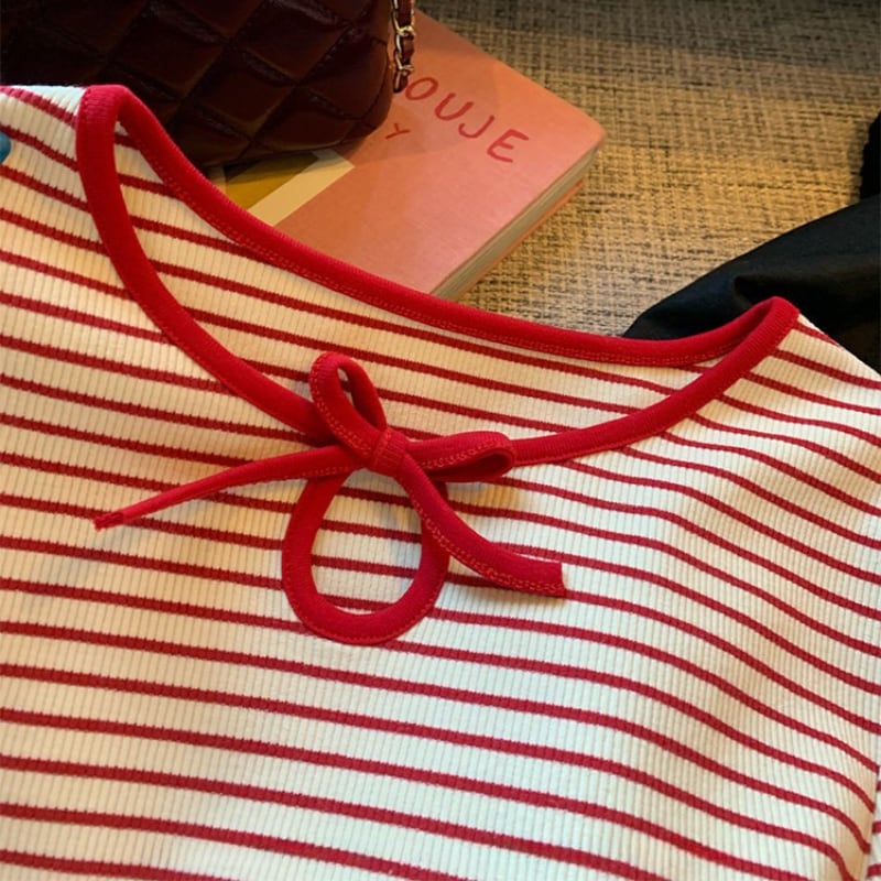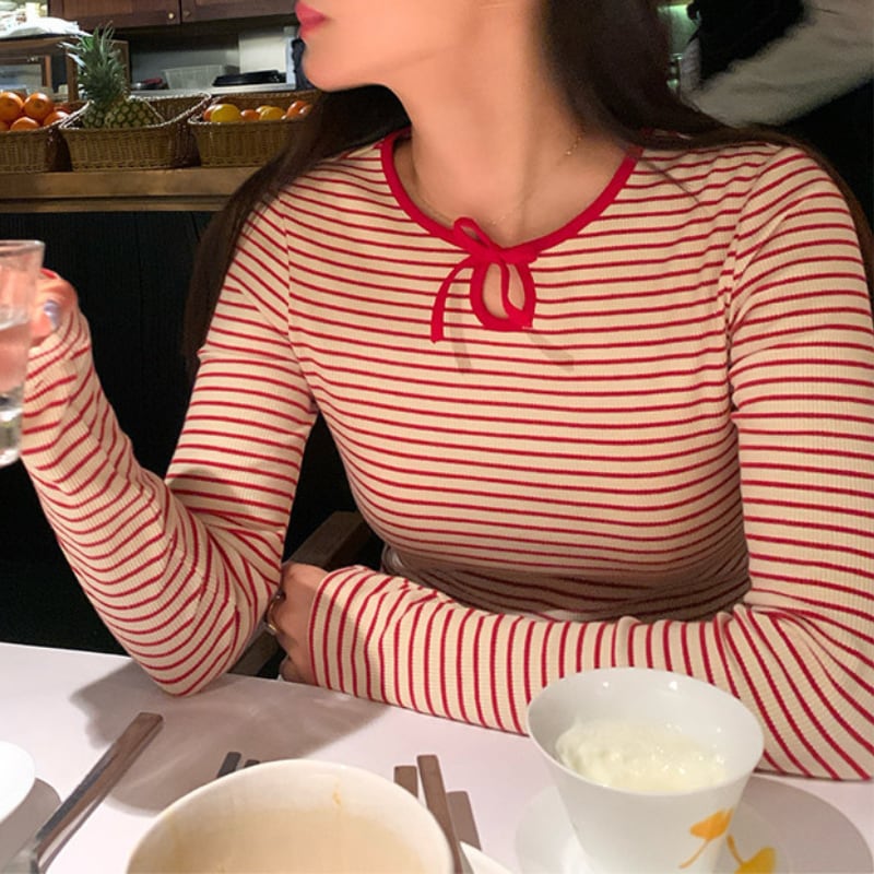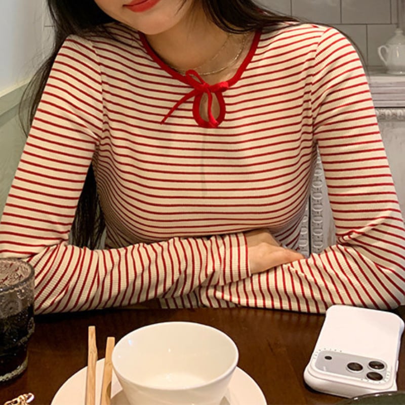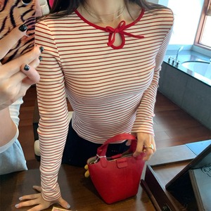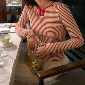 crew neck mini ribbon girly border tee e1857