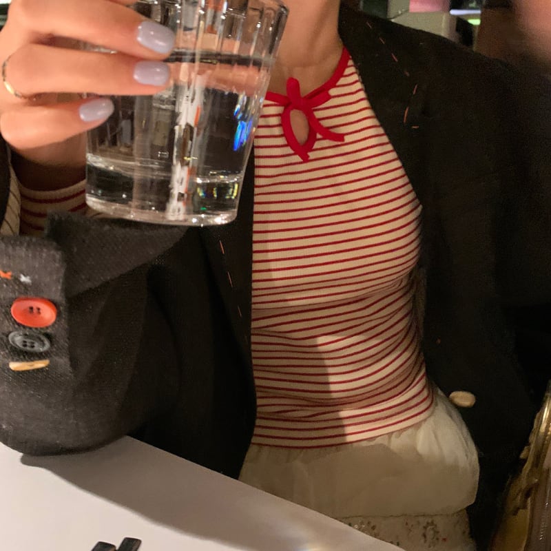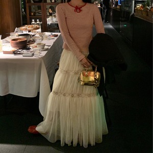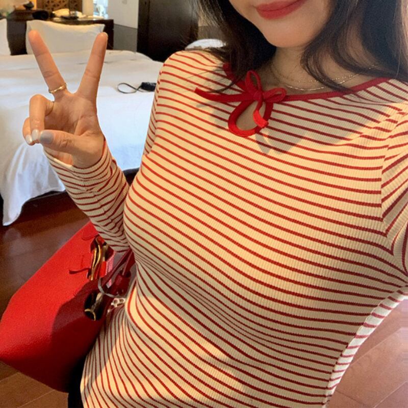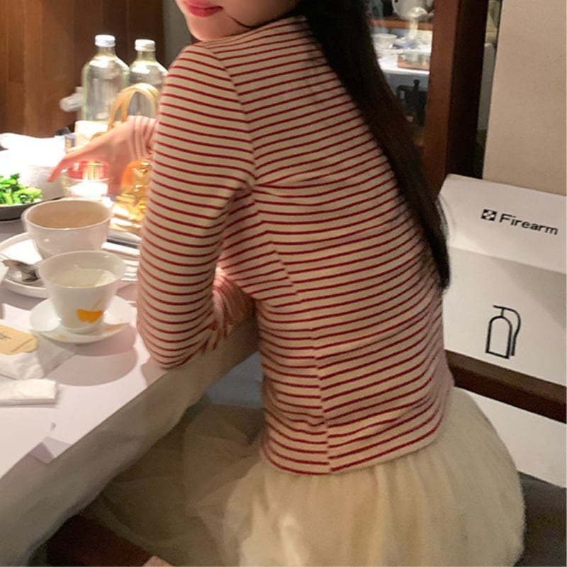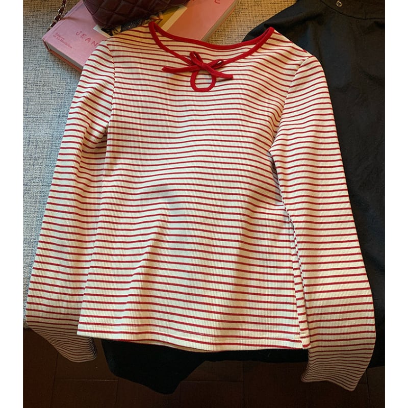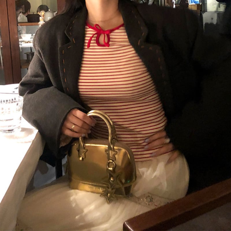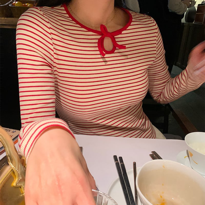 crew neck mini ribbon girly border tee e1857