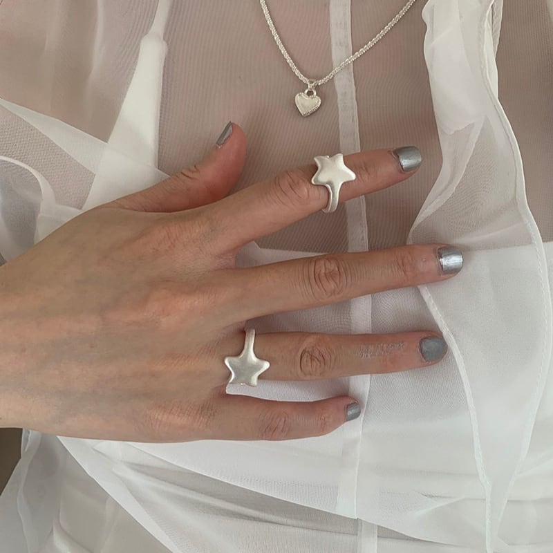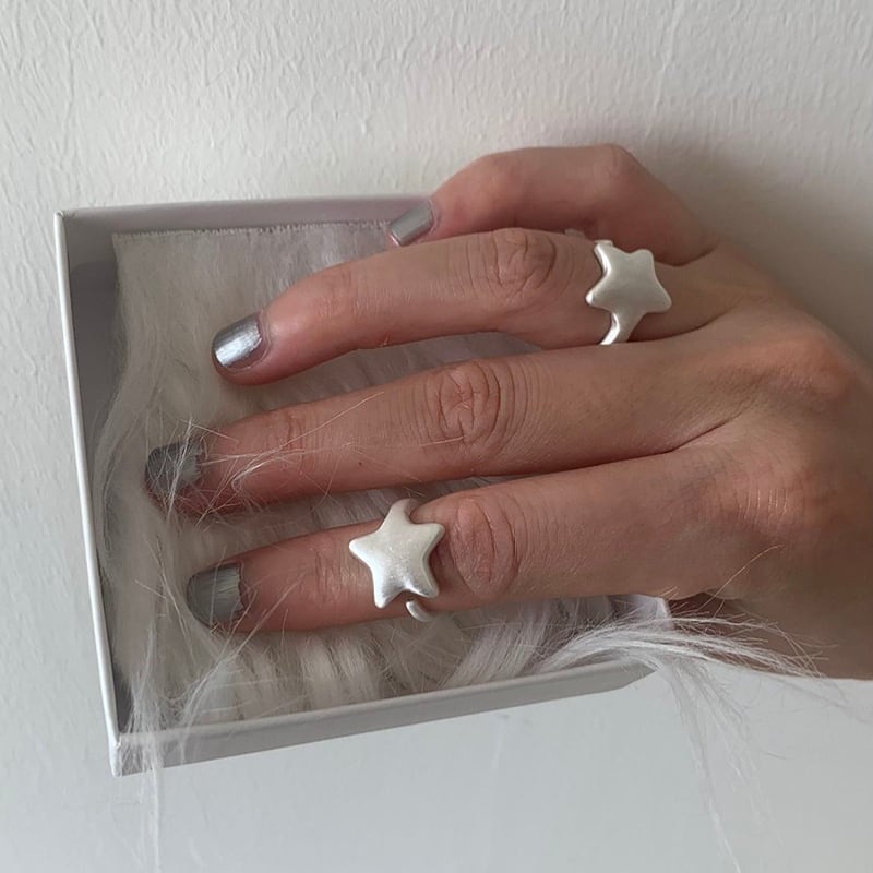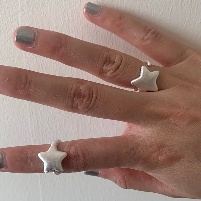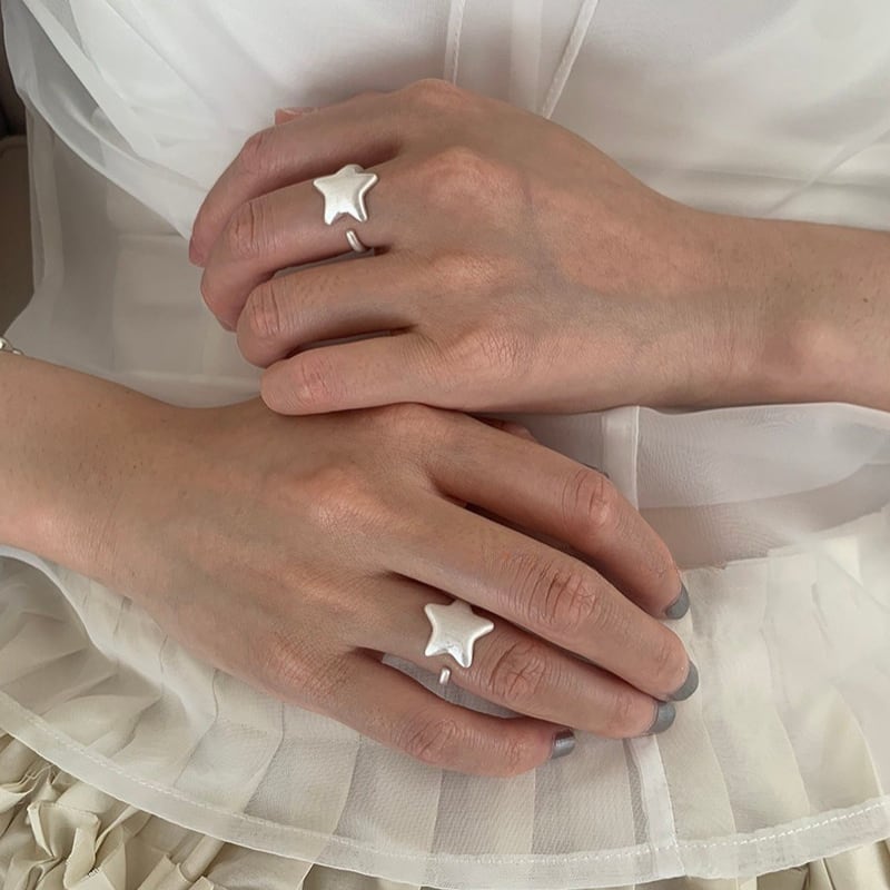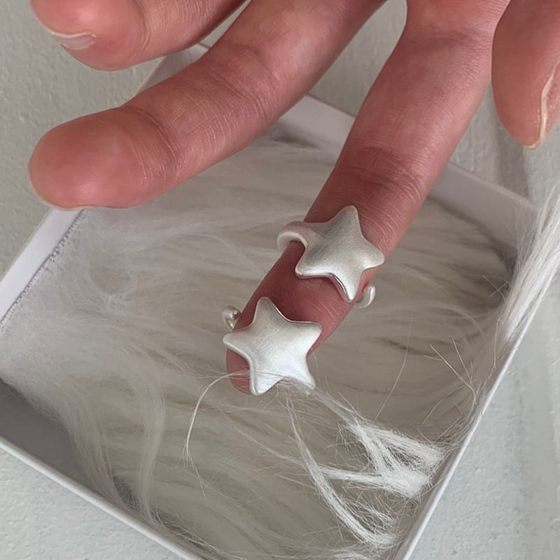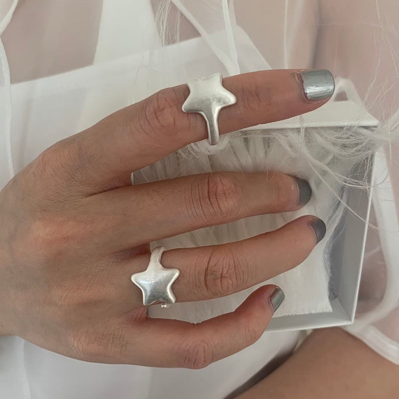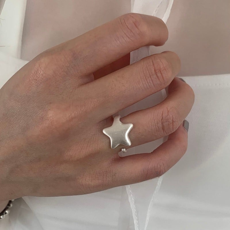 matte silver star design open ring e1860