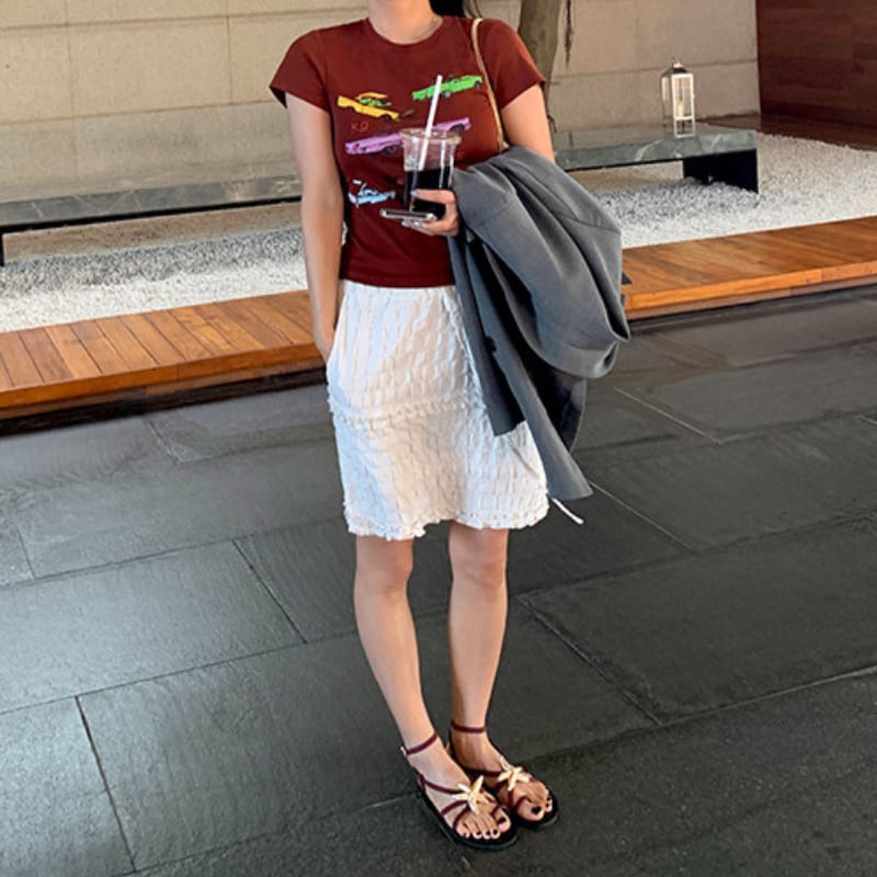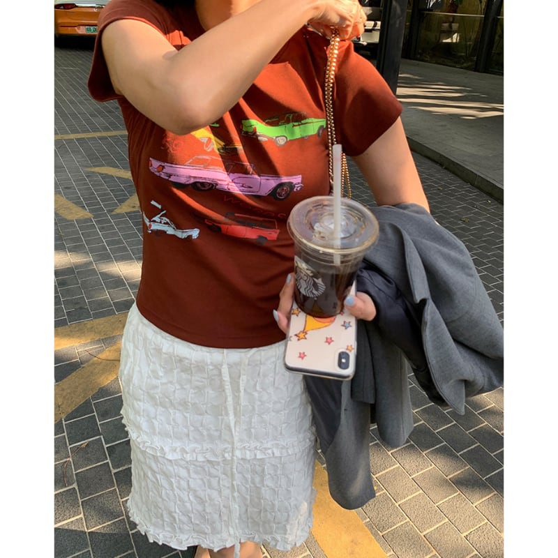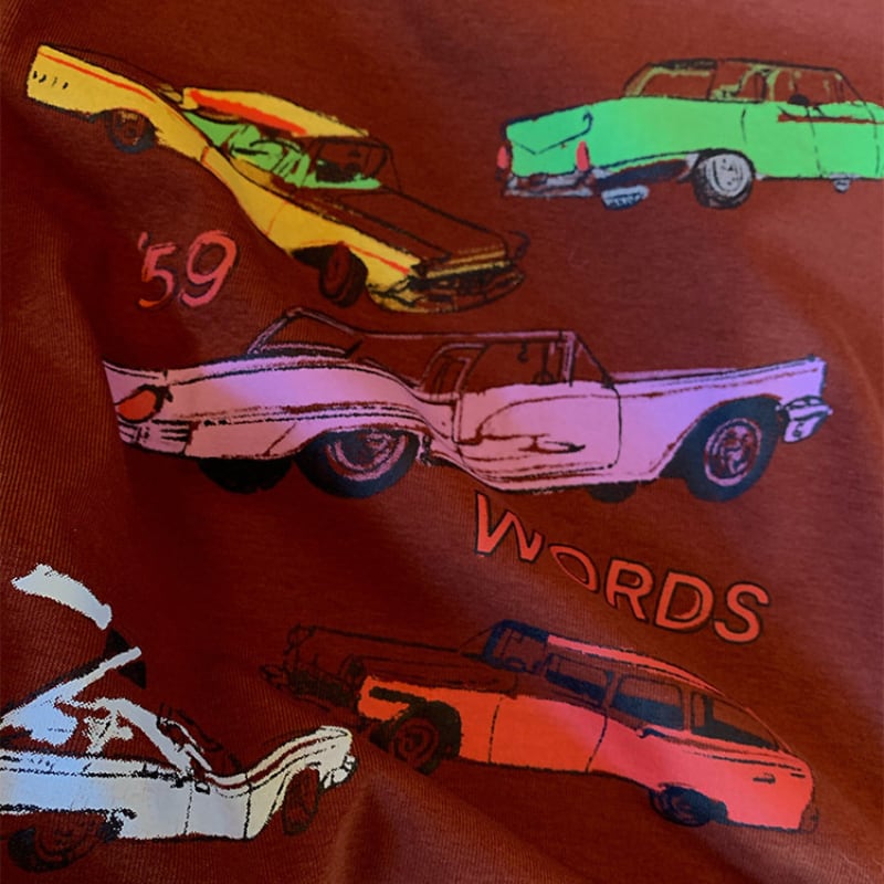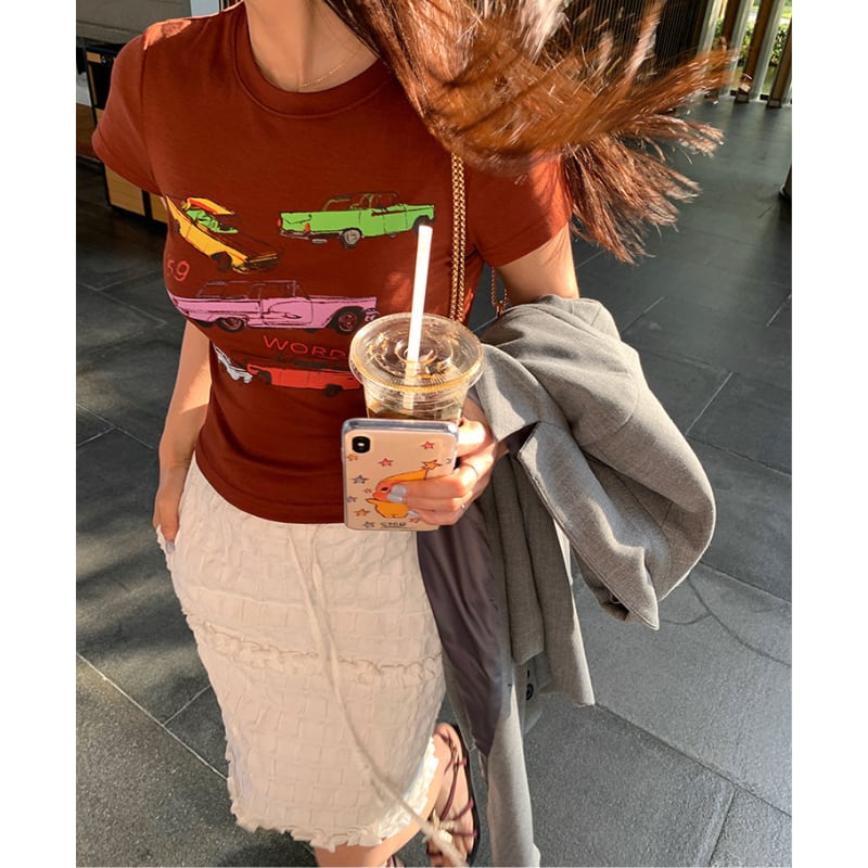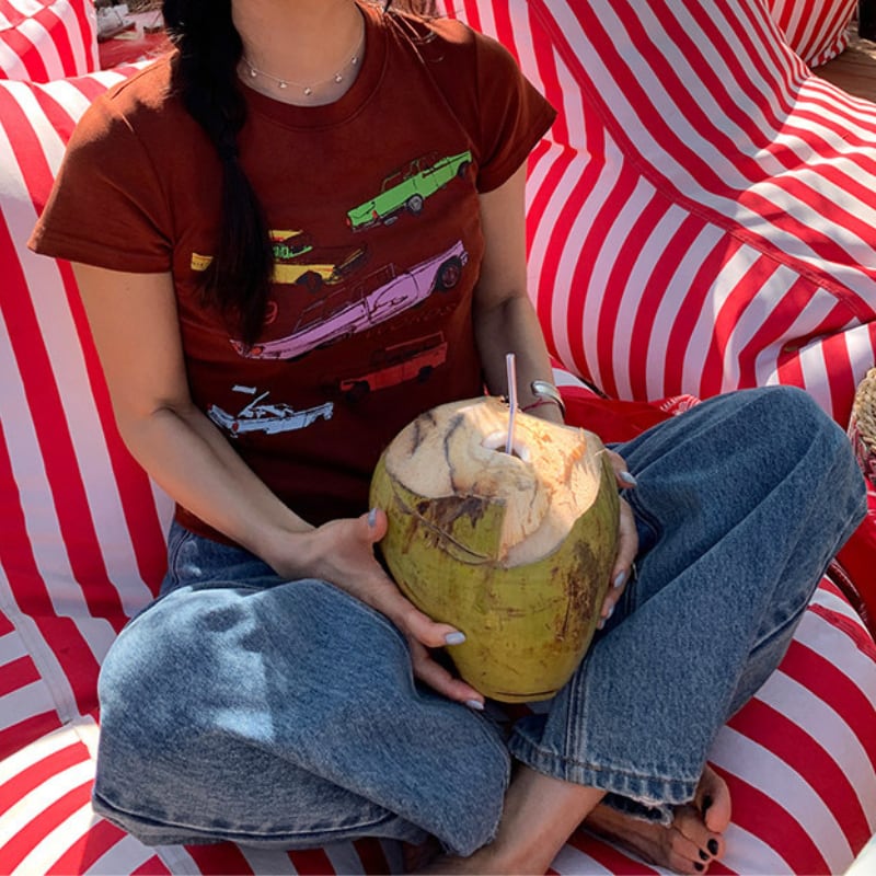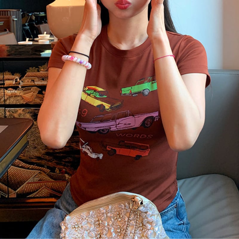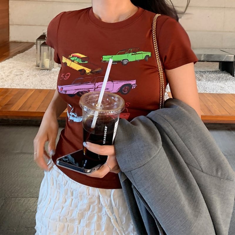 colorful classic car print chocolate tee e1878