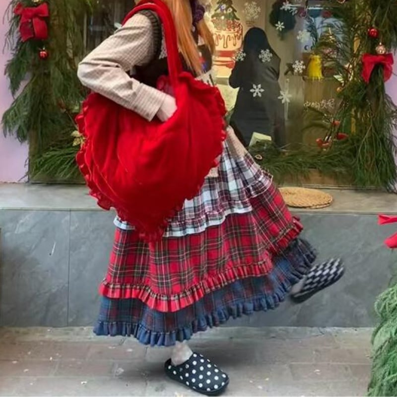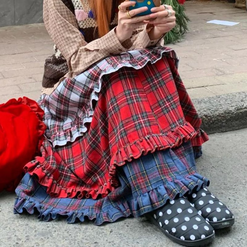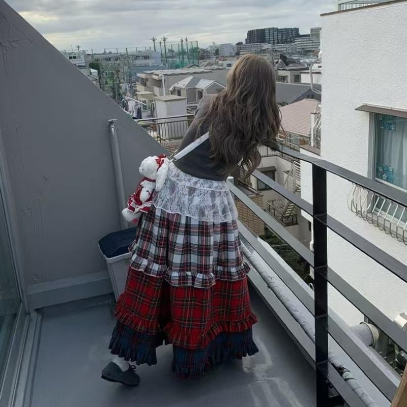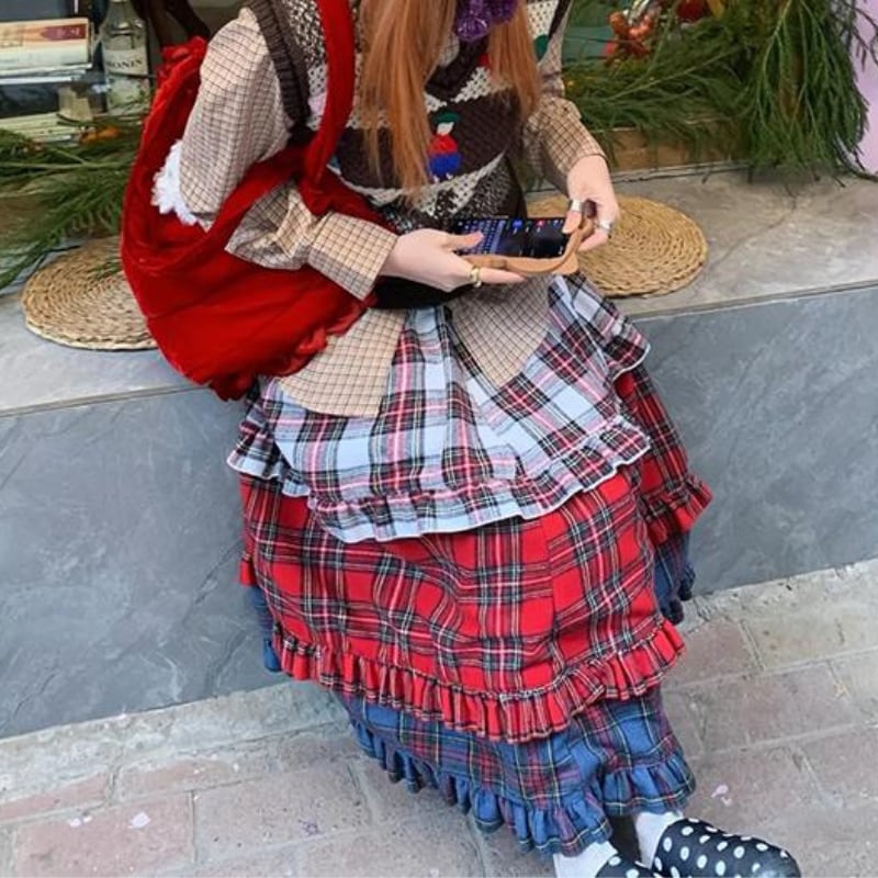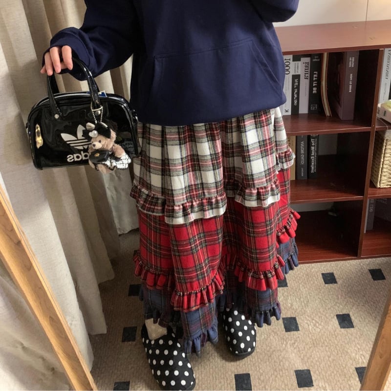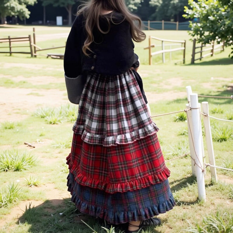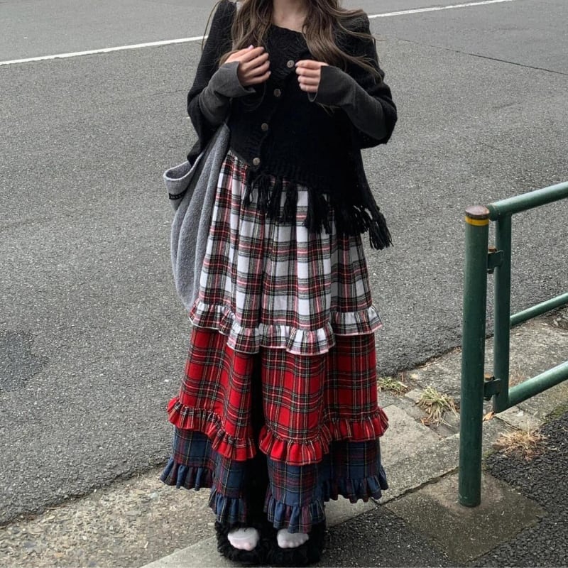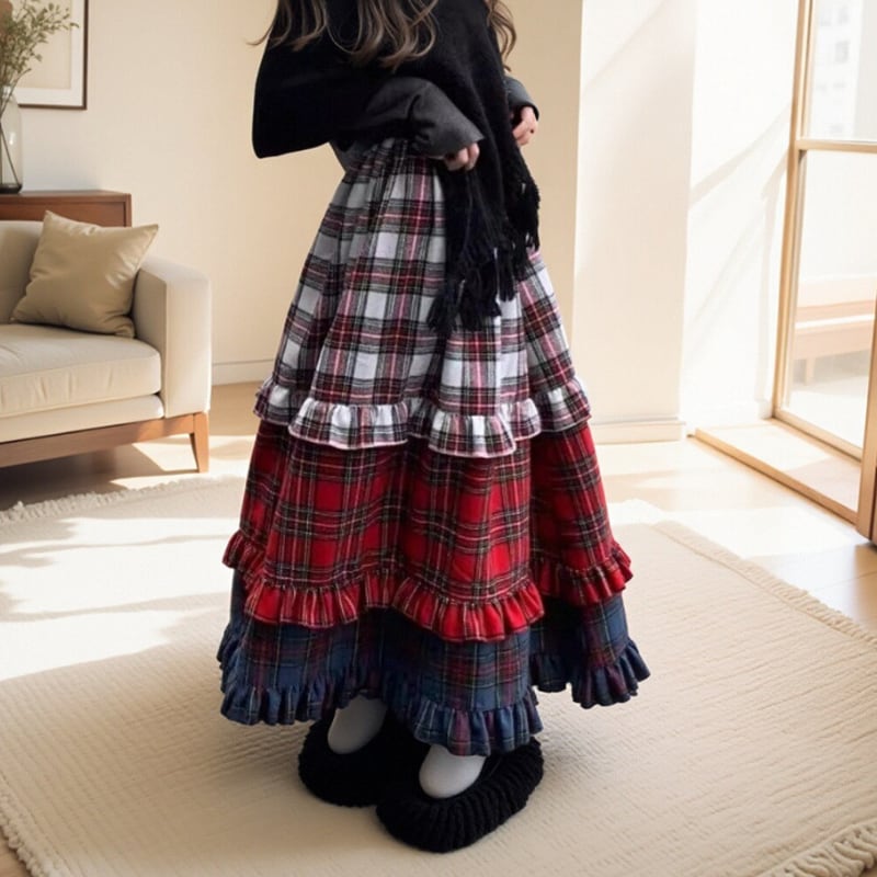 【即納】american retro check tiered cake skirt e1270