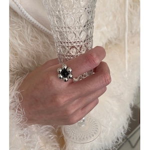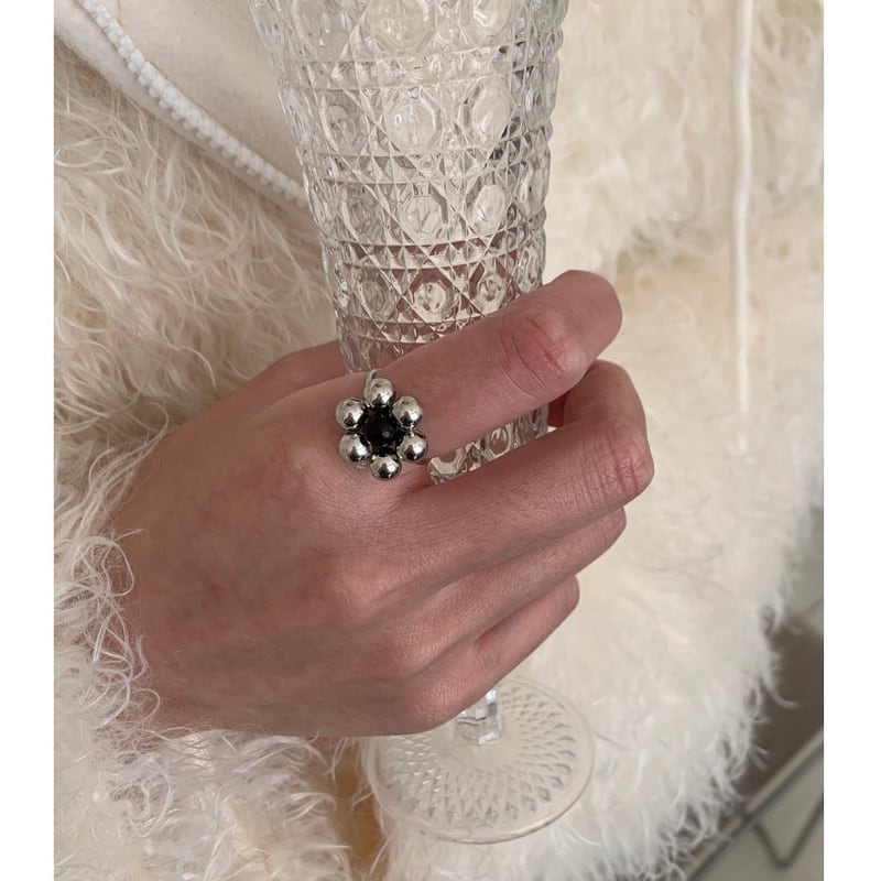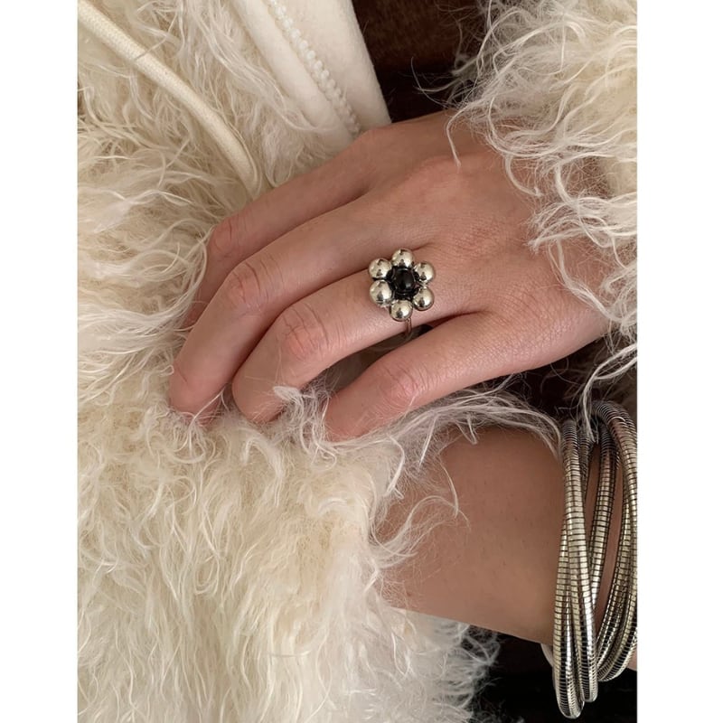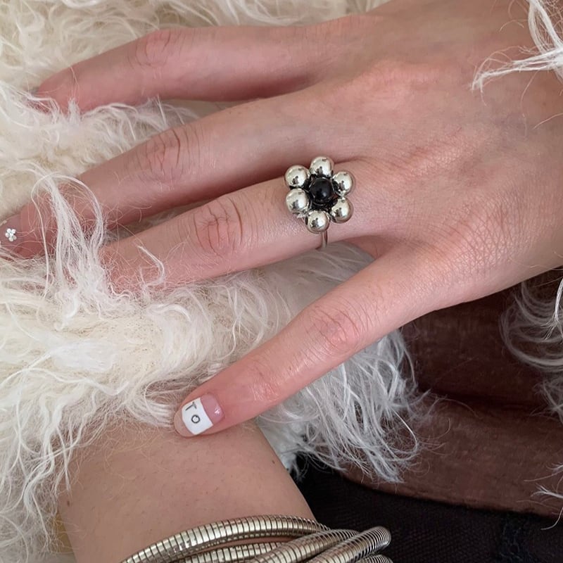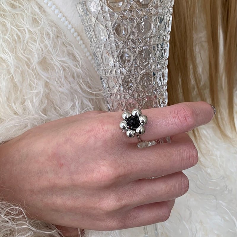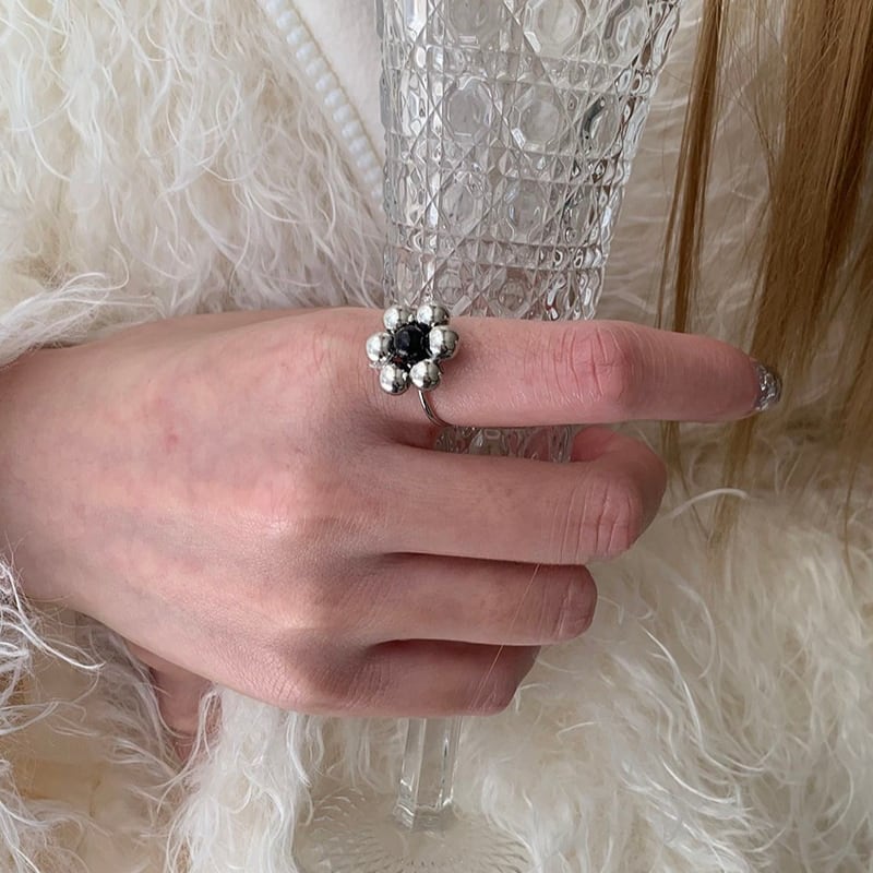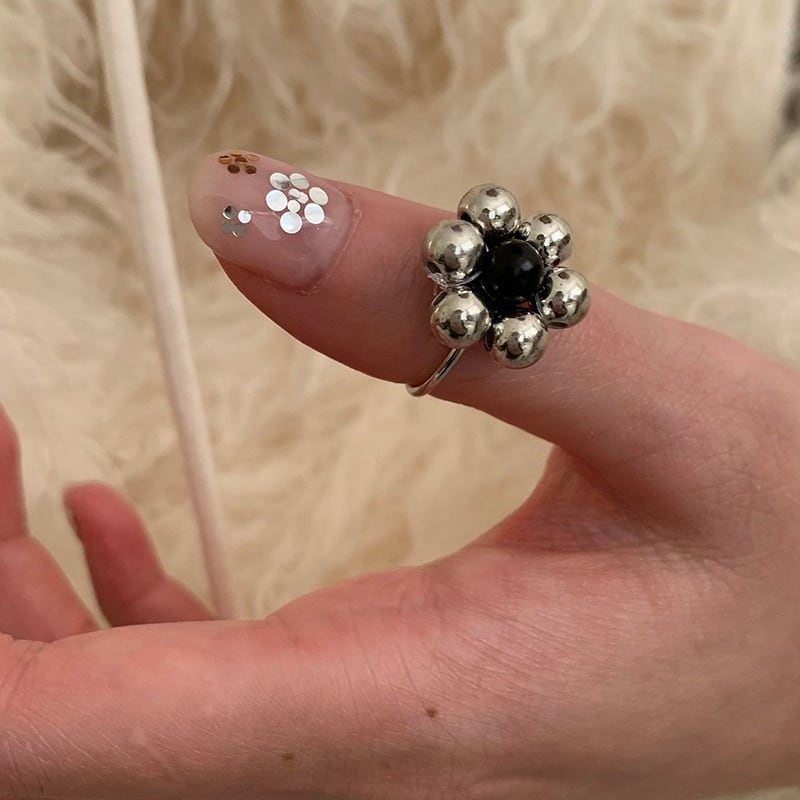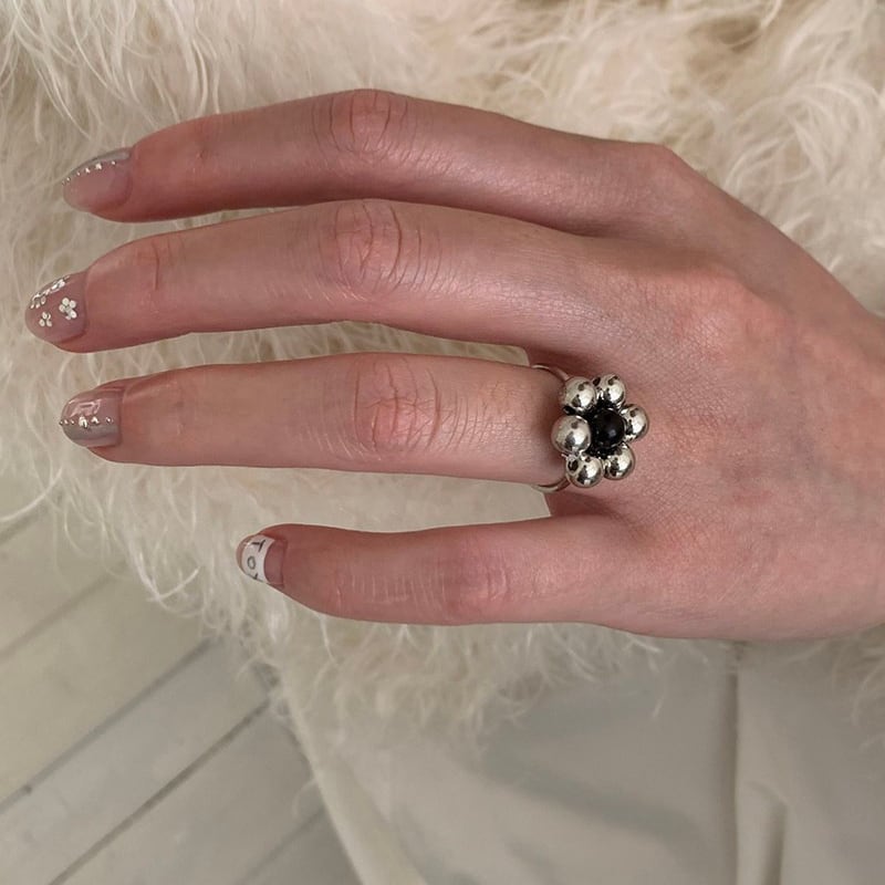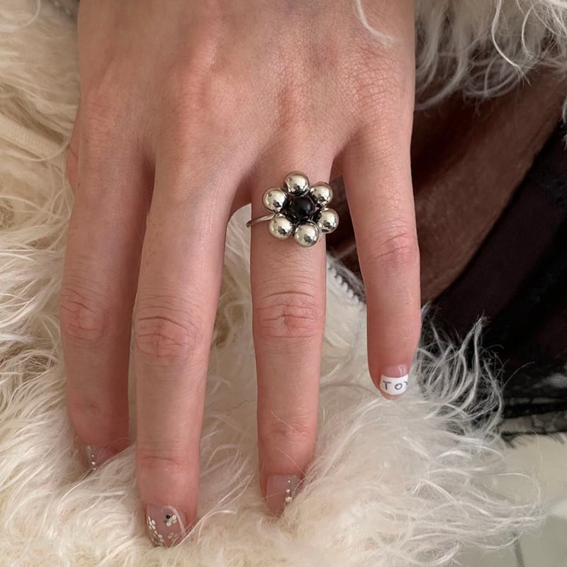 silver ball petal flower design ring e1884