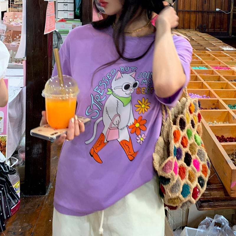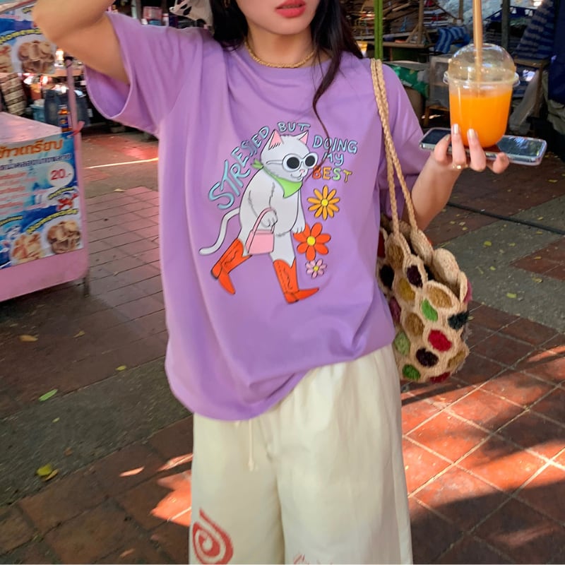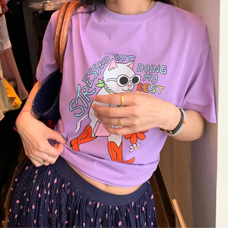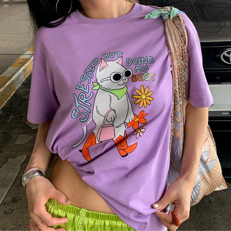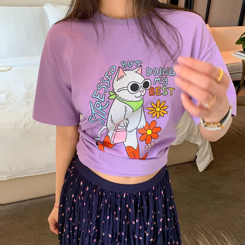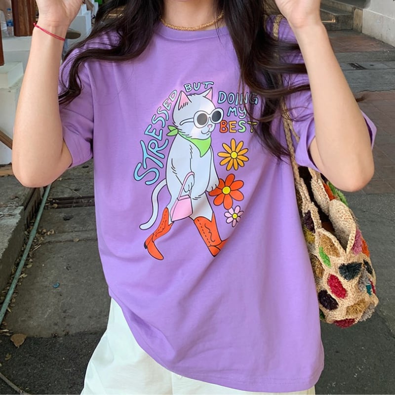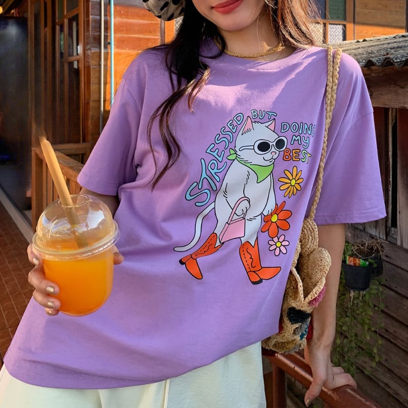 happy grape stylish model cat print tee e1889