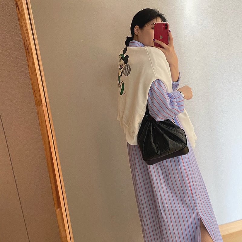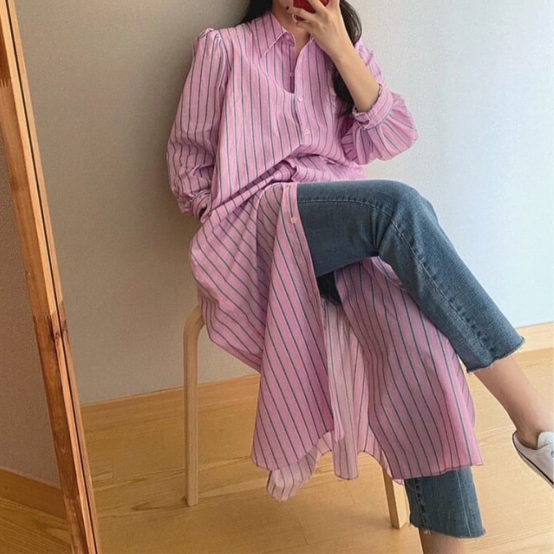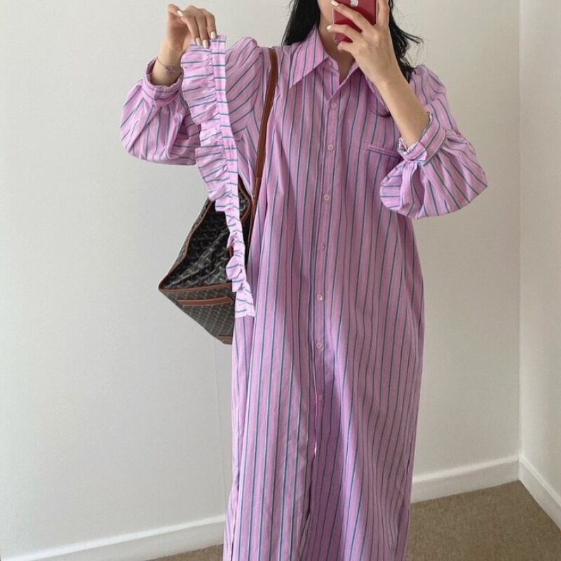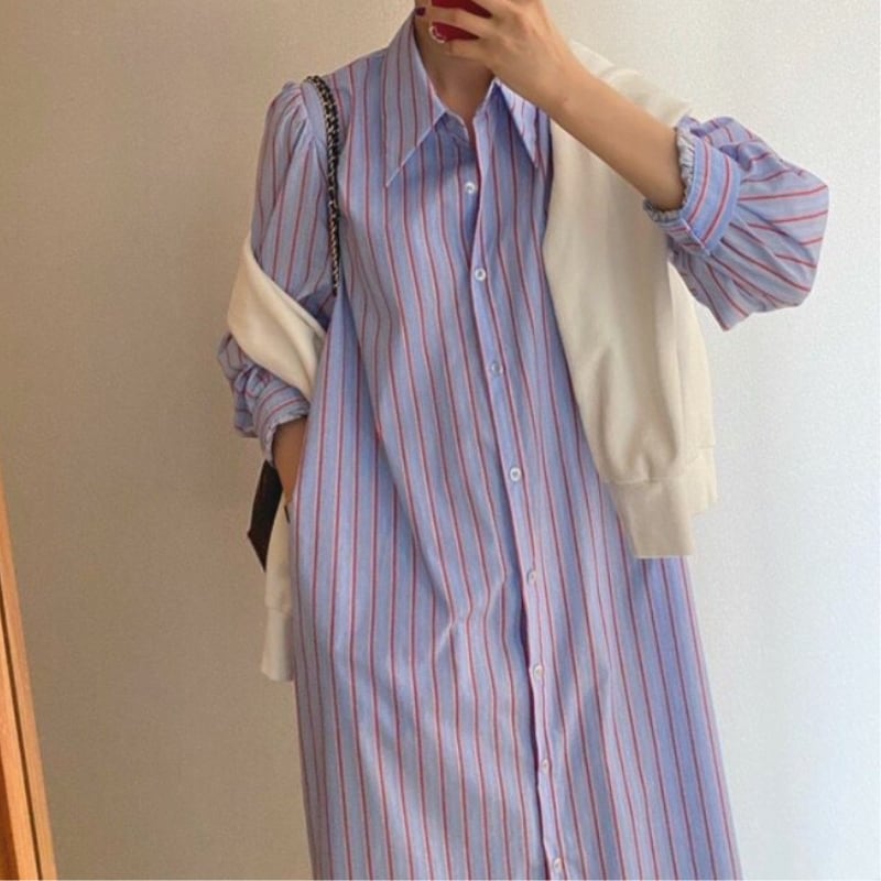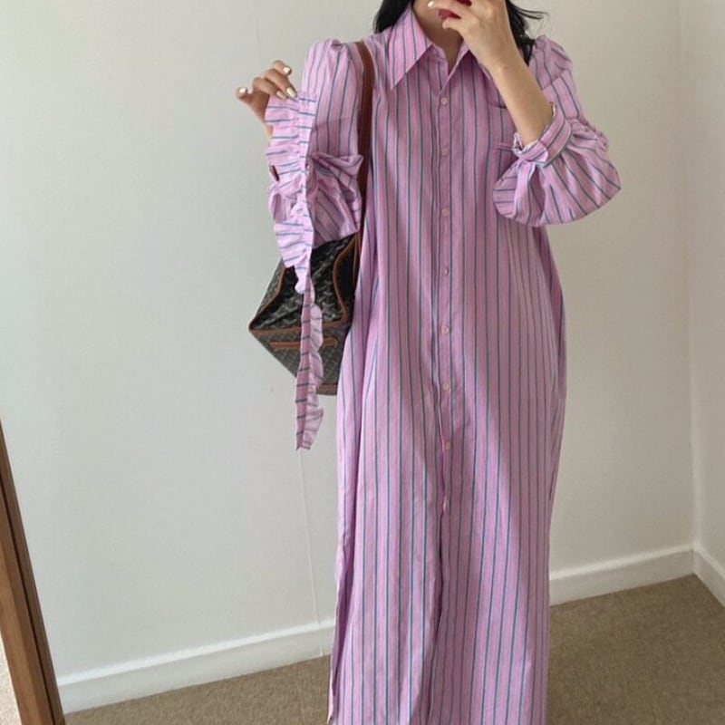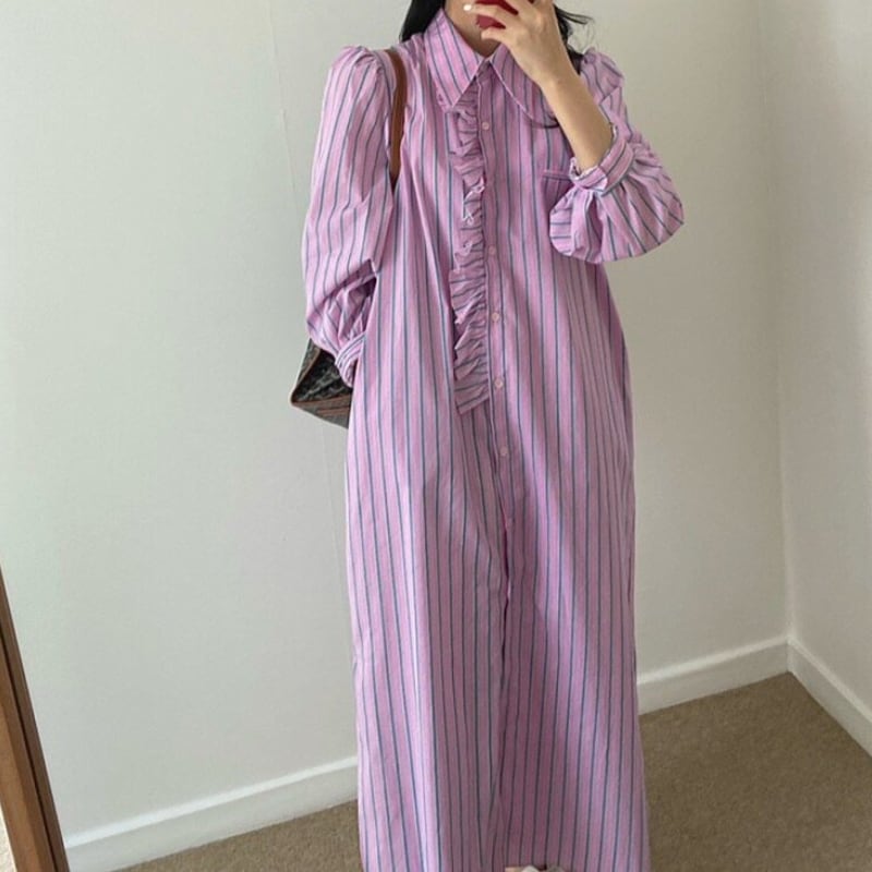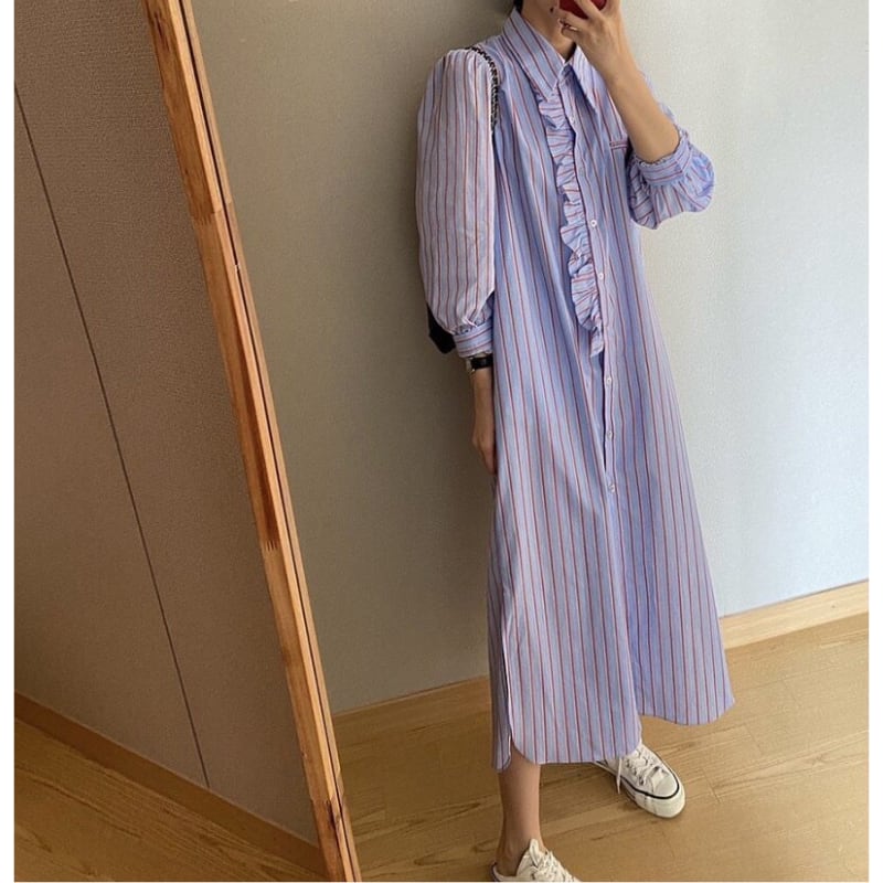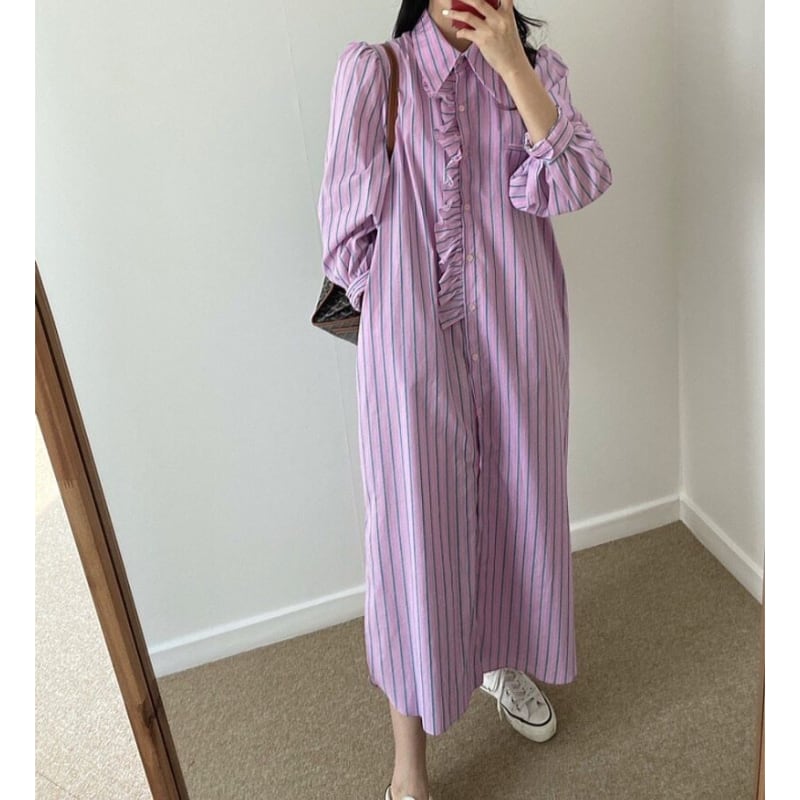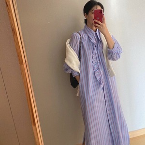 detachable frill trim stripe shirt dress【2color】 e1898