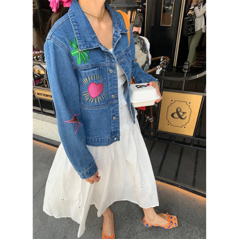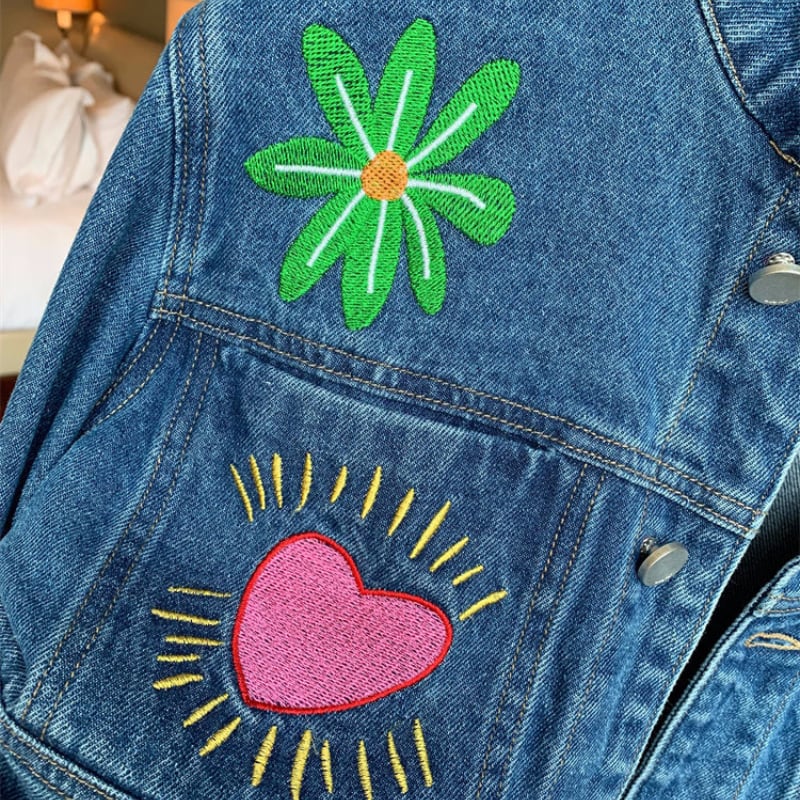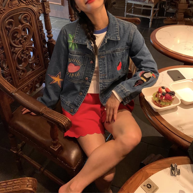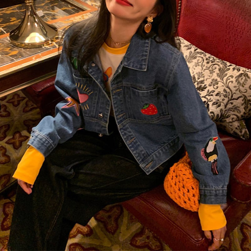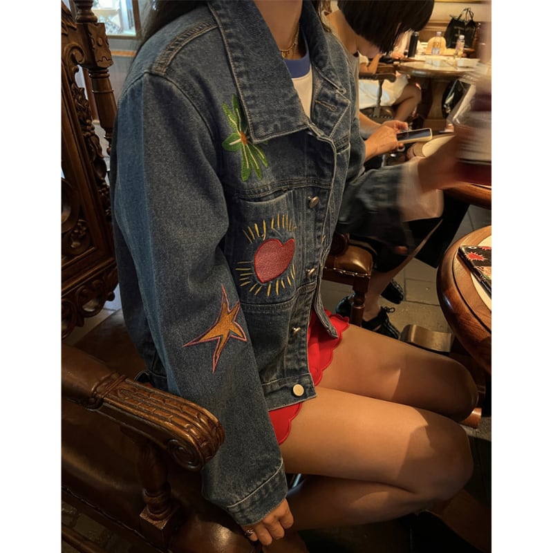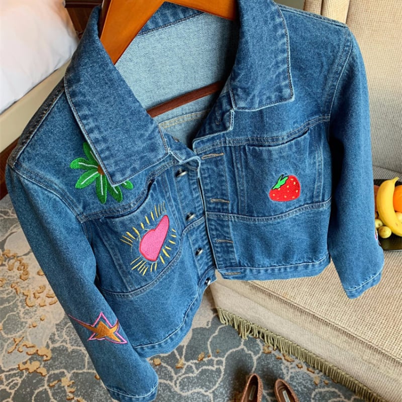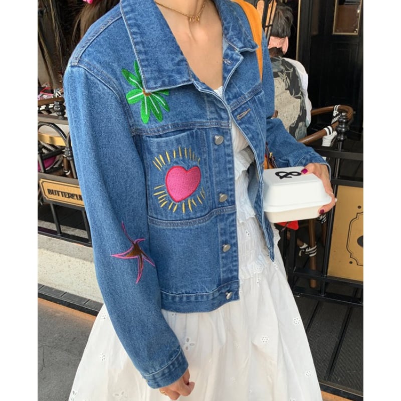 merry colorful embroidery design denim jacket e1900