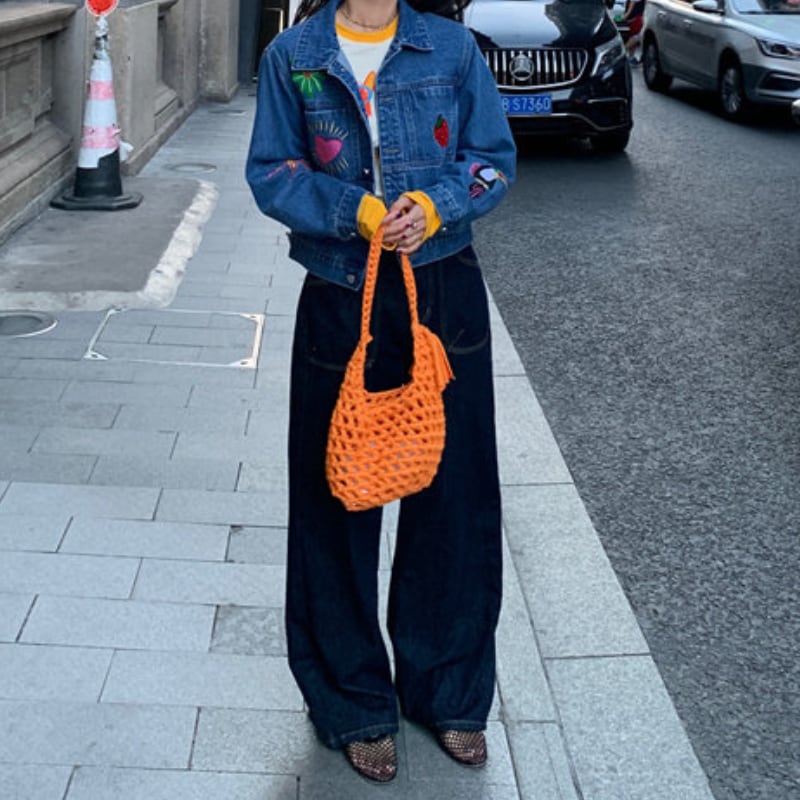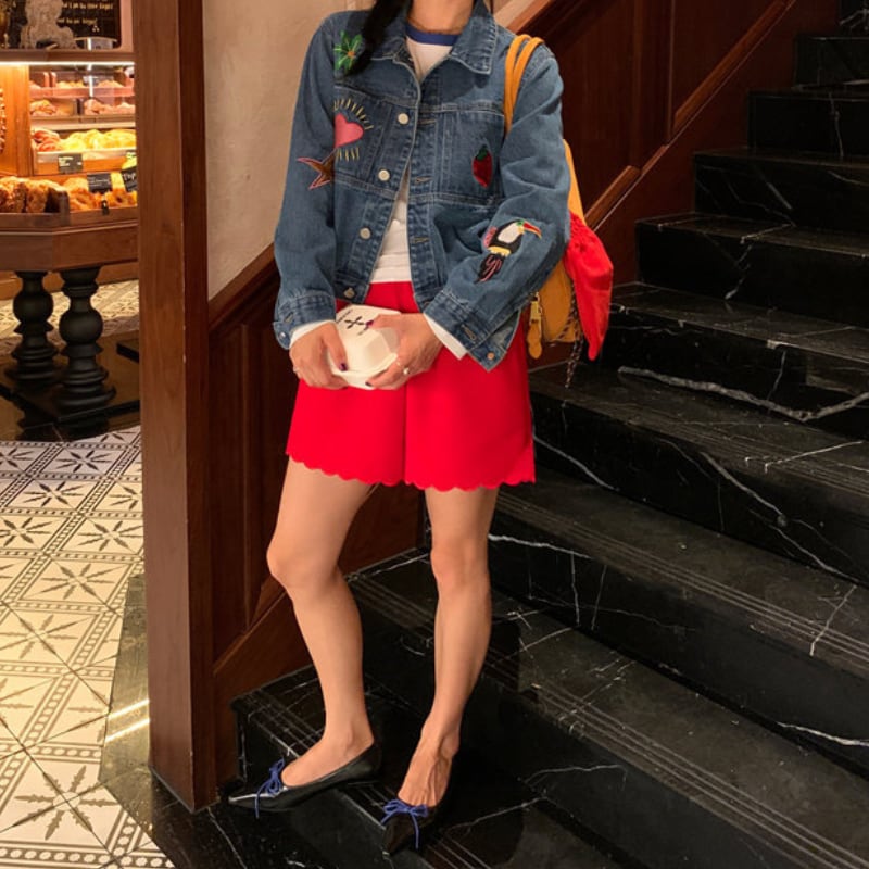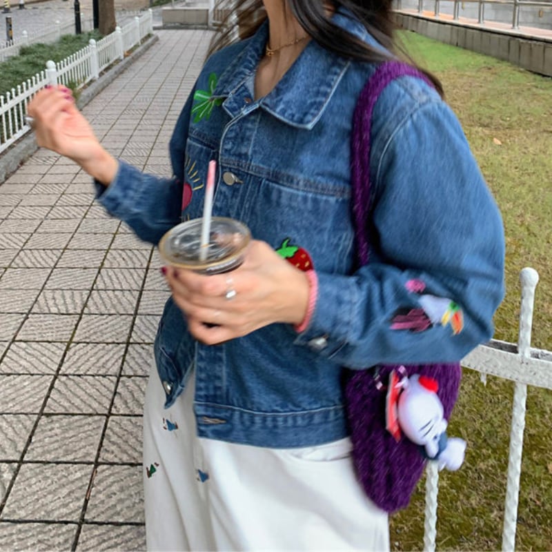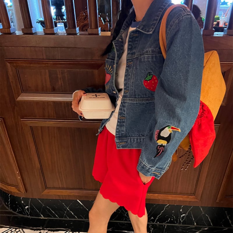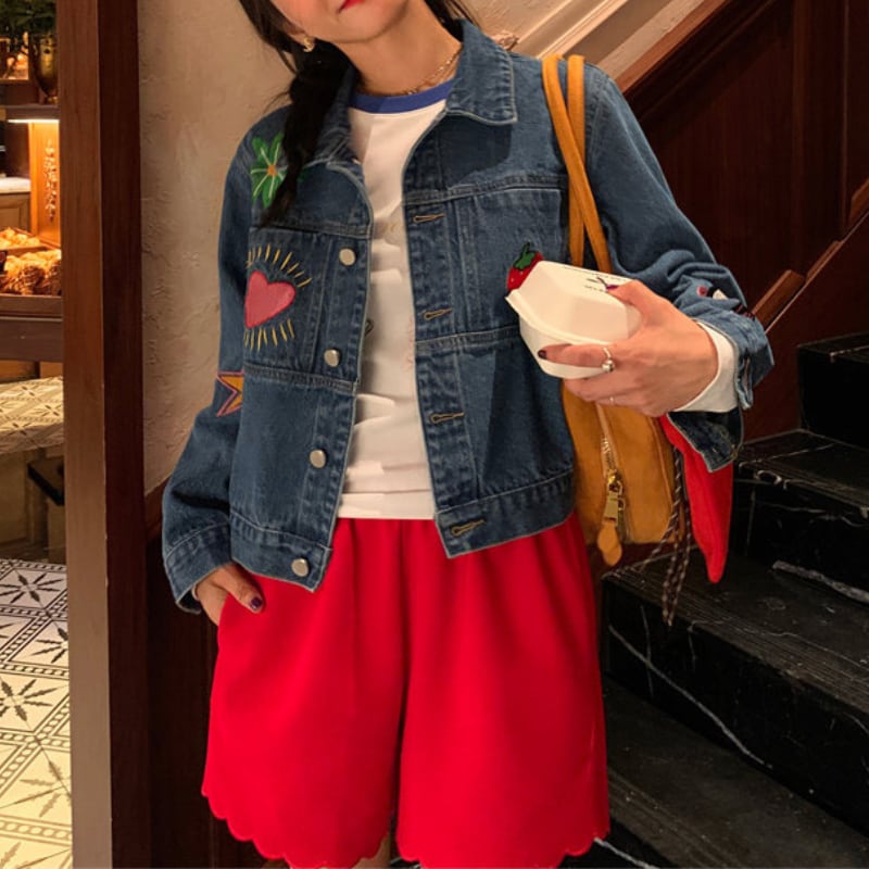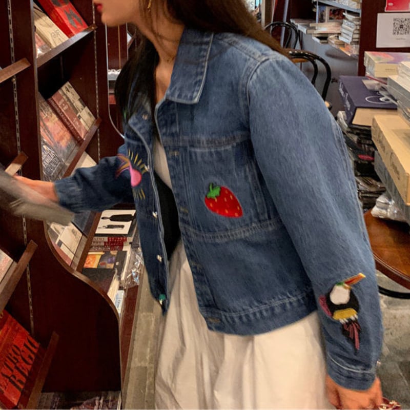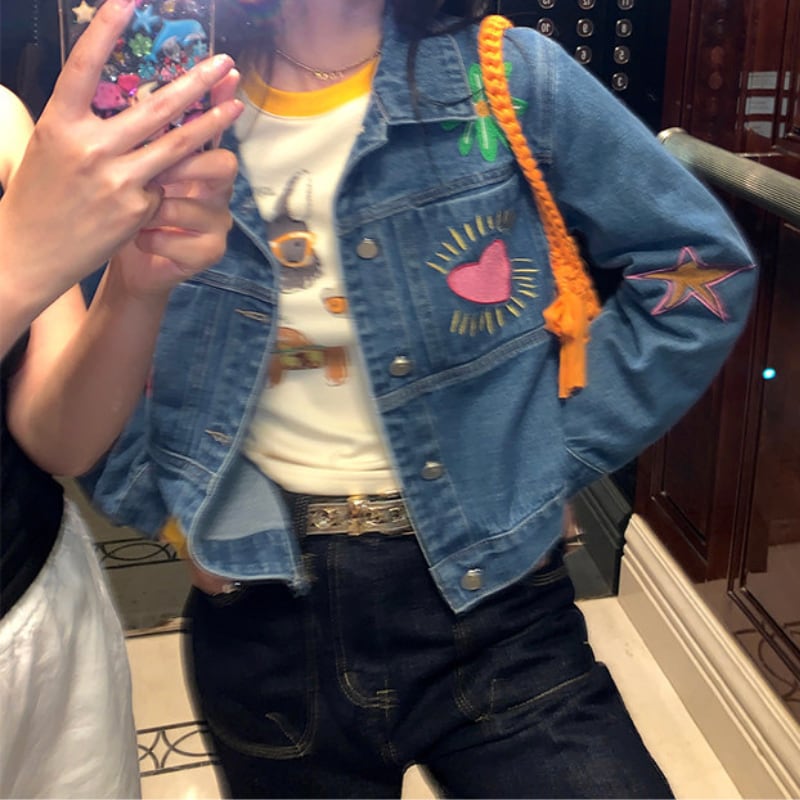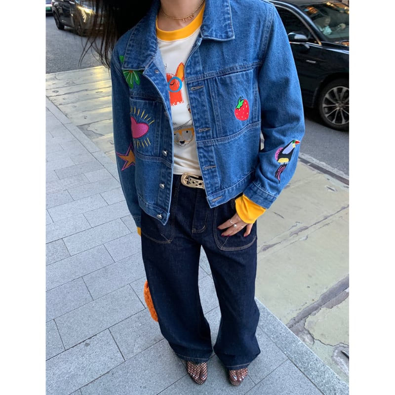 merry colorful embroidery design denim jacket e1900