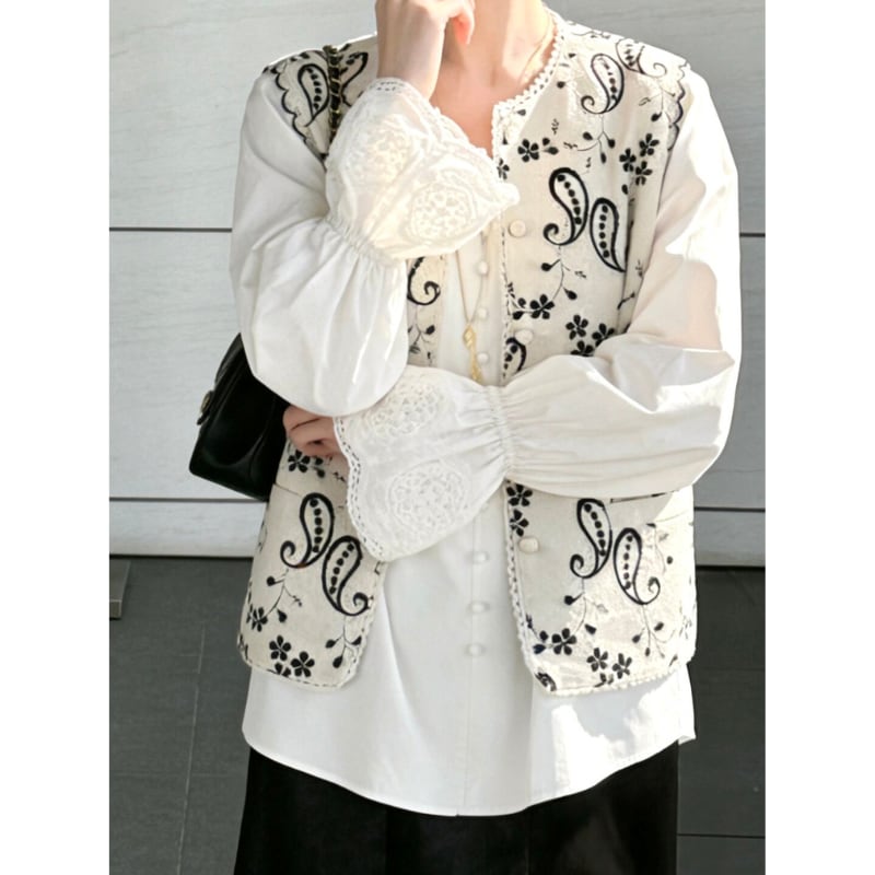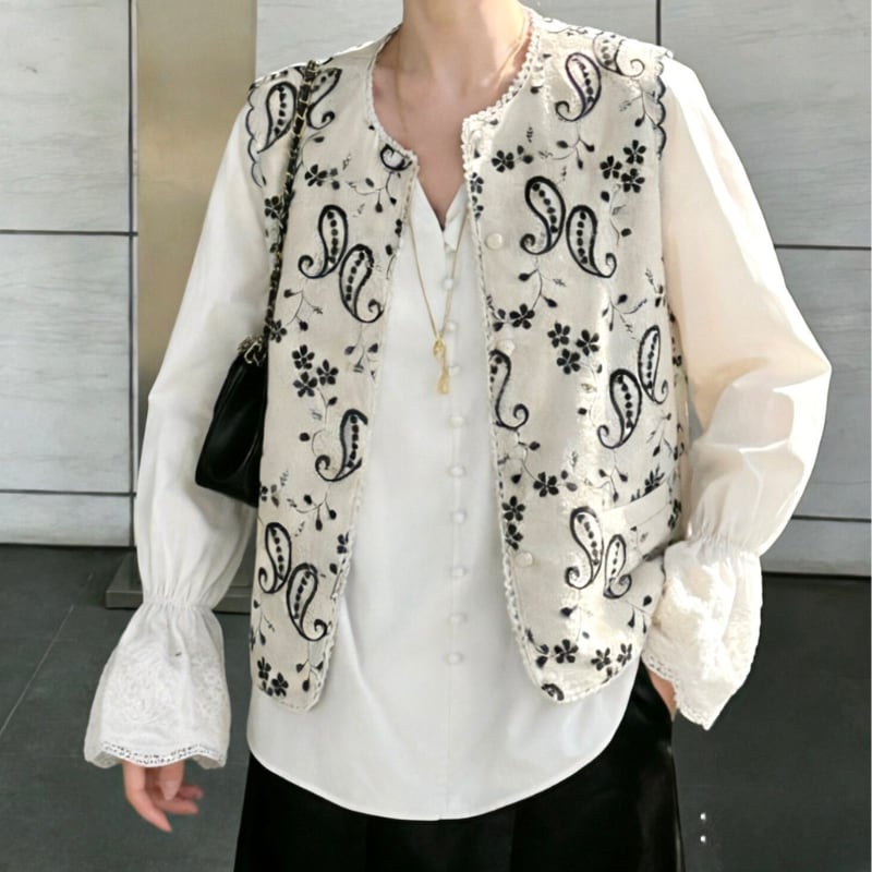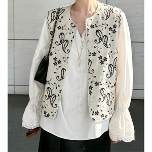 paisley flower embroidery scallop edge vest e1908