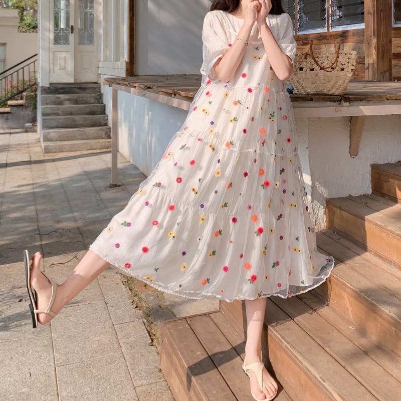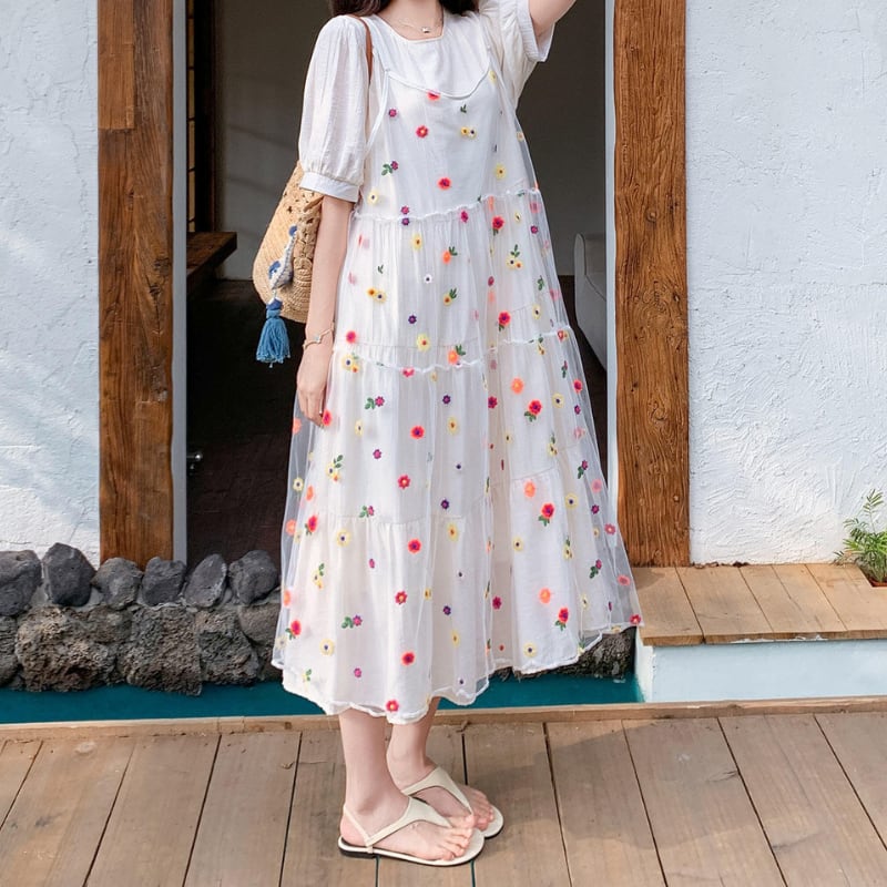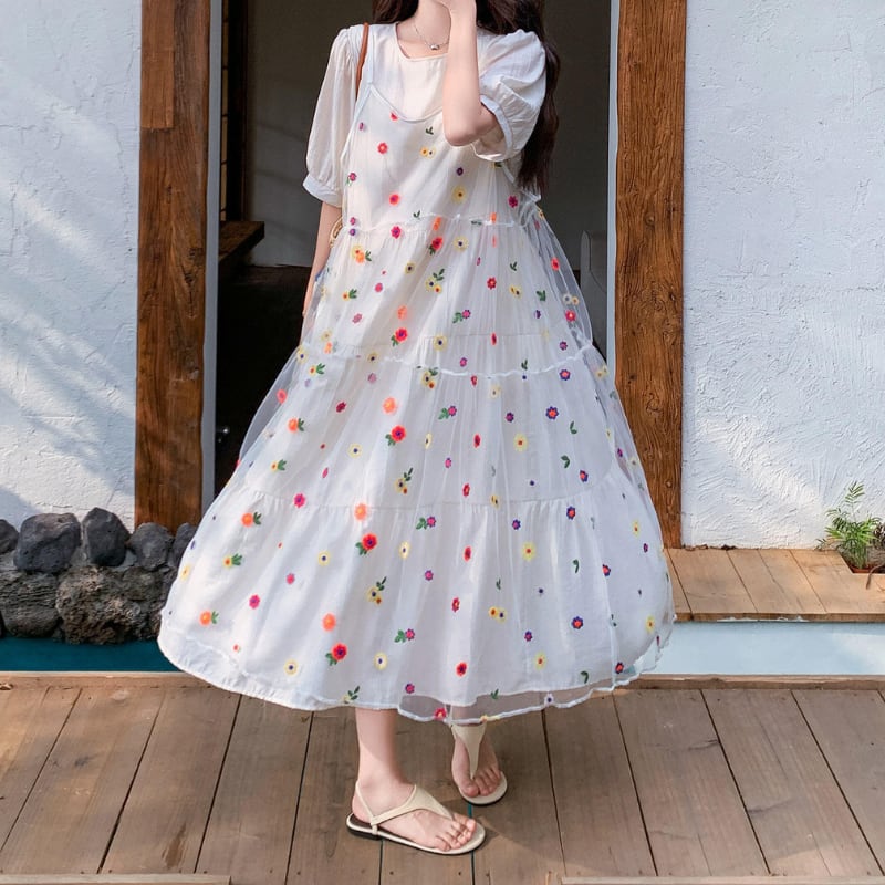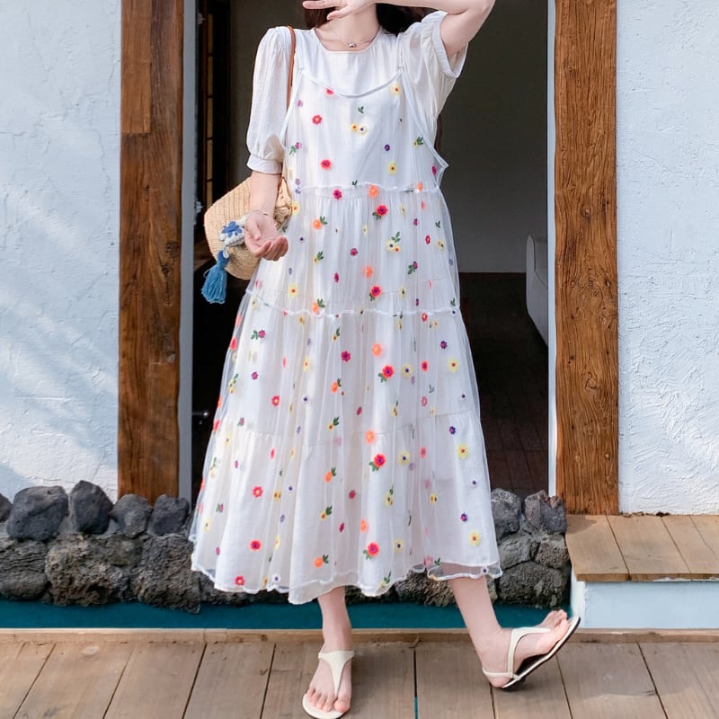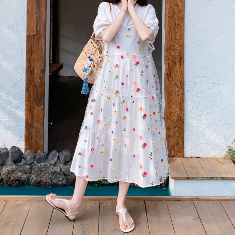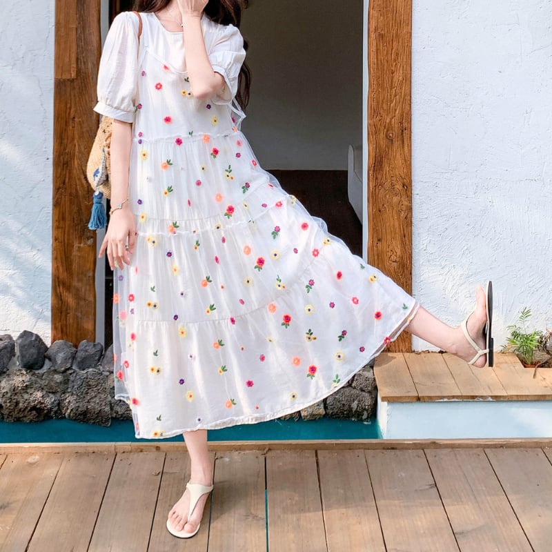 colorful flower bloom layered tiered dress【set up】 e1929