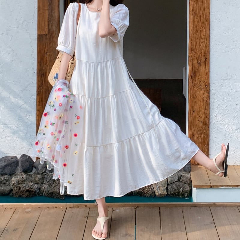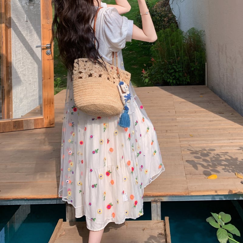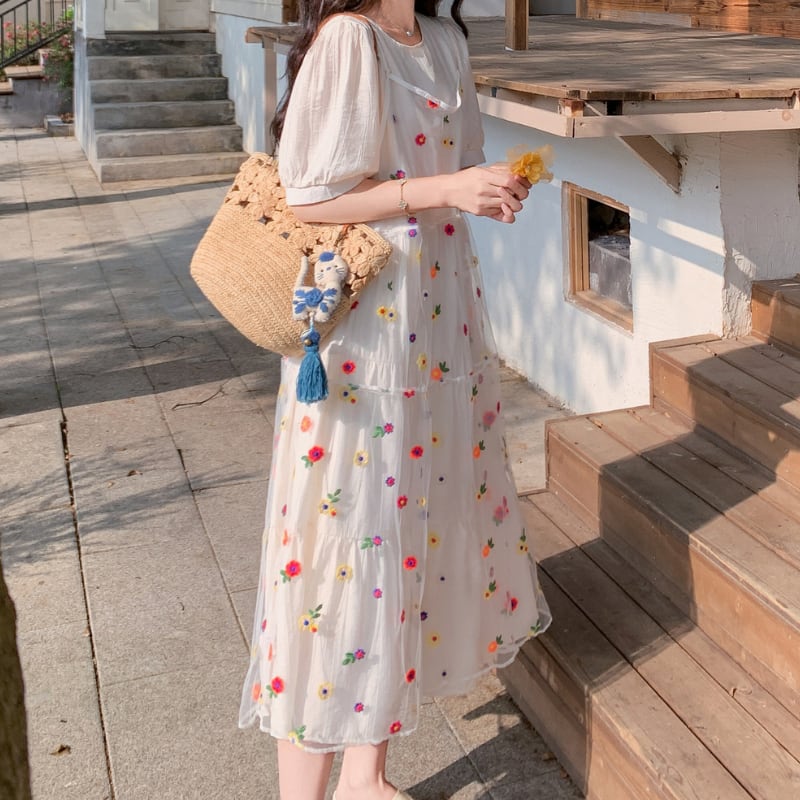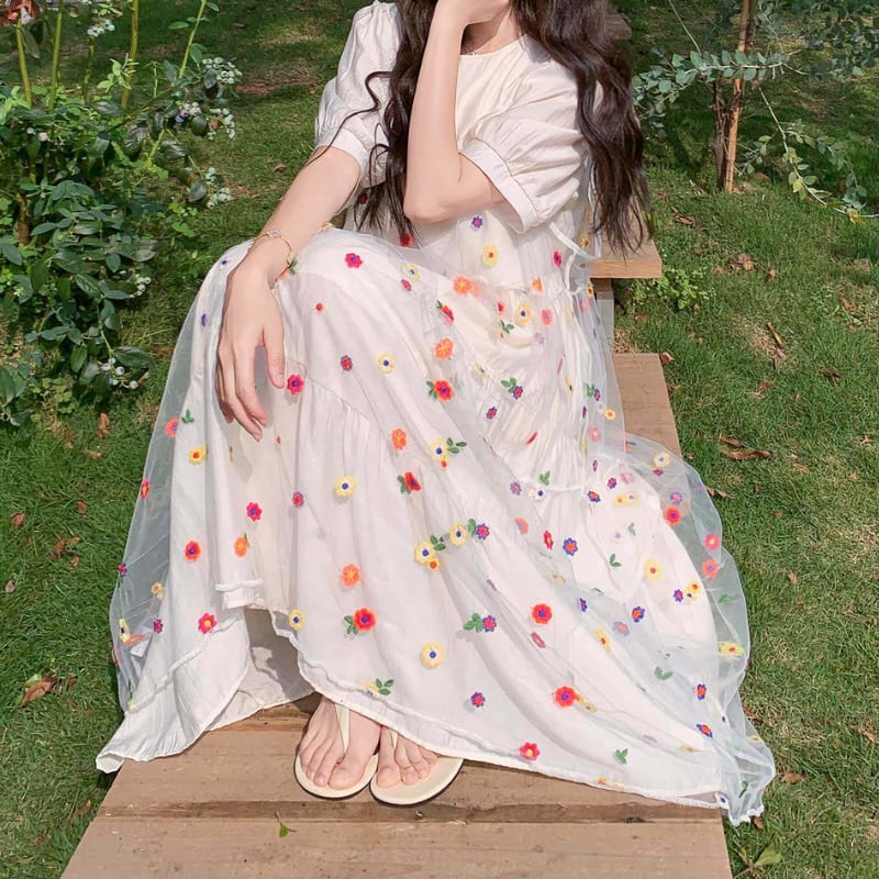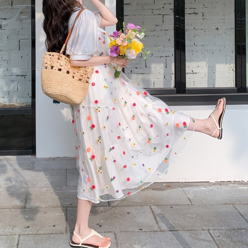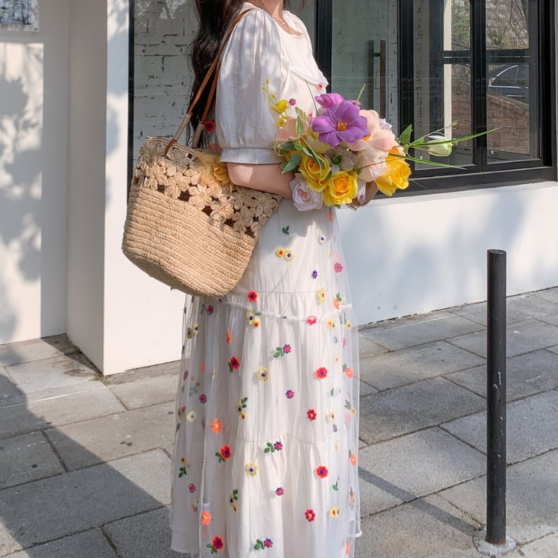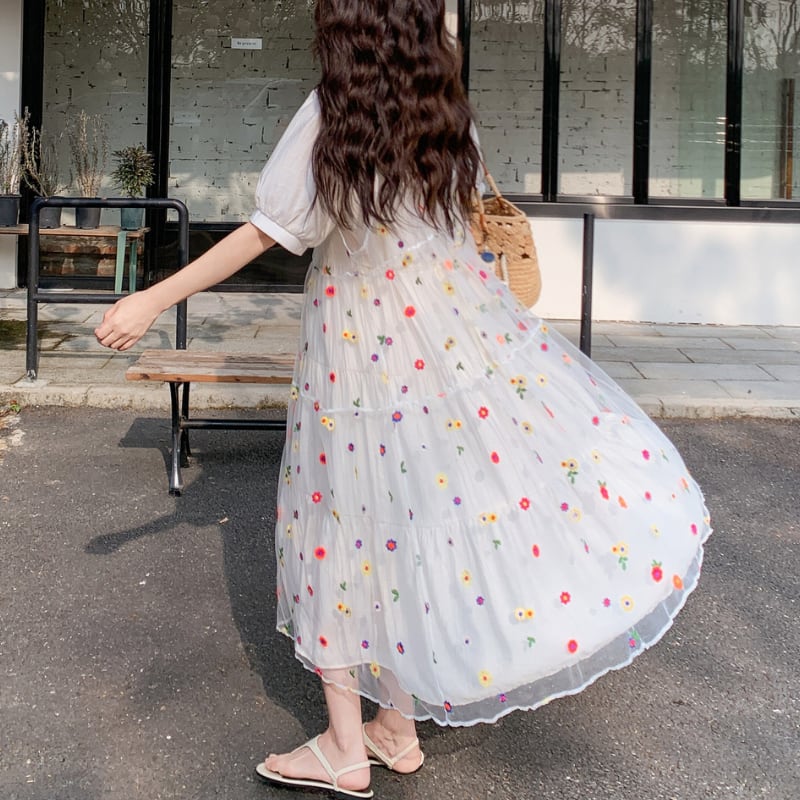 colorful flower bloom layered tiered dress【set up】 e1929
