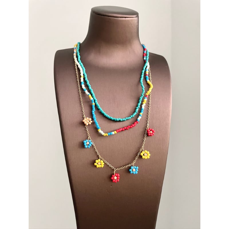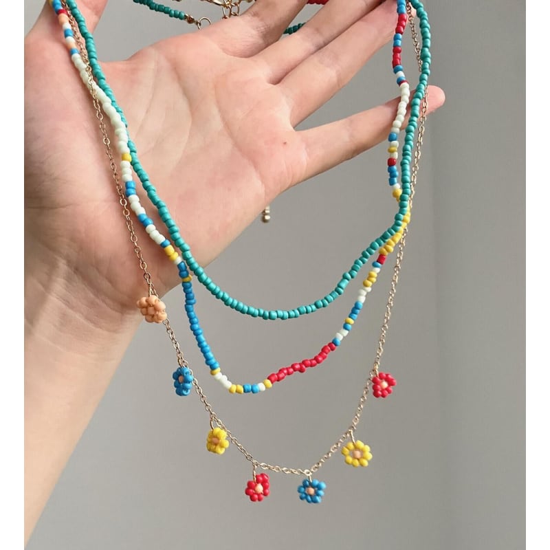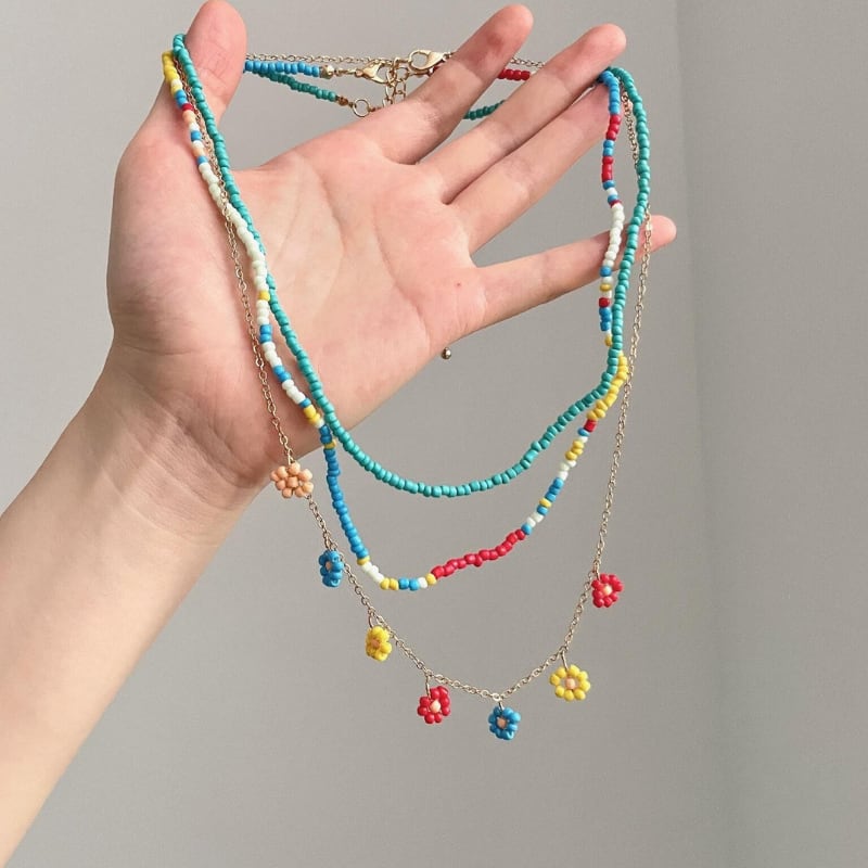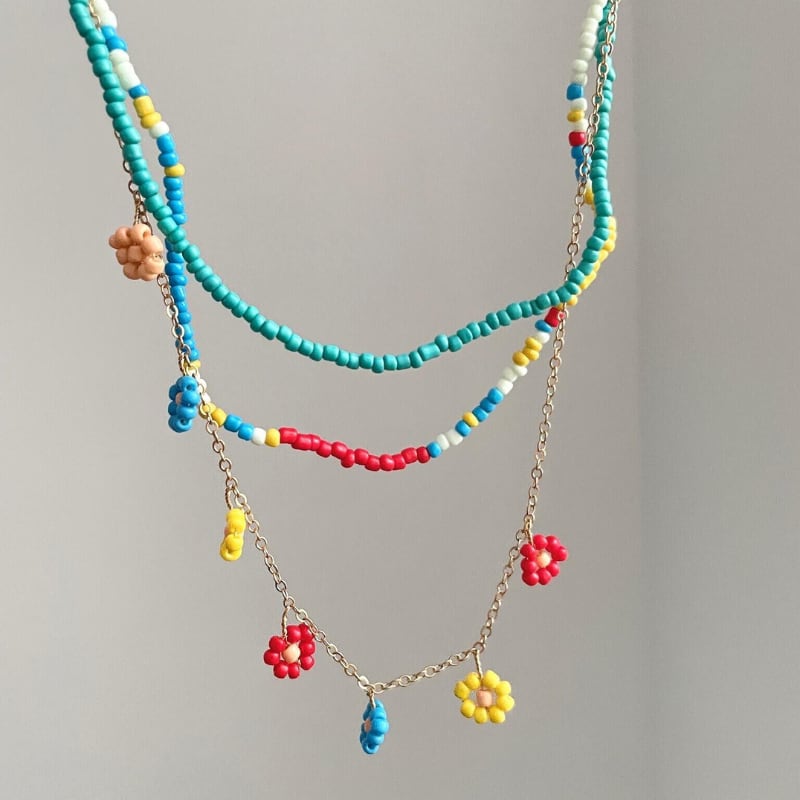 colorful flower beads layering necklace e1930