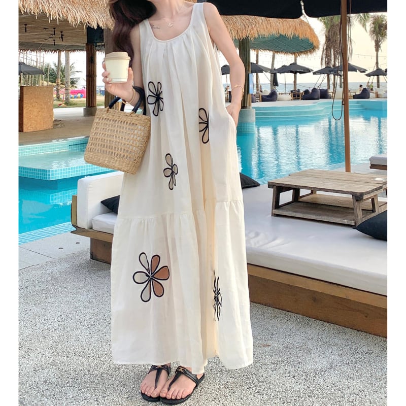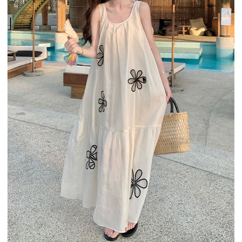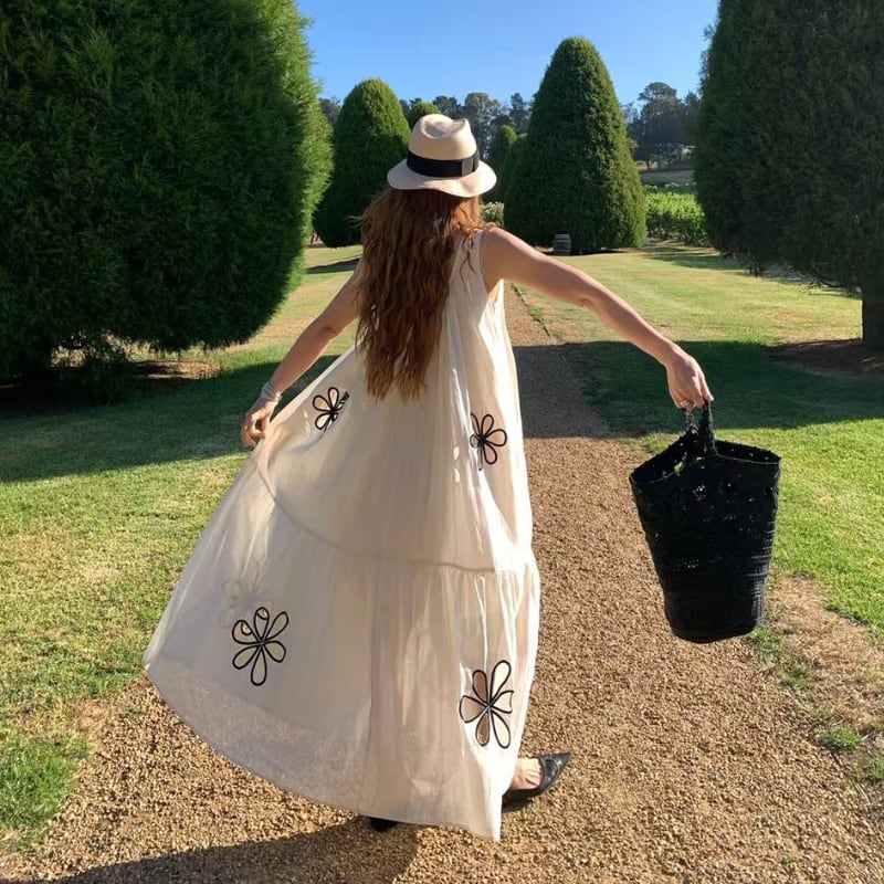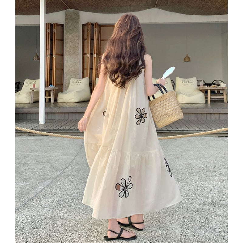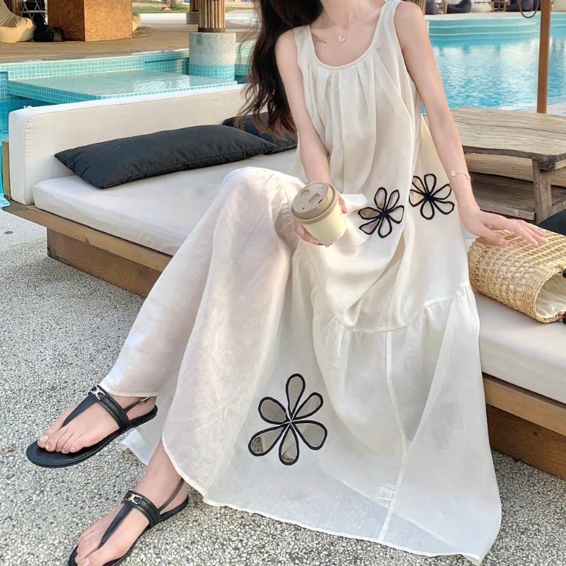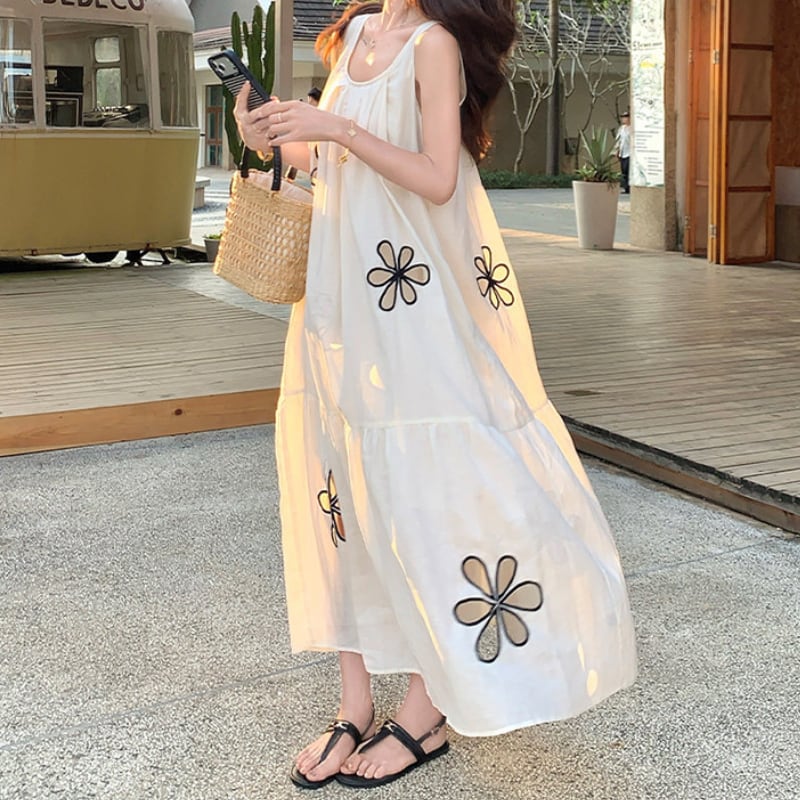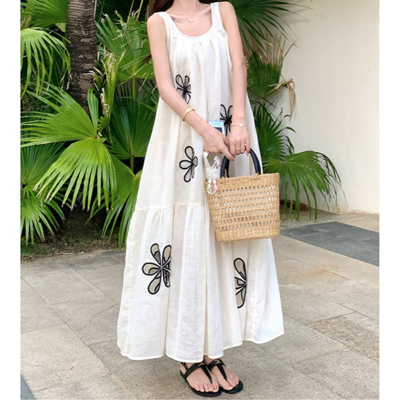 hollow flower embroidery resort dress e1939