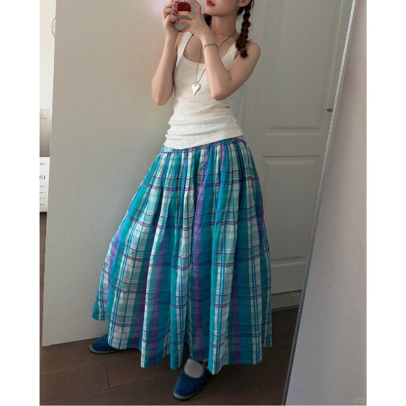 sea soda madras check casual skirt e1945