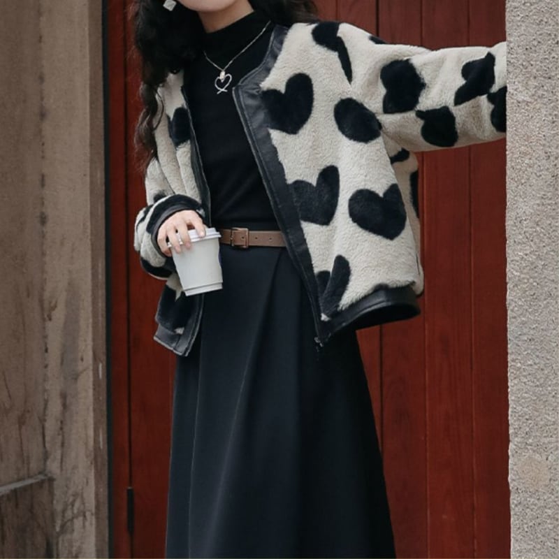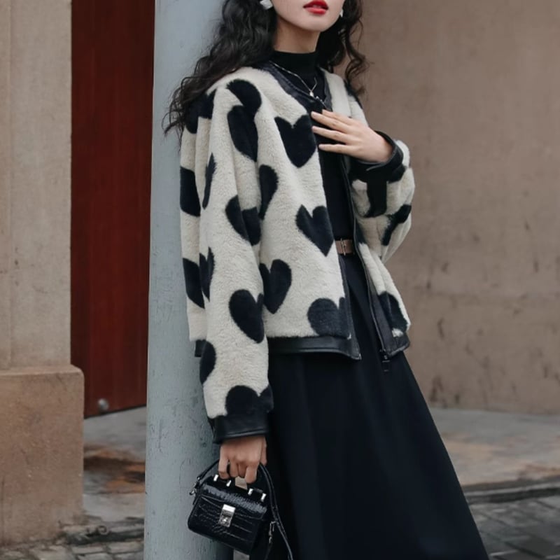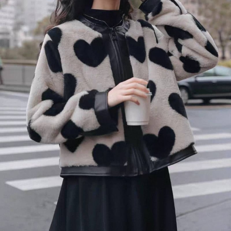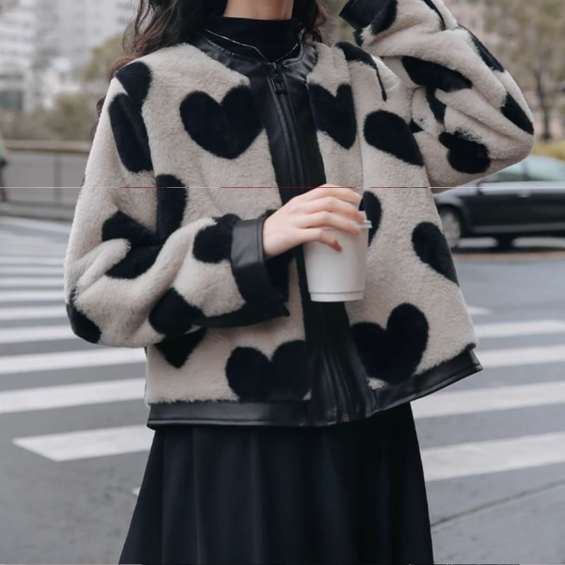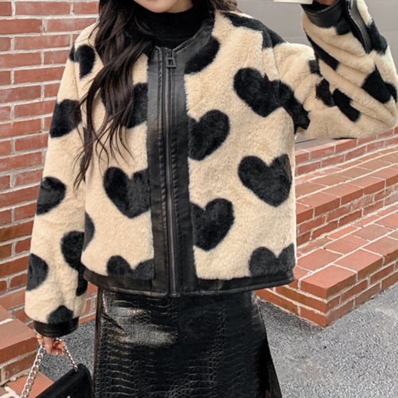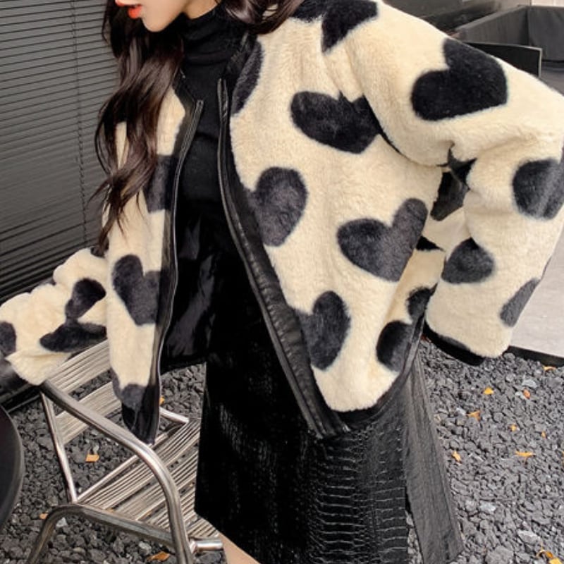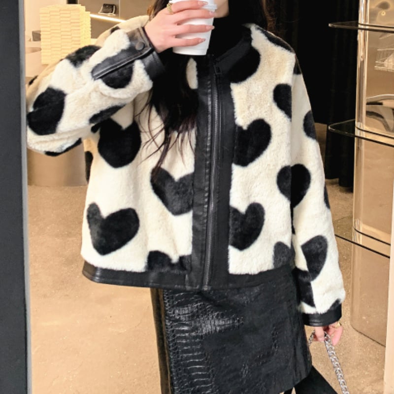 bitter sweet heart leather fur jacket e583