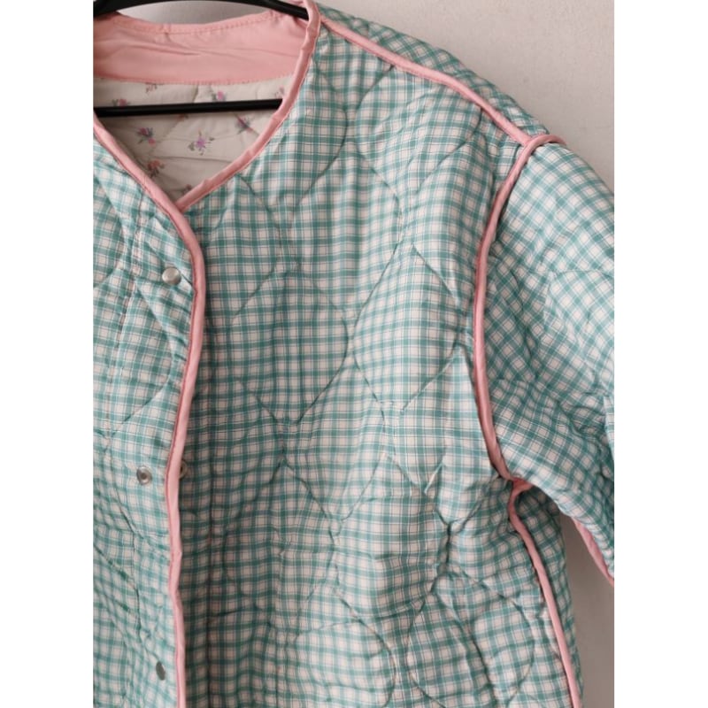 ミントギンガムチェックと小花デザインが可愛いリバーシブルジャケット