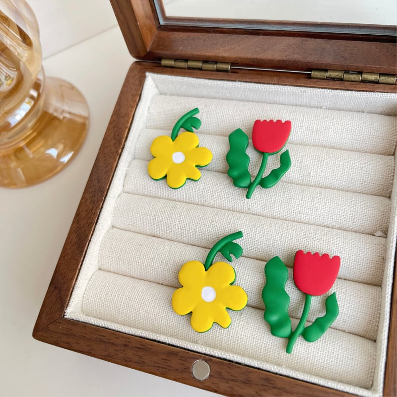asymmetry cheerful flower pierce / earring e923