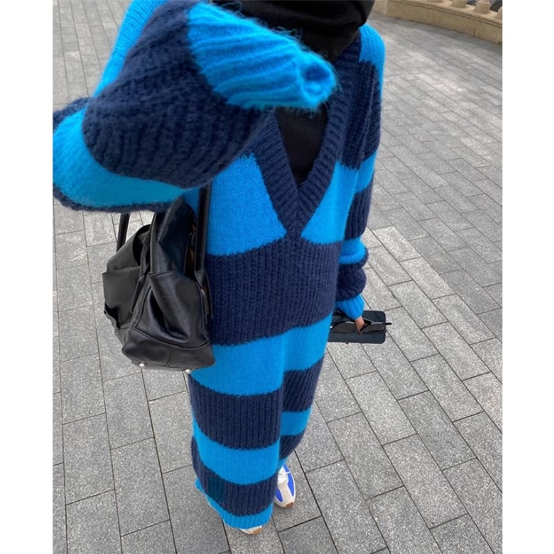 v-neck loose border knit dress【2color】 e1134