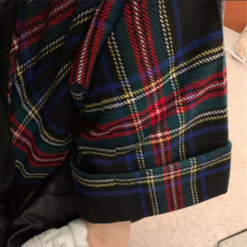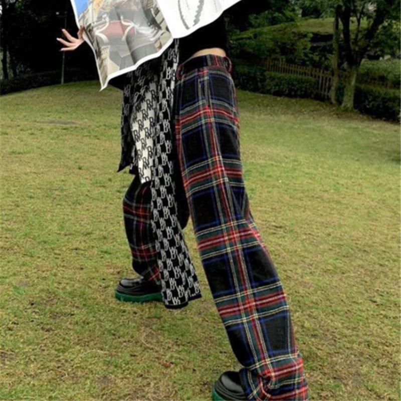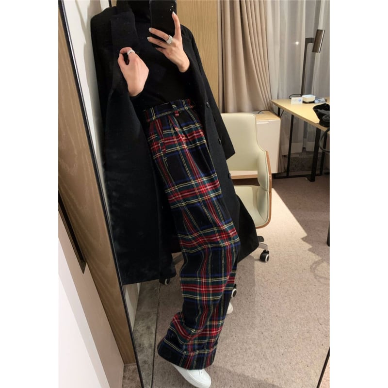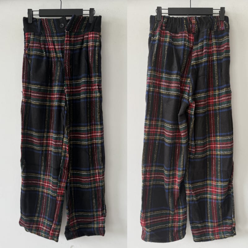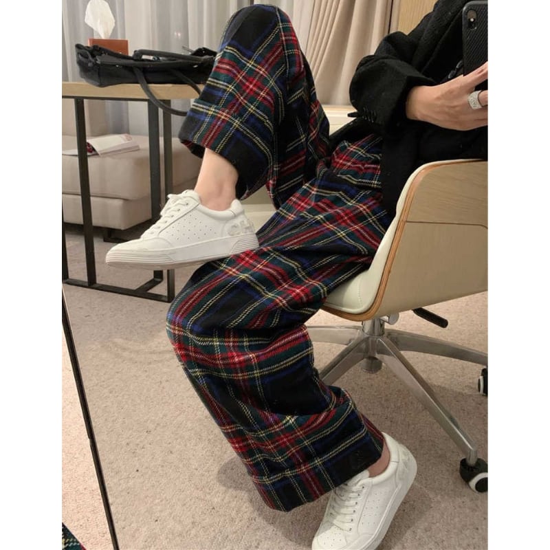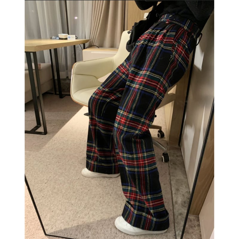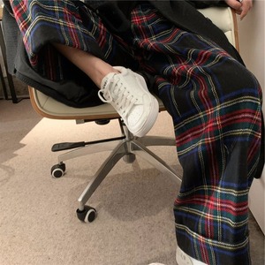 retro tartan check wool like pants e1156