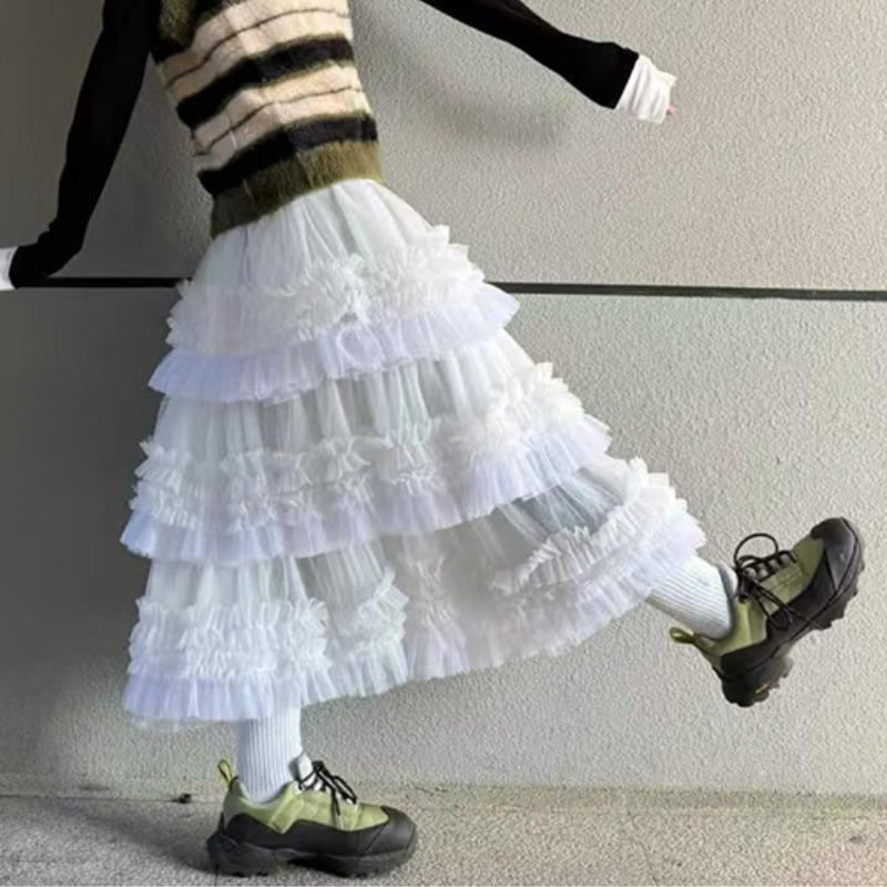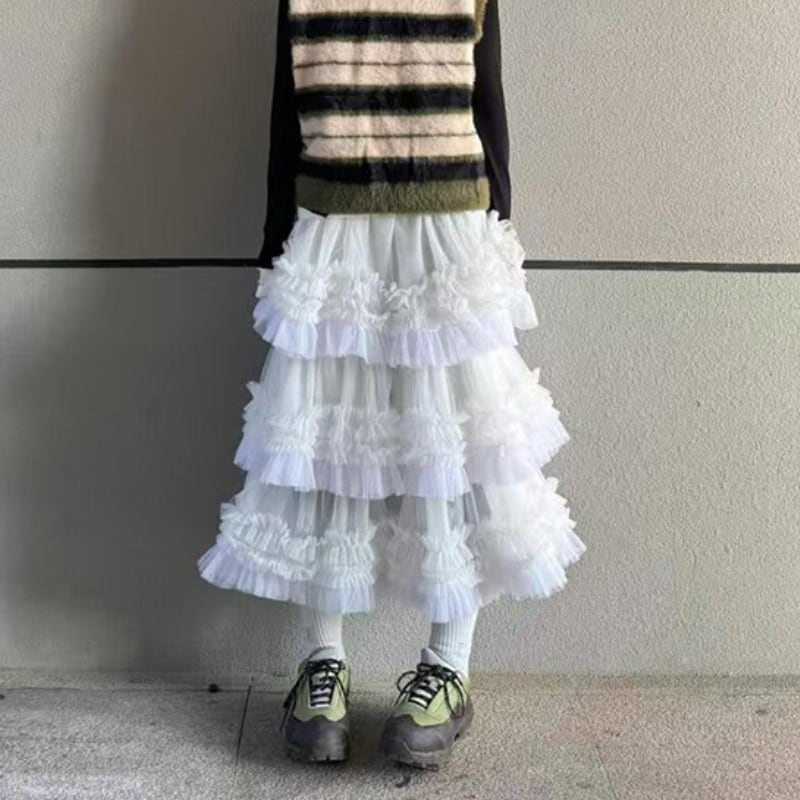 mesh multilayer tulle frill cake skirt e1267